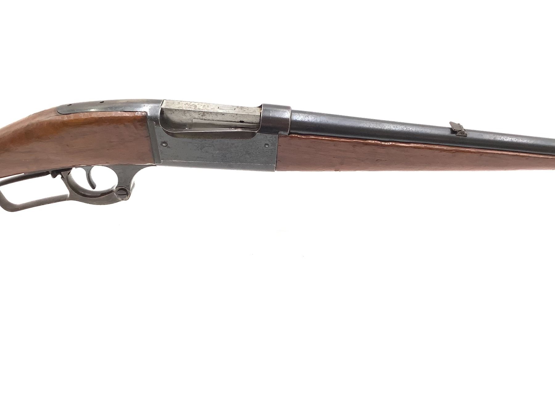 A 1905-manufactured Savage 99 lever-action rifle, lightly-frosted 26" barrel with strong rifling chambered in .303 Savage. Stocks appear to have been refinished at some point. Drilled and tapped for receiver aperture sights. Good condition.