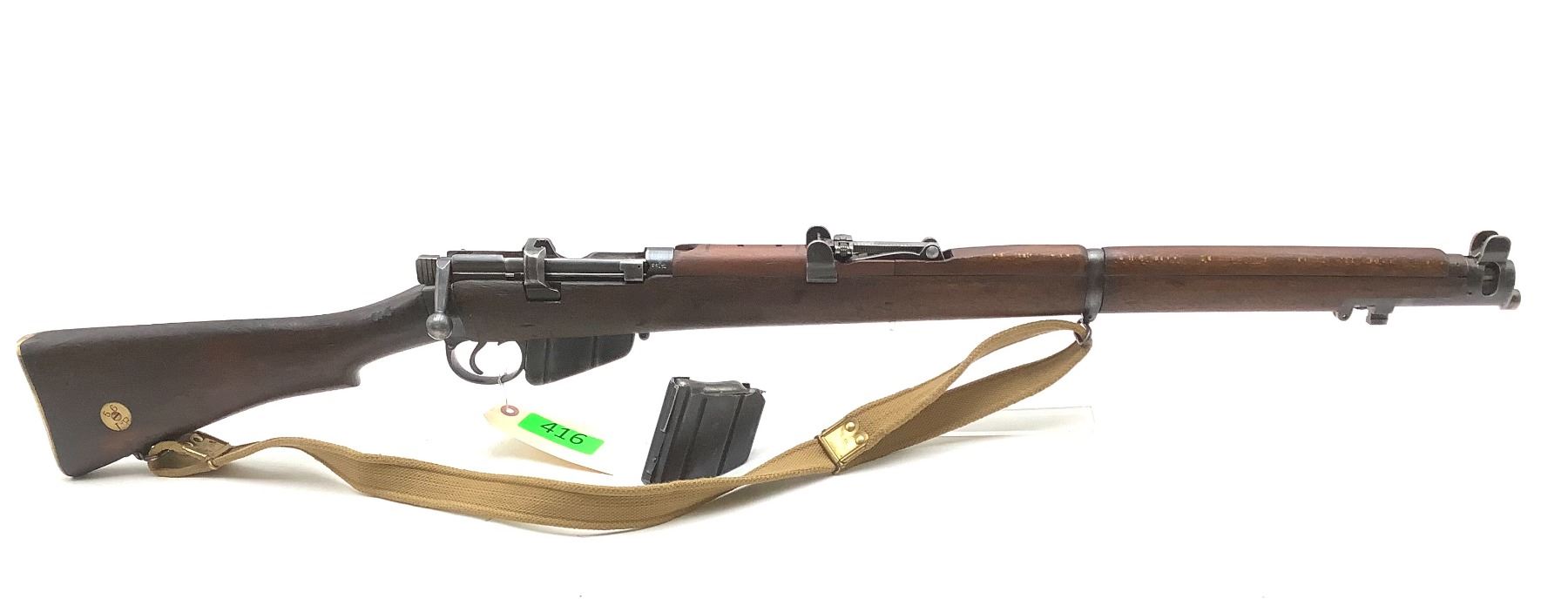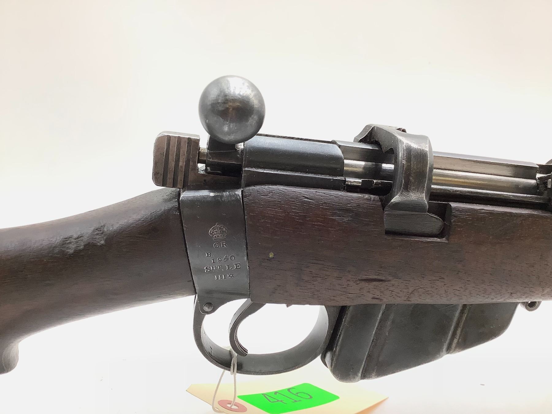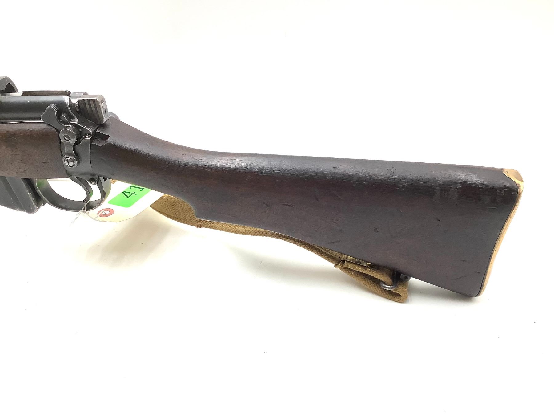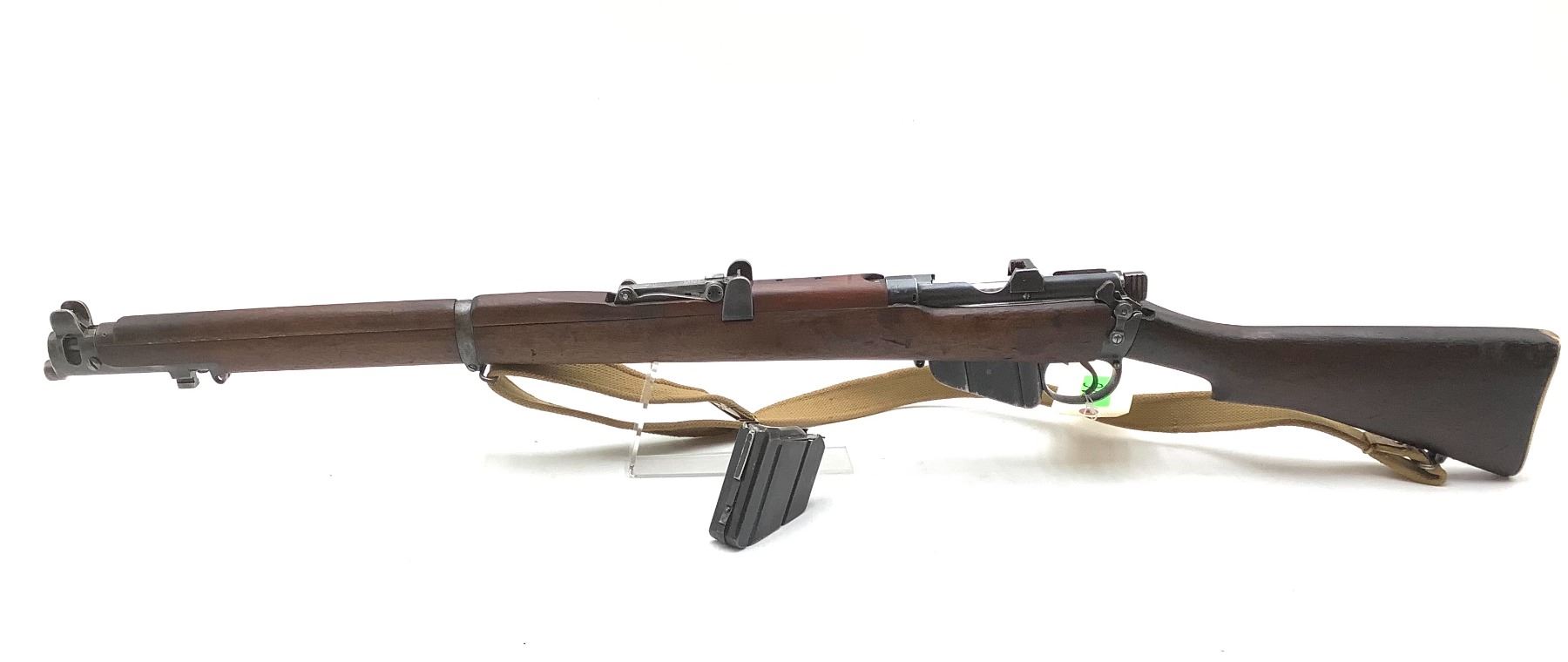 A 1940 Birmingham Dispersed Production Lee-Enfield No. 1 Mk III* bolt-action service rifle. 25" barrel with good bore chambered in 303 British. Full Wood Stock. Detachable magazine, factory open sights. Includes web sling and second magazine.