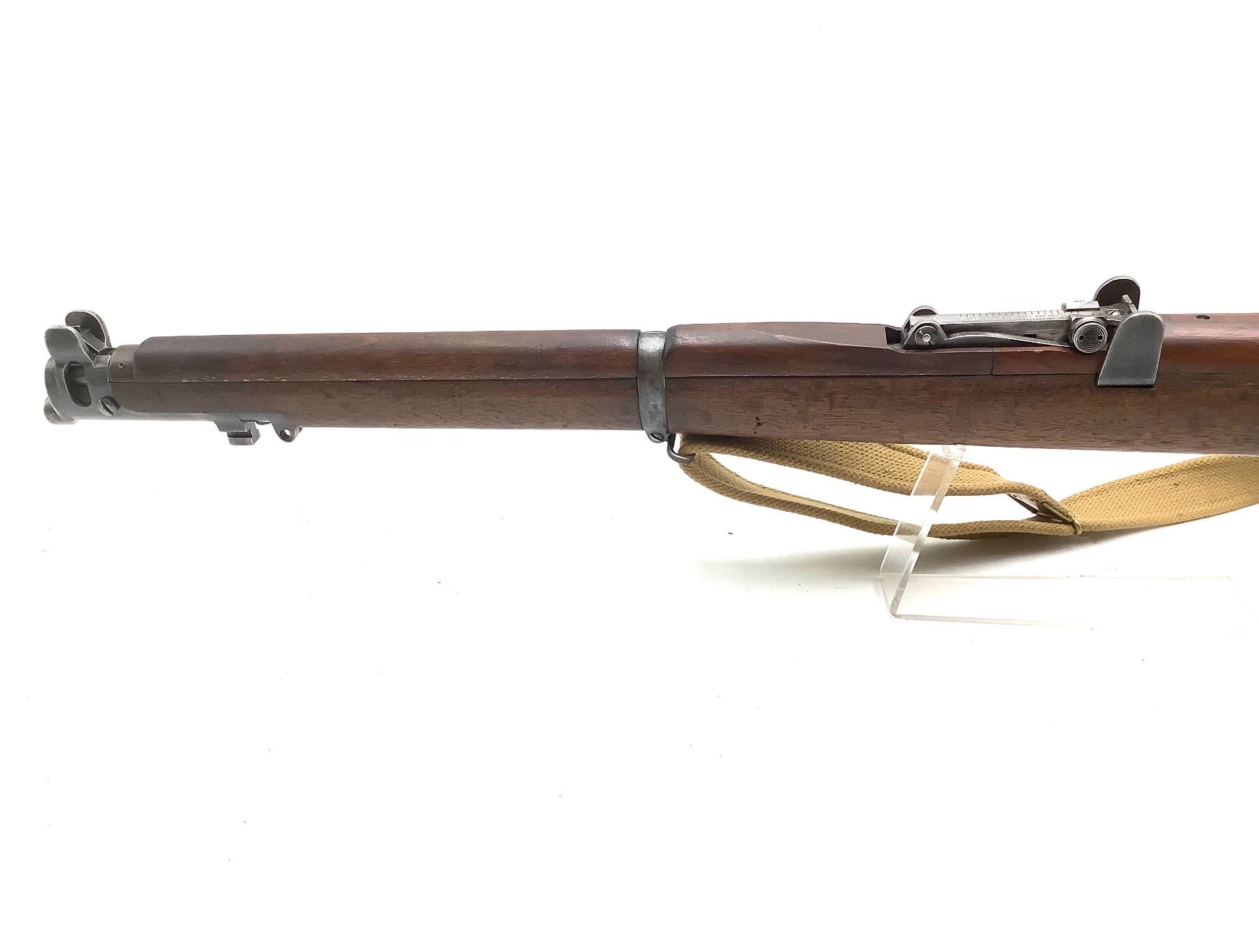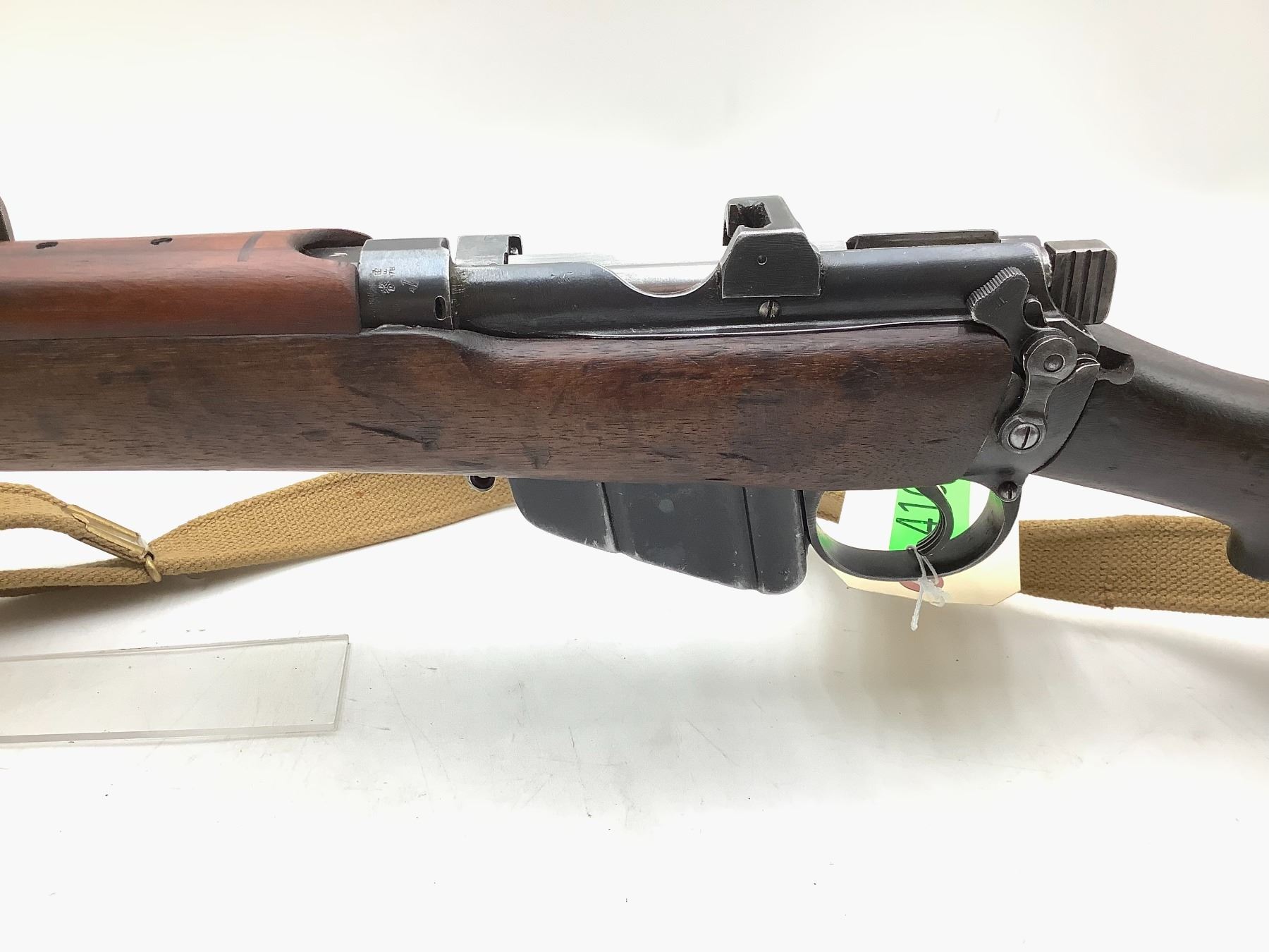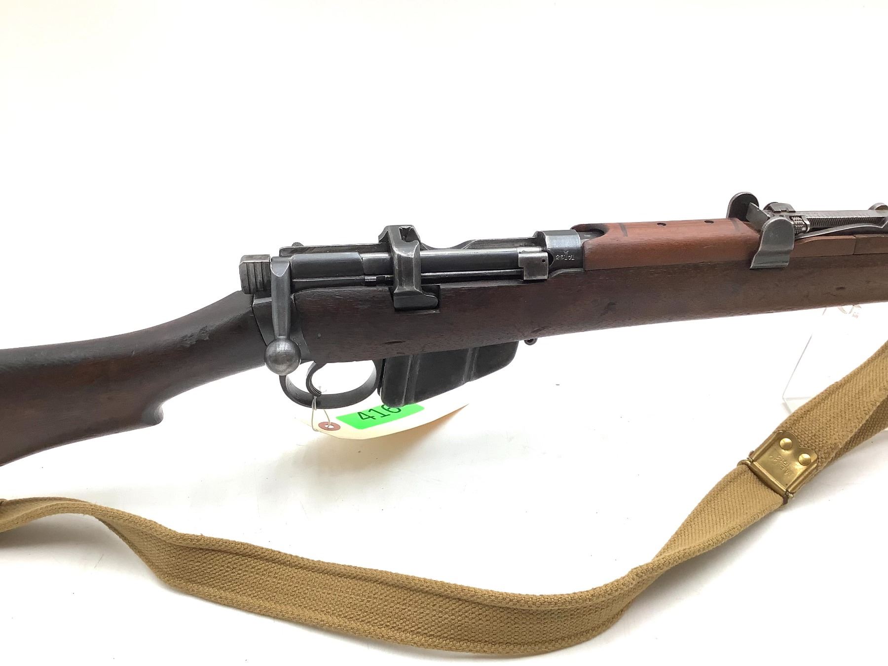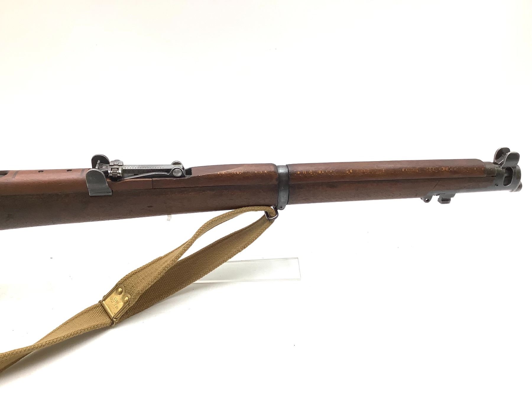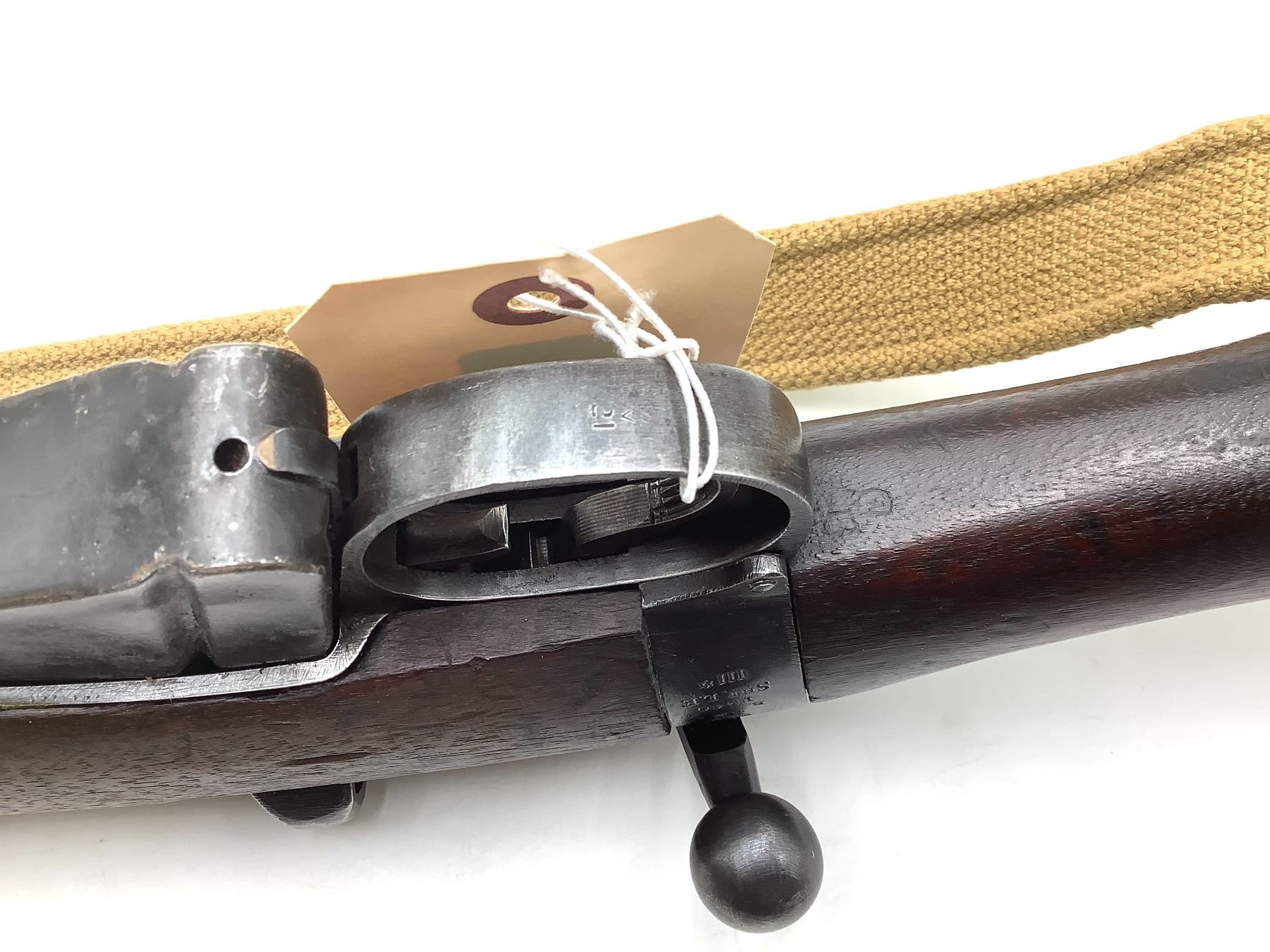 A 1940 Birmingham Dispersed Production Lee-Enfield No. 1 Mk III* bolt-action service rifle. 25" barrel with good bore chambered in 303 British. Full Wood Stock. Detachable magazine, factory open sights. Includes web sling and second magazine.