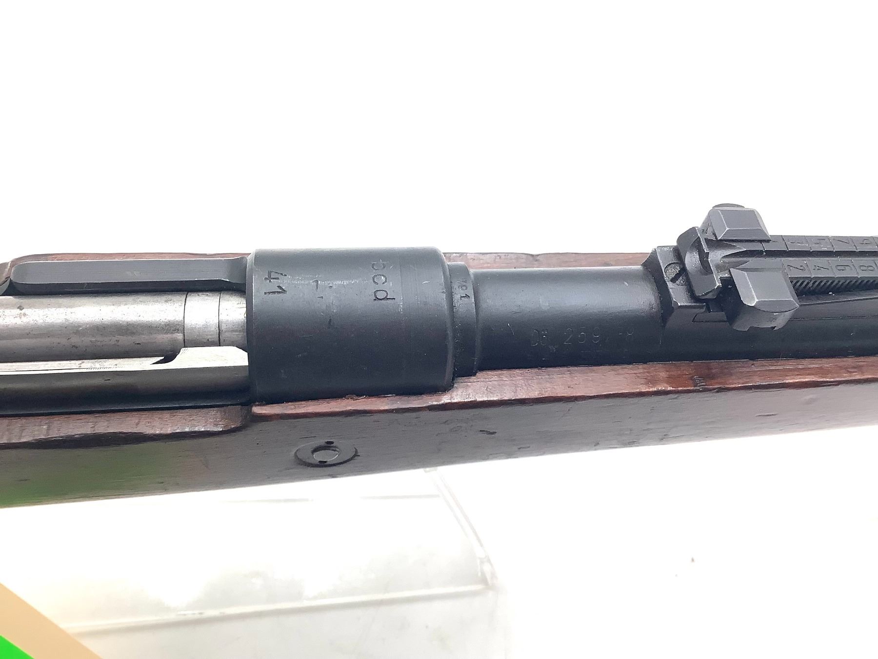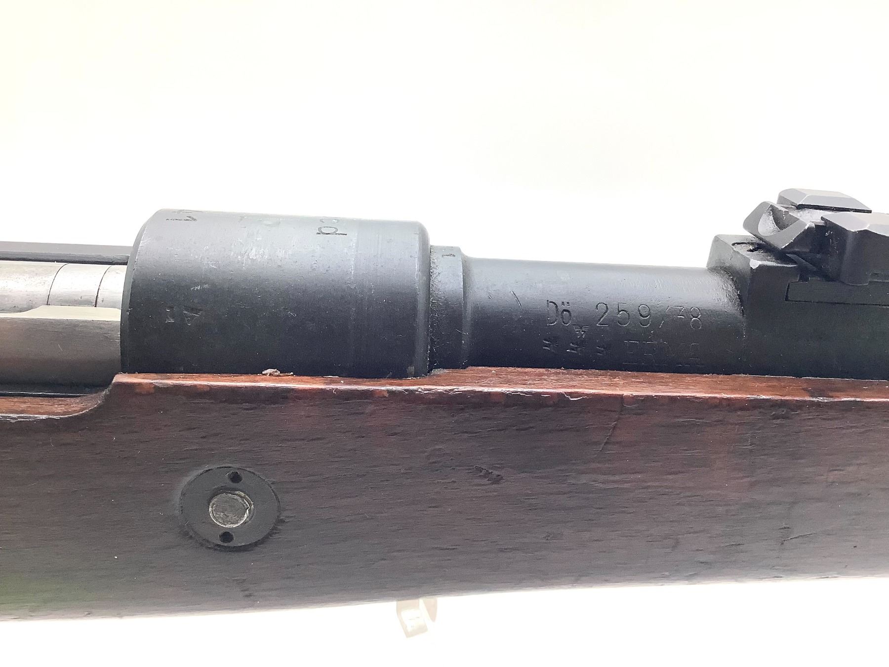 This rifle, based on the finish, was refurbished in one of the Soviet post-Second World War small arms rebuild programs. There are Reichsadler markings on the barrel and receiver and Nazi waffenamt marks on the barrel. No serial numbers match.