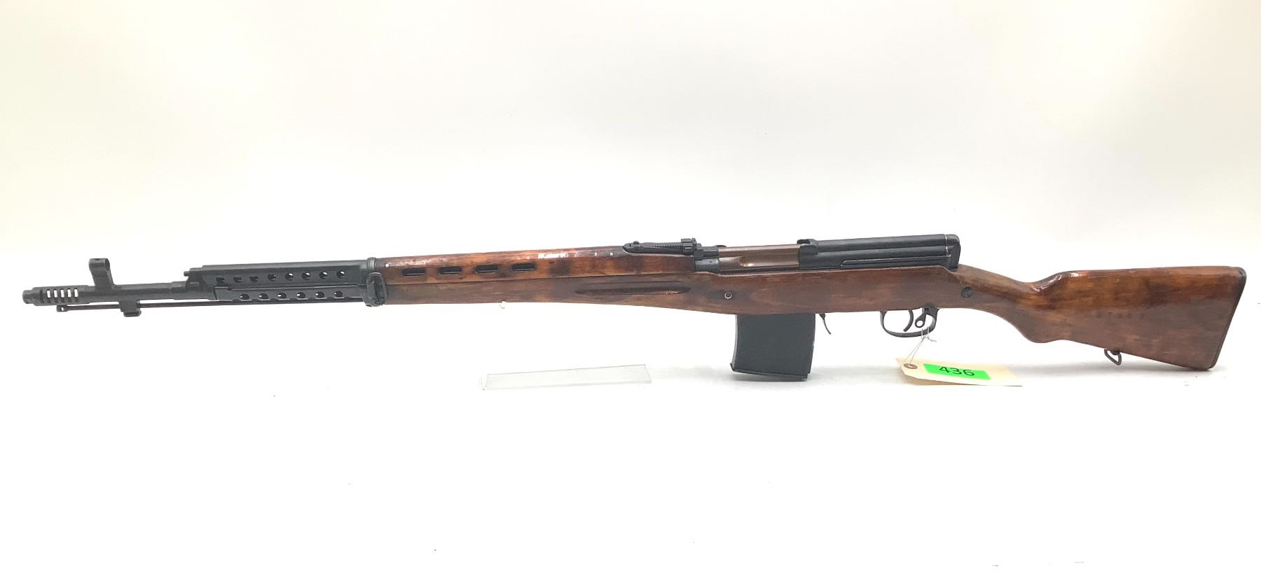 A 1941 Tula-manufactured Soviet SVT40 semi-automatic service rifle. 24.6" barrel chambered in 7.62X54R with good bore. Factory open sights, detachable magazine. Includes sling. It has factory scope rails which are only found on 1940 and 1941 models.