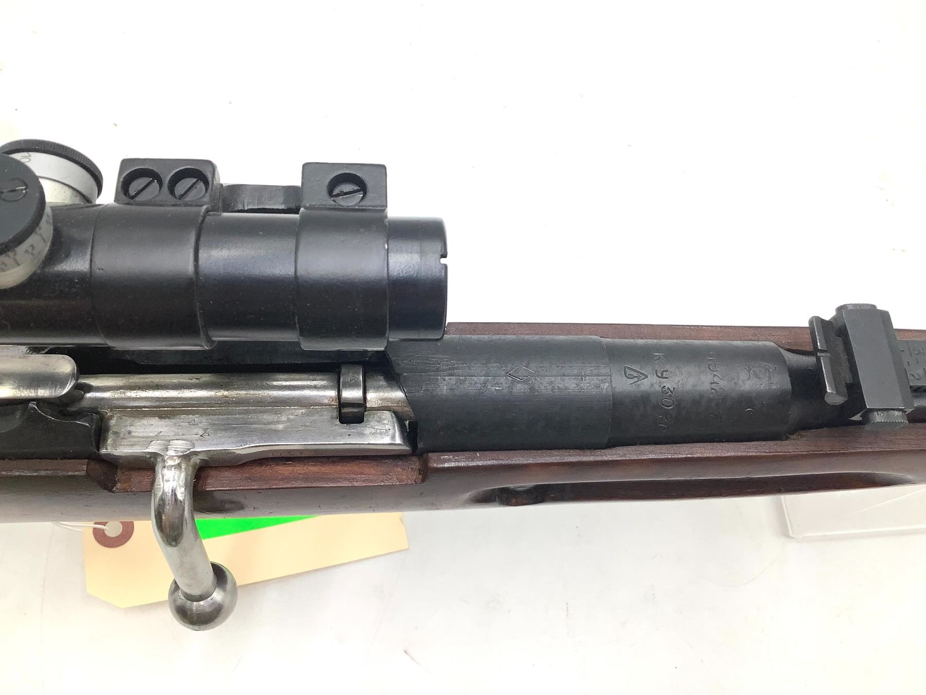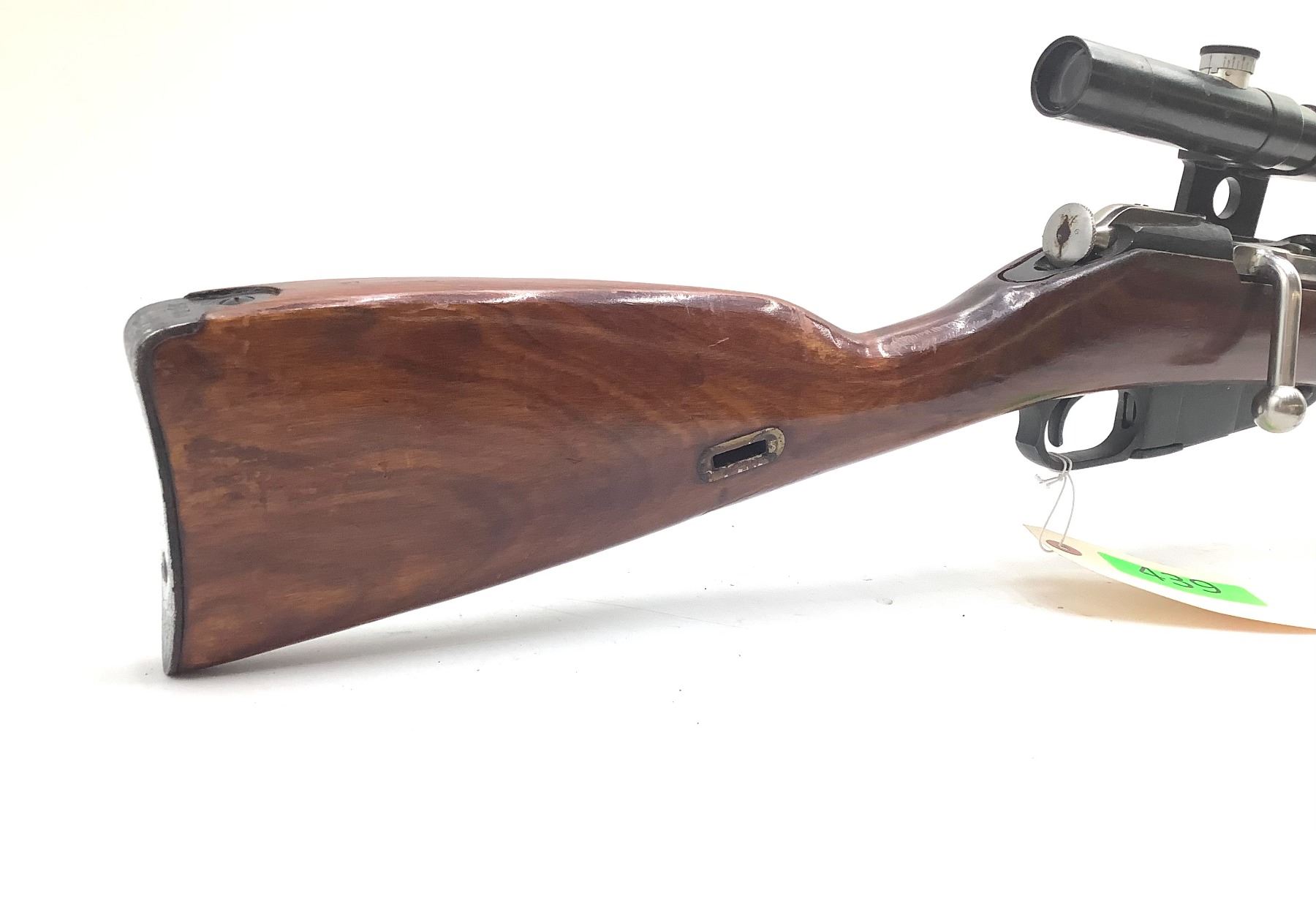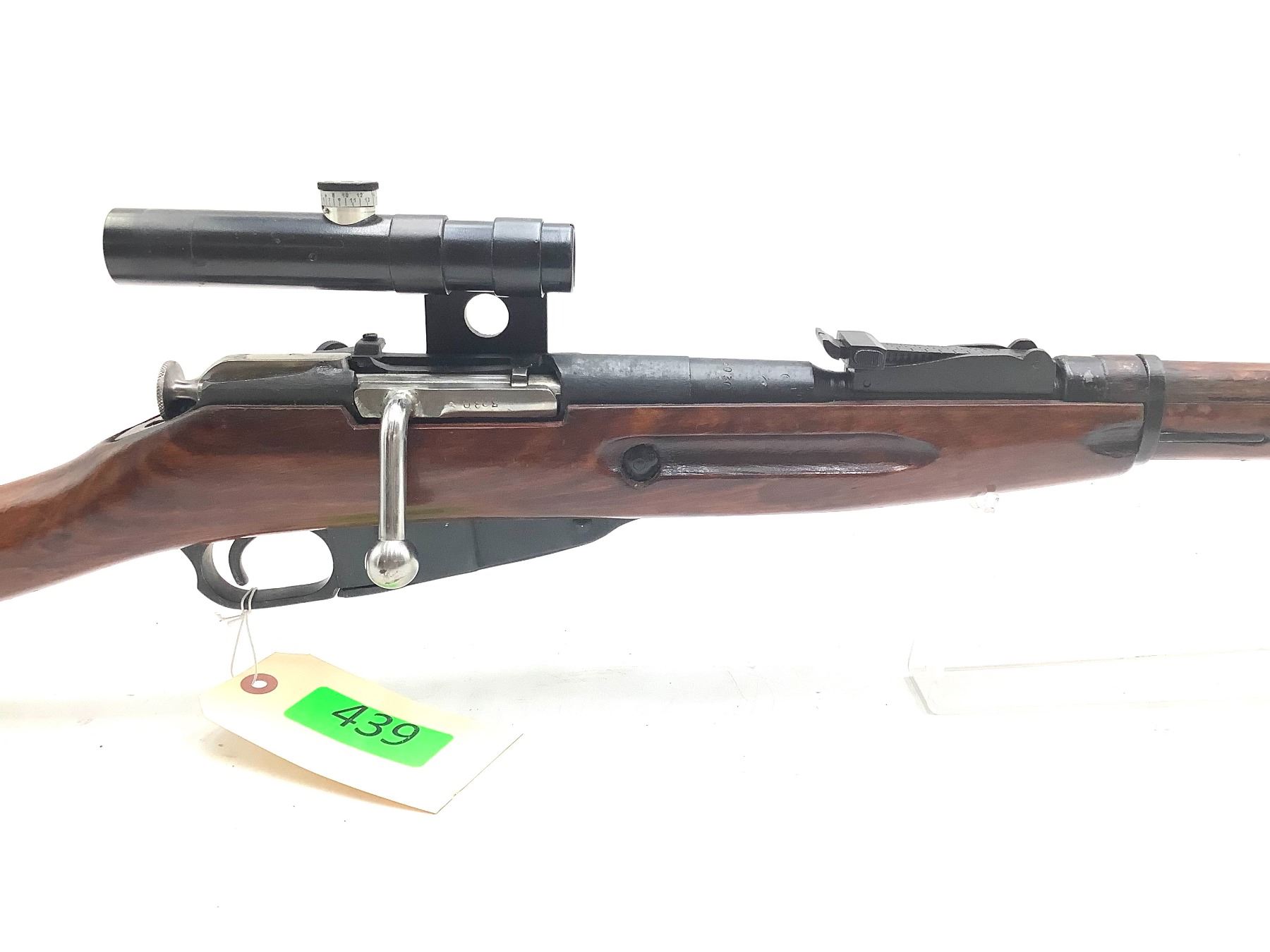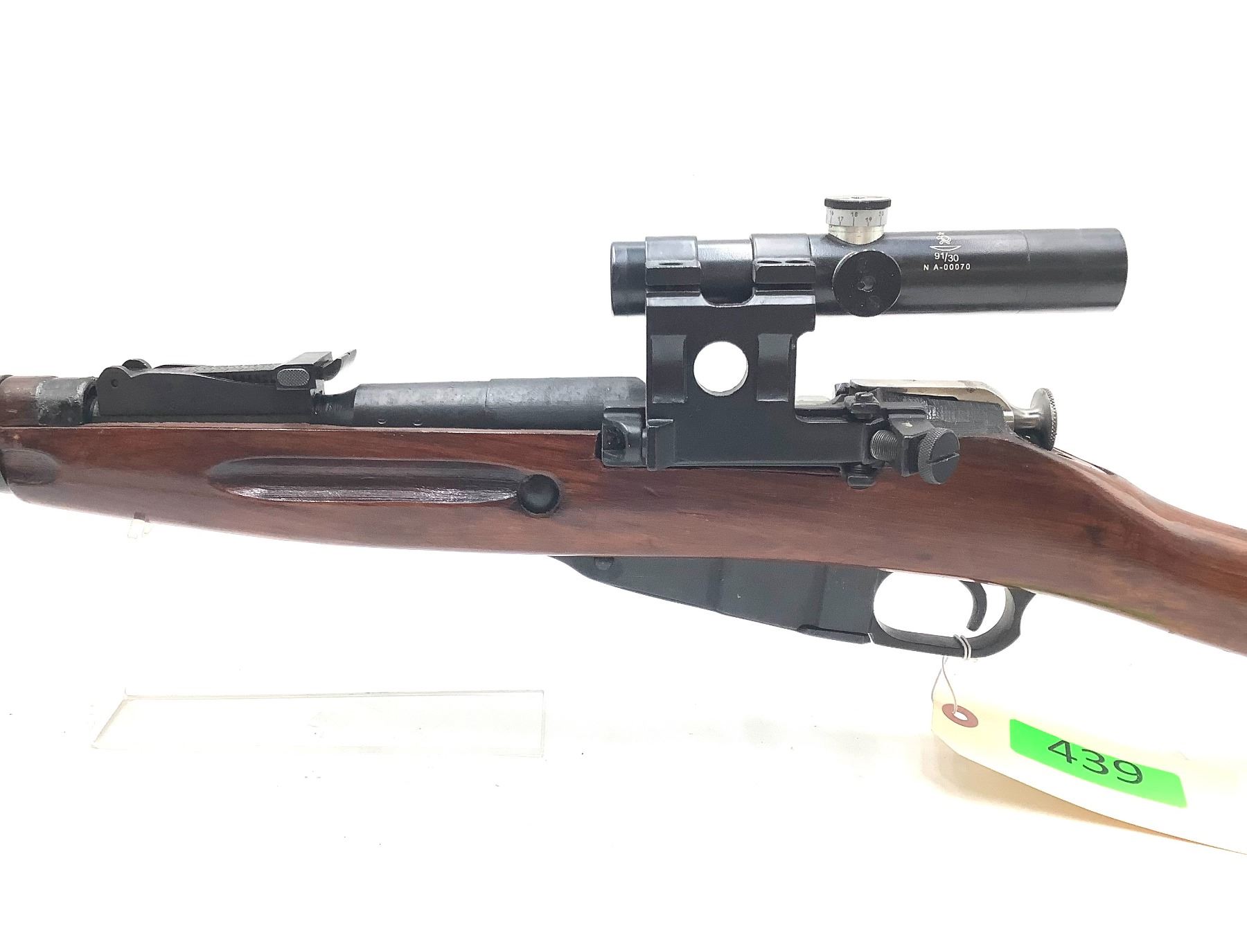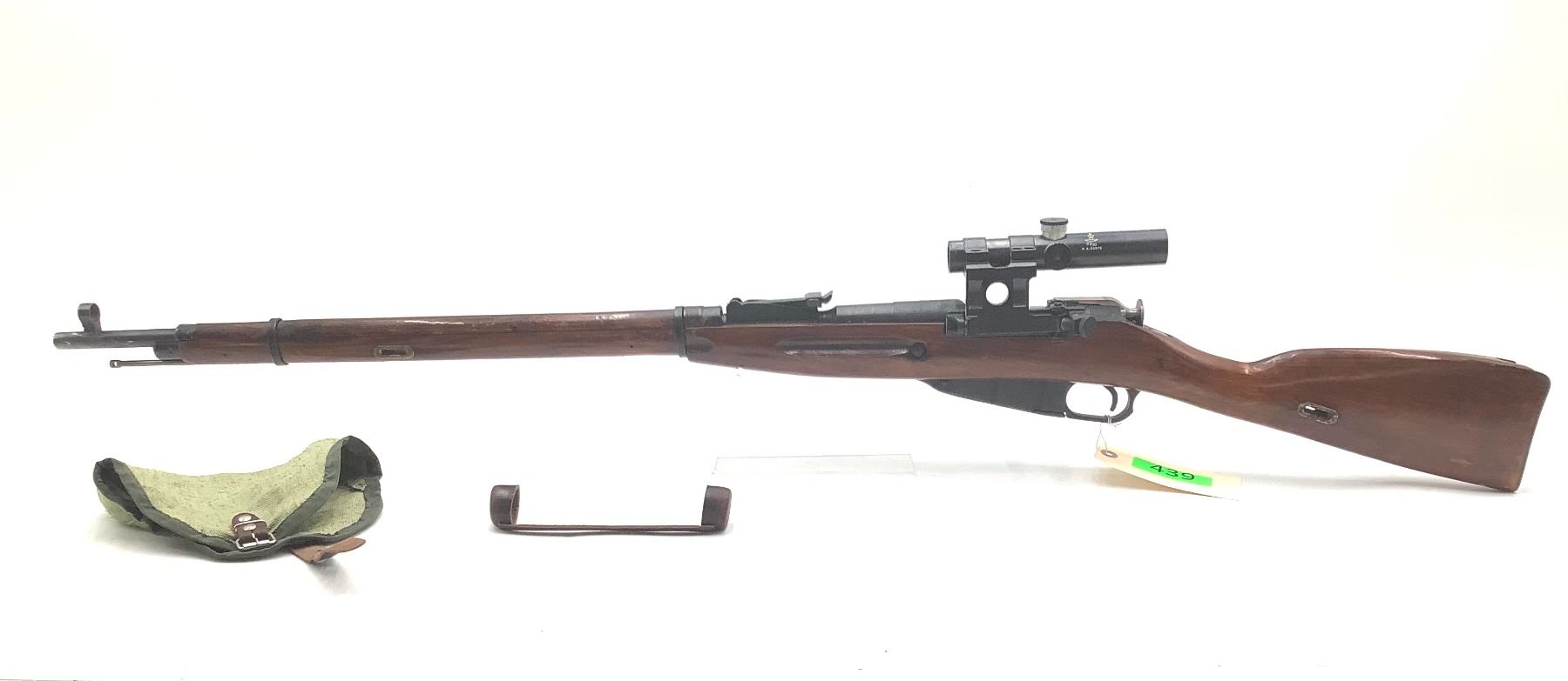 A 1942 Izhevsk-manufactured Mosin-Nagant 1891/30 bolt-action sniper rifle. 29" barrel with frosted bore chambered in 7.62x54R. 3.5X PU scope. Internal 5-round magazine, canvas scope cover. Matching serial numbers on bolt and receiver.