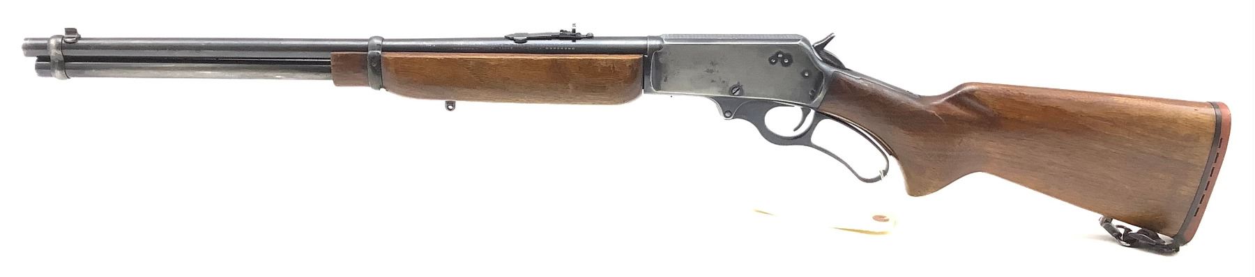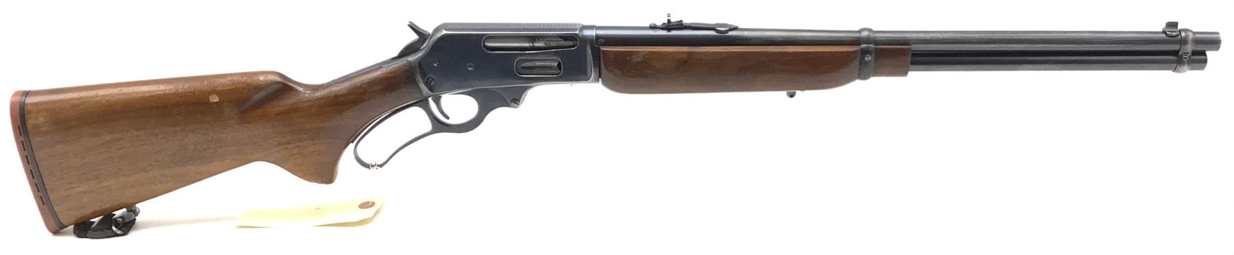 A used 1951-manufactured Marlin 336 lever-action rifle, 20" round barrel chambered in .30-30 Winchester. Bright, shiny bore. Factory sights. Finish is mostly gone on the receiver from carry wear (photo), otherwise good condition.