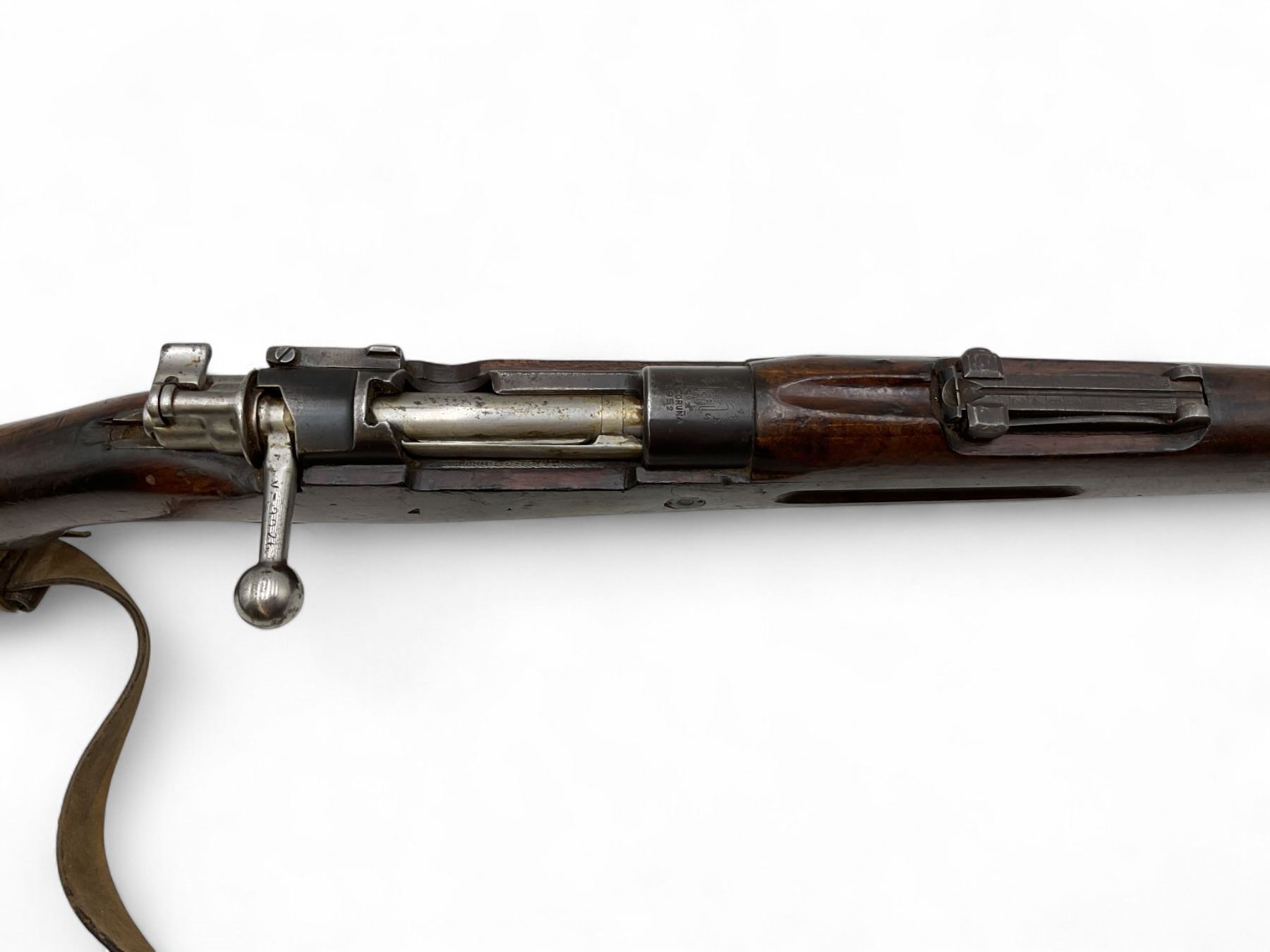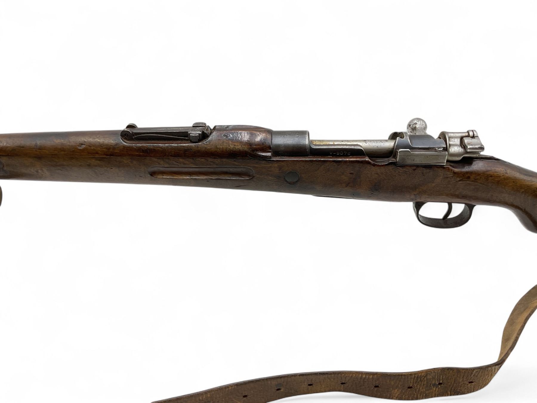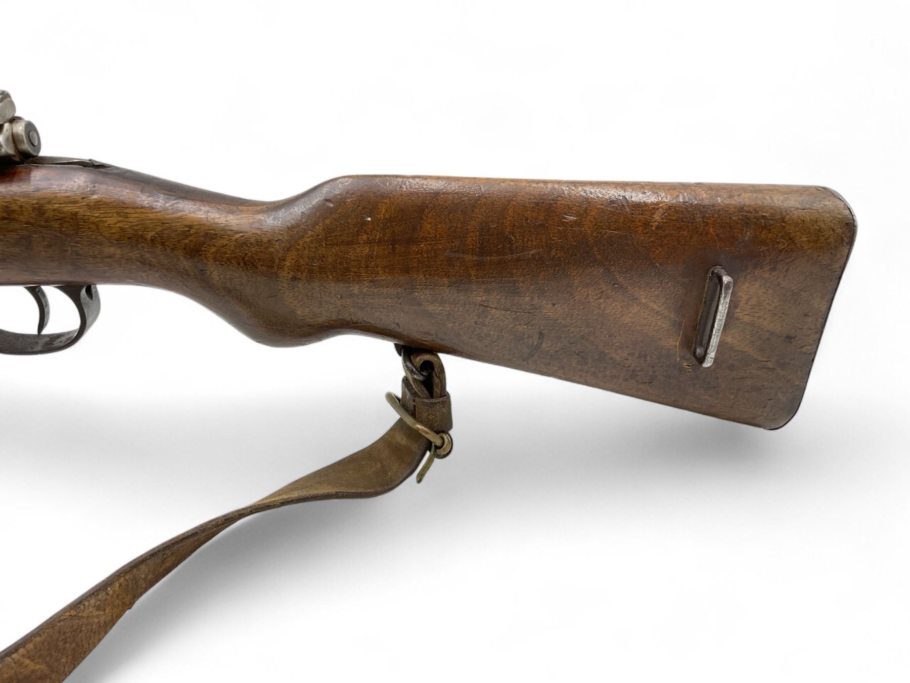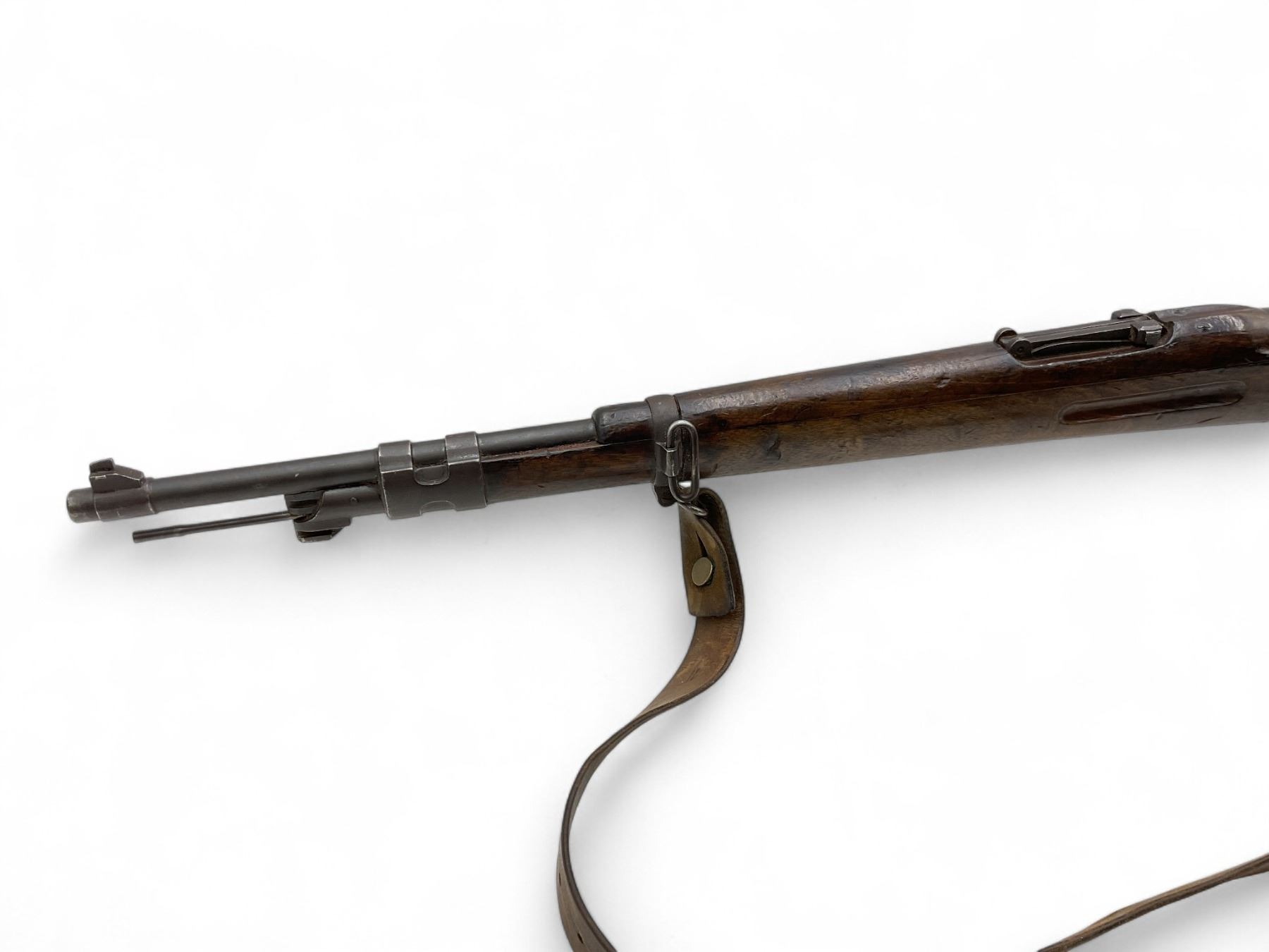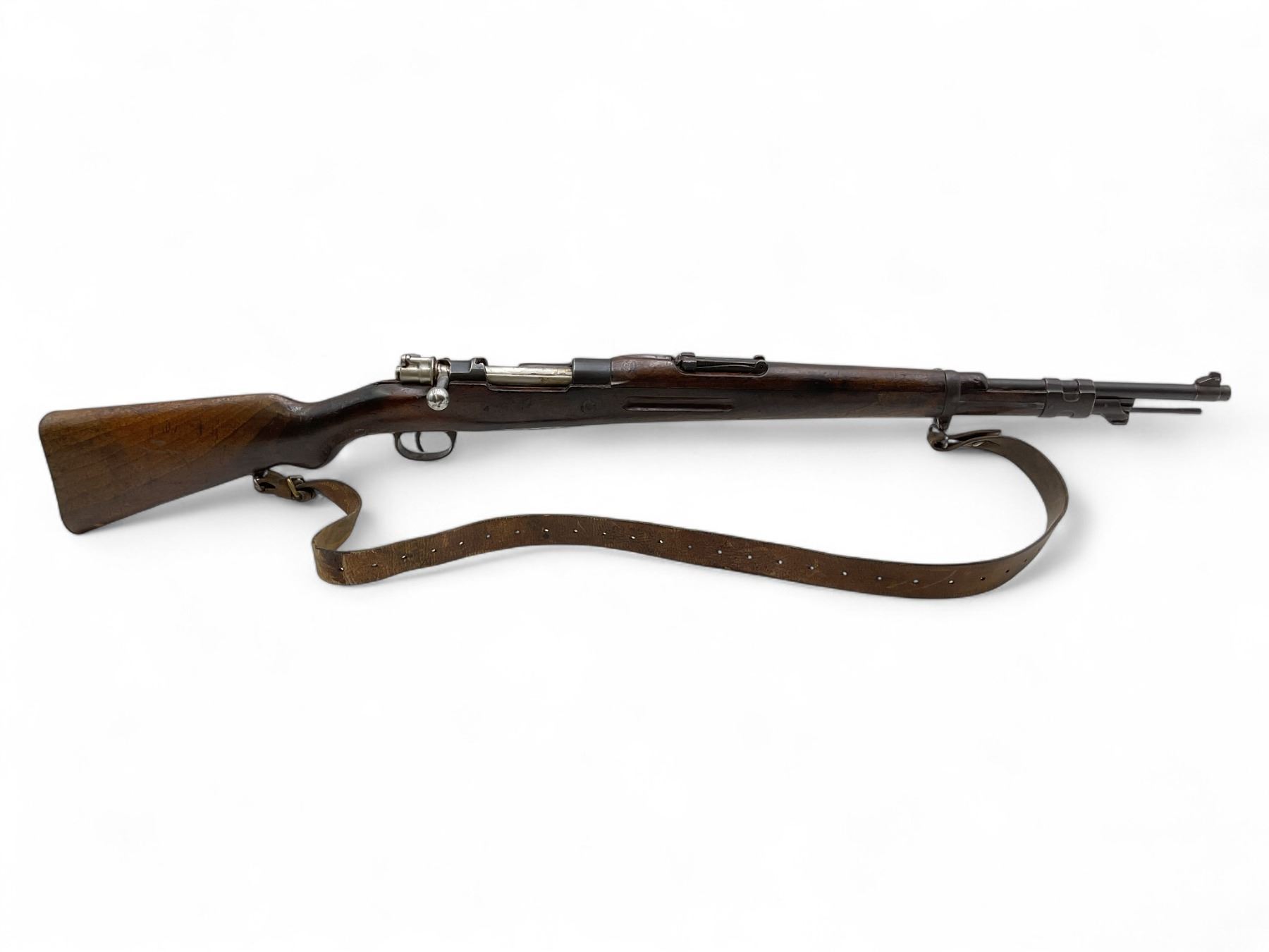 A 1952 La Coruna-maufactured Spanish M43 Mauser bolt-action service rifle chambered in 8mm Mauser. 24" barrel with good bore. Wooden stock. Original sights. Internal magazine, includes sling.