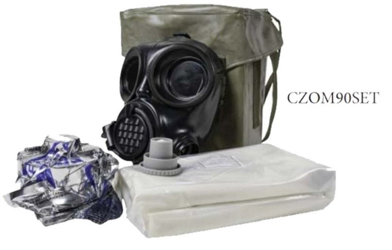Th e OM-90 is the current service gas mask of the Armáda České republiky (Czech army). Its production started in the year 1990. Th e facepiece is made of bromobutyl rubber. It's lenses are two circular, forward-looking tempered glass eyepieces optimized for optical use. It features a drinking tube system which is compatible with the camelbak system, and a center primary voice emitter. Breaking away from the previous M10 and M10M series masks, the OM-90 has a textile 5-point head harness. Th e OM-90 also sports a dual fi lter port design. Th at being said, the fi lter(s) can be inserted on the left side, the right side, or both. Although, it is not uncommon to find the OM-90 with a free port and a plugged second one. It features an oral nasal cup and an inner rubber seal. Th e voice clarity through the emitter is over 95% (as stated by the maker) Filter: Th e OM-90 is a STANAG compliant mask, and, when issued in military kit, comes with a used OF-90 (Ochranný Filtr 90) filter
