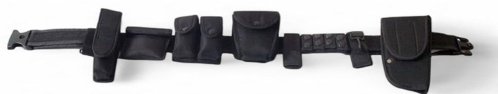 Black ballistic nylon construction. Includes: Inner belt (49”x 1.5”) and outer belt (54”x2”) with velcro and deluxe, buckle, handcuff case, baton holder, standard key ring holder, Maglite pouch, latex glove pouch, 4 belt keepers,