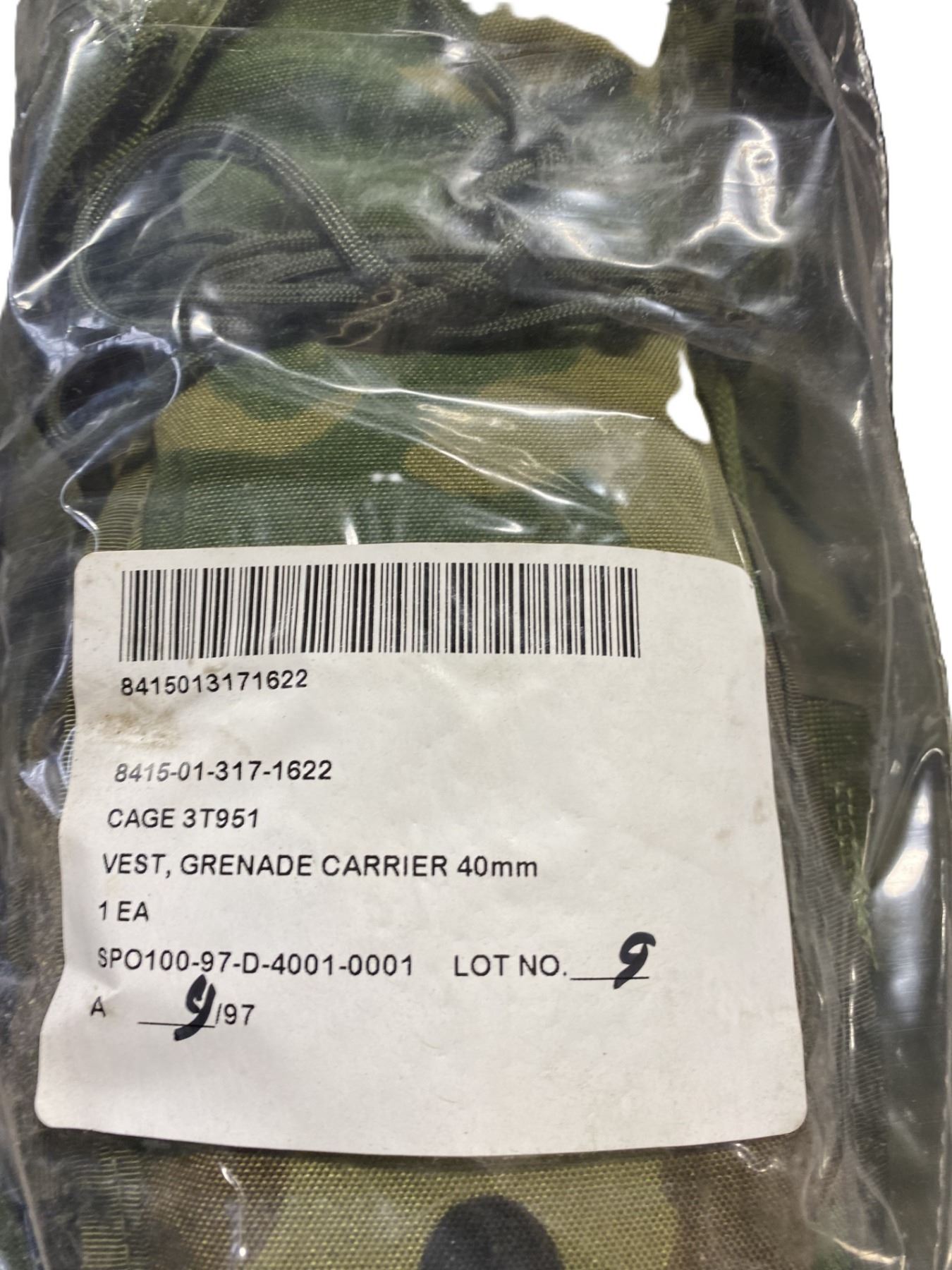 This genuine US Military issue load bearing woodland camo vest is constructed with lightweight yet durable nylon fabric with 1/2" foam padding for shoulder protection. It features sewn-in pouches, two buckles for secure fastening and adjustable draw-cords that are connected to left, right and back panels in a corset lacing system secured by cord lock. This USGI Woodland Grenade Load Bearing Vest is ideal for carrying 40mm grenades. This vest can hold a total of 14 HE Grenades and 4 x 40mm special purpose grenades in permanently attached grenade pockets. Wear with the standard equipment belt and enjoy a comfortable fit and secure load-bearing with this one-size-fits-most vest. Features: