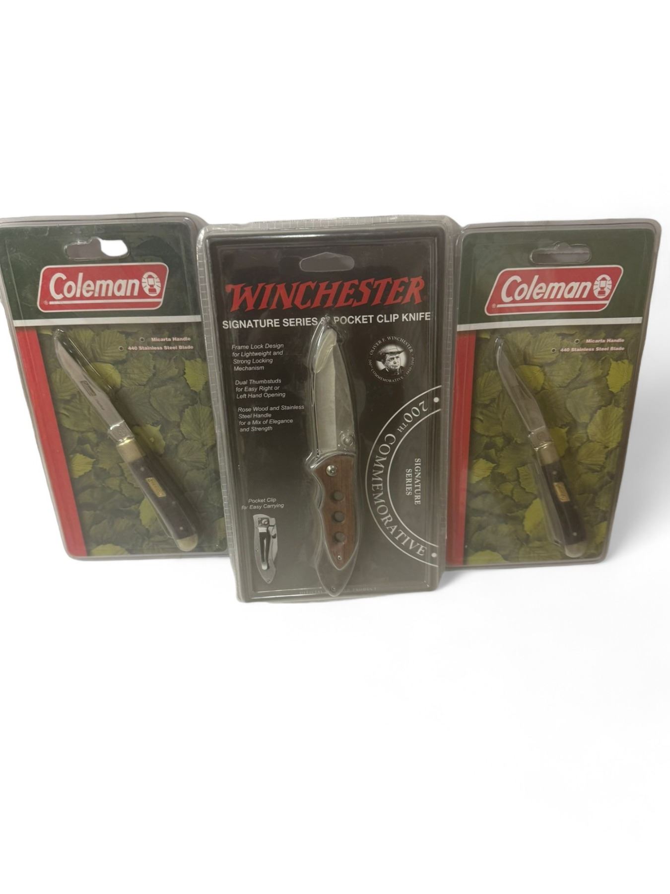 2 Coleman Folding Knives, 1 Winchester 3" Pckt Clip Knife