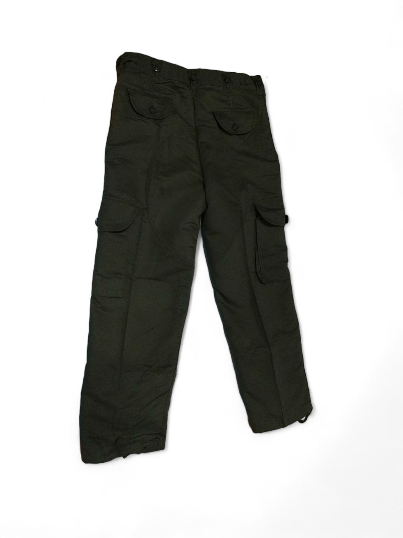 6 Flap pockets with button enclosures, Blousing Strings and sound Straps, Original Canadian Material. Reinforced knees and Seat, belt loops with buttons