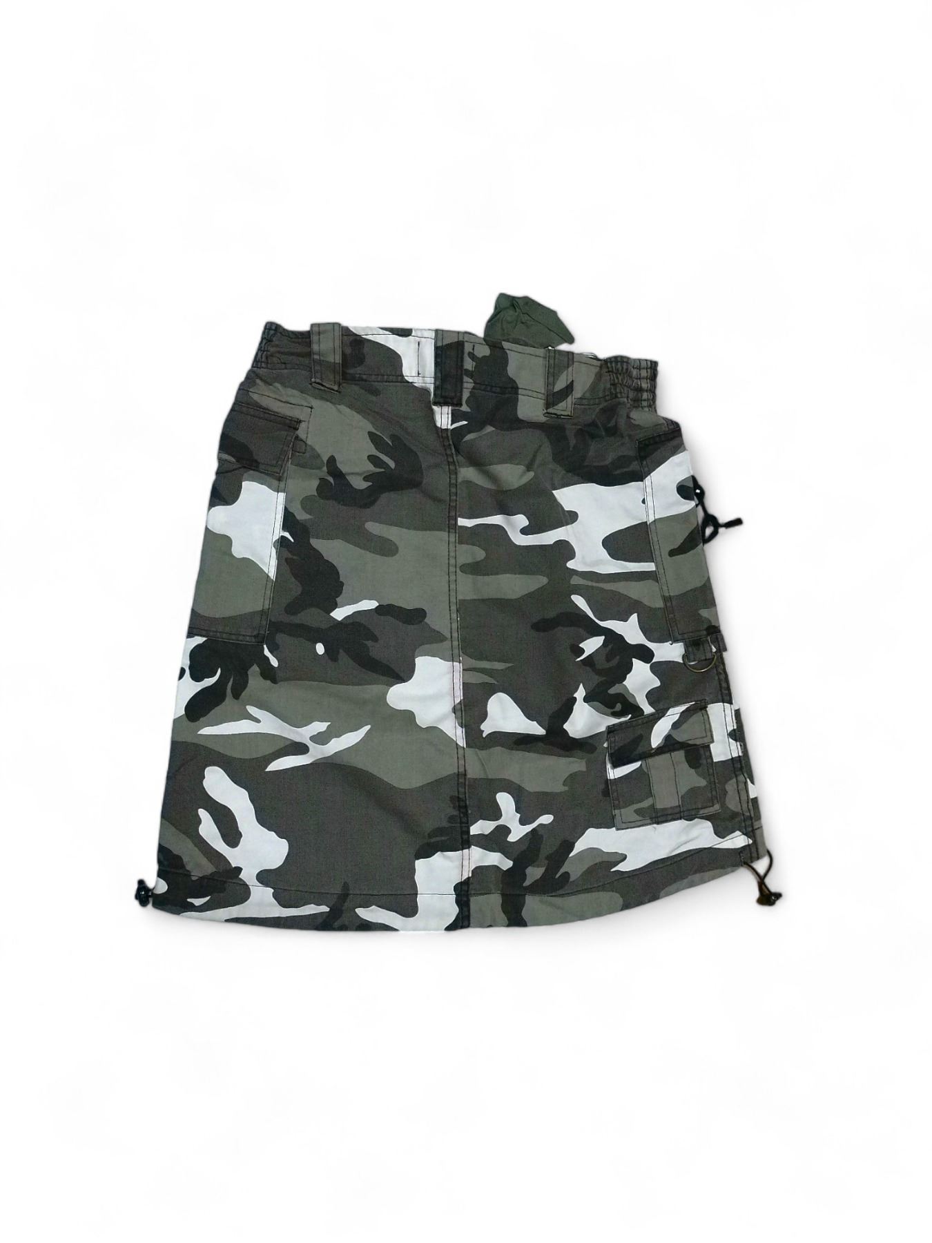 Comfortable and durable Poly/Cotton, Elastic Waist, Knee Length Skirt, 3 pockets with flap, 1 zipper pocket, zipper fly