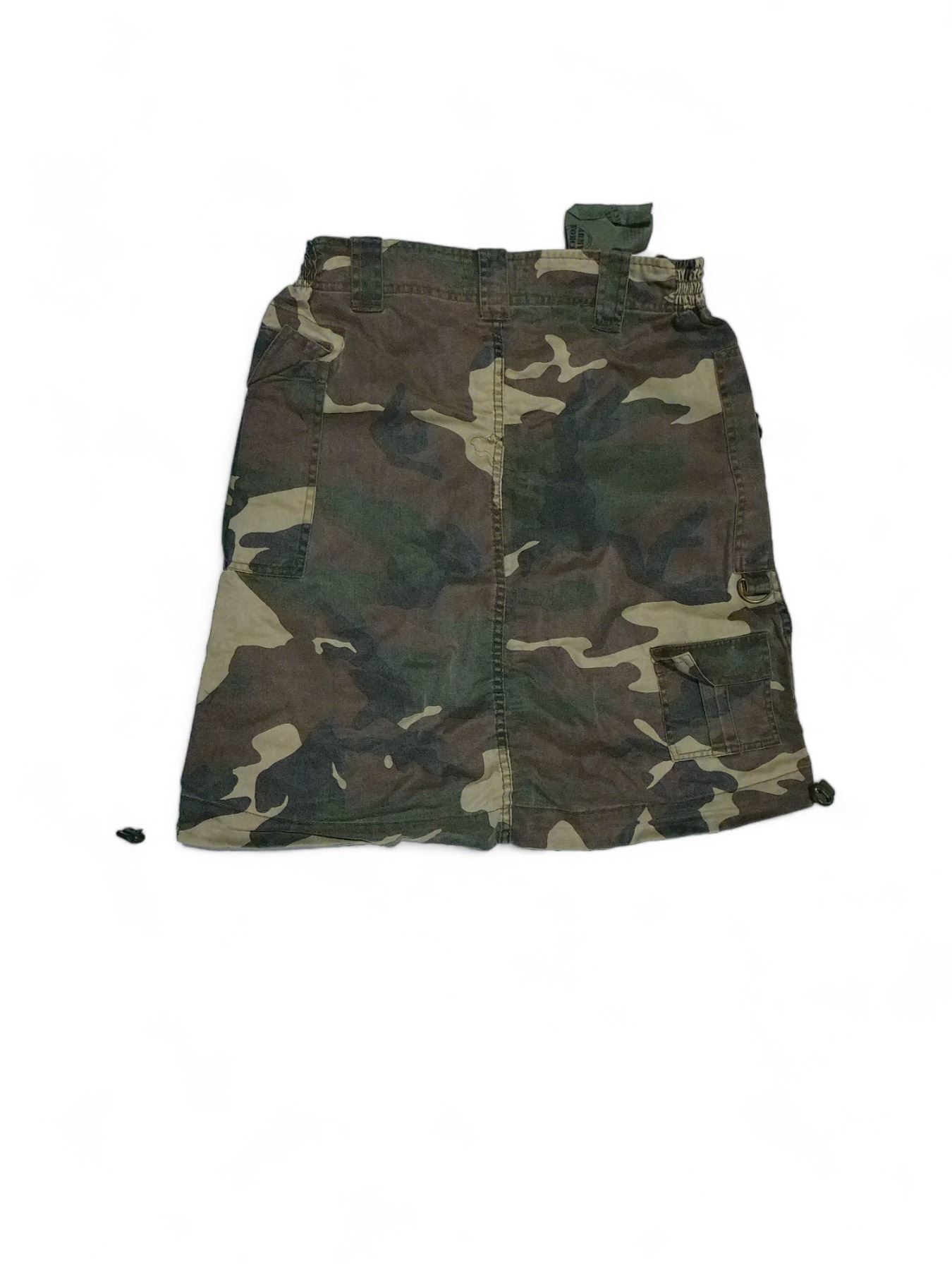 Comfortable and durable Poly/Cotton, Elastic Waist, Knee Length Skirt, 3 pockets with flap, 1 zipper pocket, zipper fly