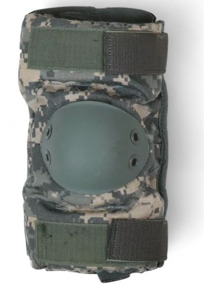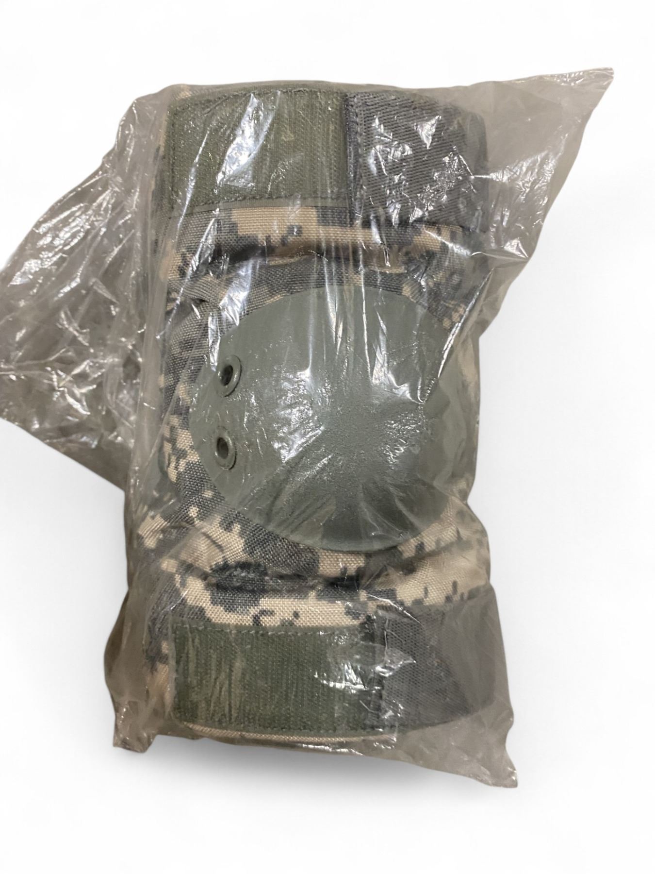 This is a pair of genuine U.S.G.I., ACU pattern (Army Combat Uniform), padded Elbow Pads. These elbow pads have two wrap around velcro closures for comfort and to prevent slippage. High impact, shatter resistant caps are soft foam covered with durable Cordura nylon for years of use and designed to be used in the most adverse combat conditions. Great for skateboarders, paintball, BMX, etc. These elbow pads are U.S. Military issue and in New condition.