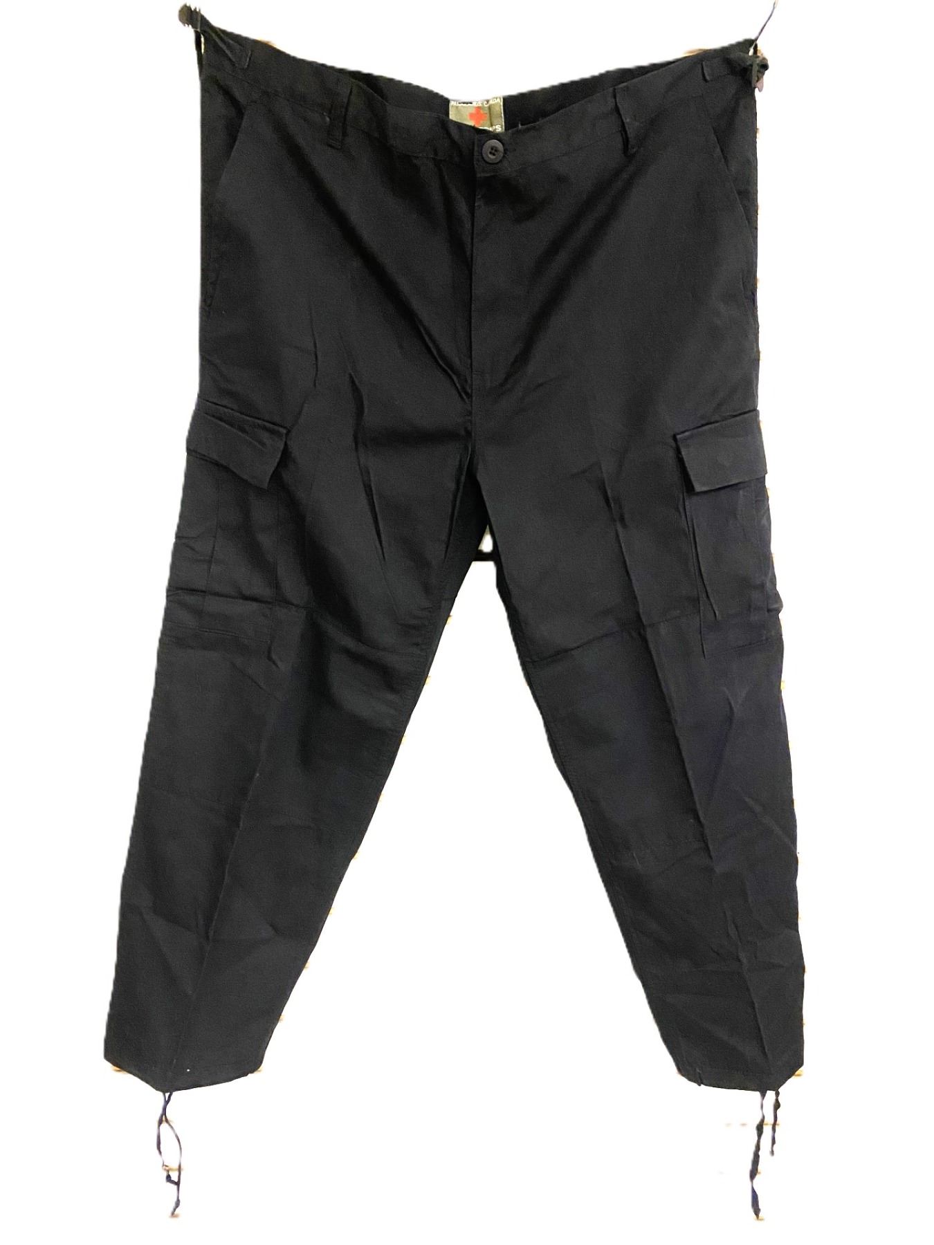 Quality functional BDUs, 100% cotton Rip-Stop, double-reinforced seats and knees, adjustable waist tabs, drawstring bottoms.