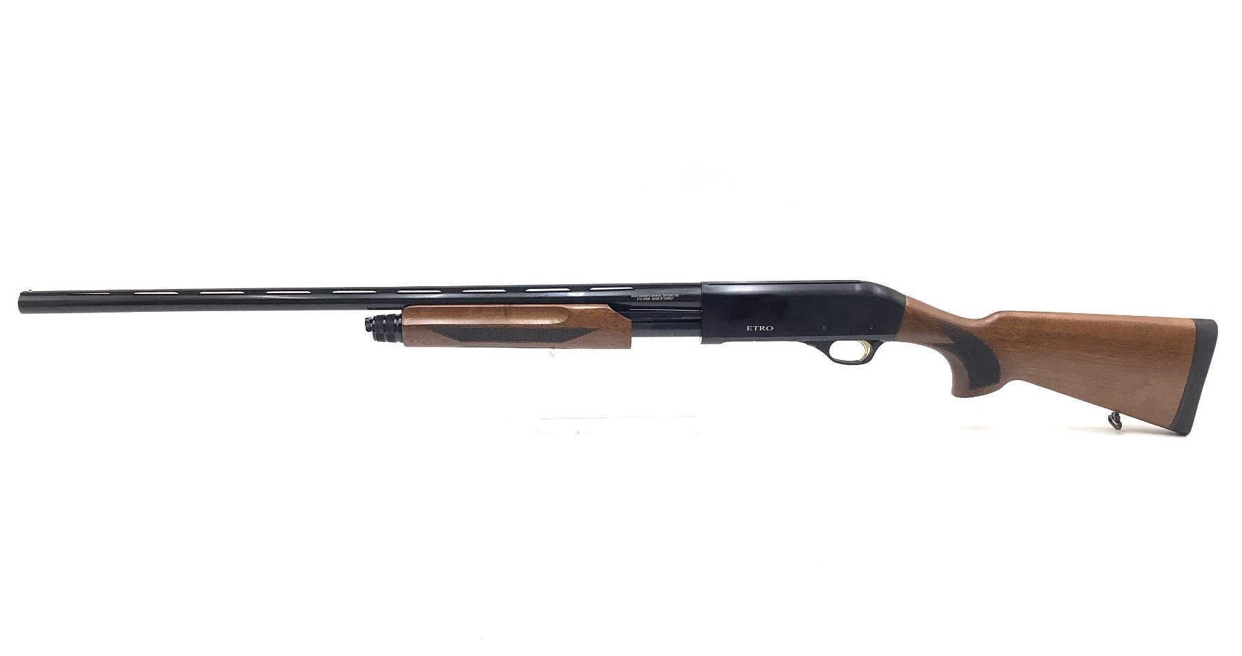 ATA Etro Pump Action 20Ga Shotgun 3" Chamber 28" VR Barrel Wood Stock, New. Bead sight, vent rib. Comes with a removable choke. This is a non-restricted firearm.