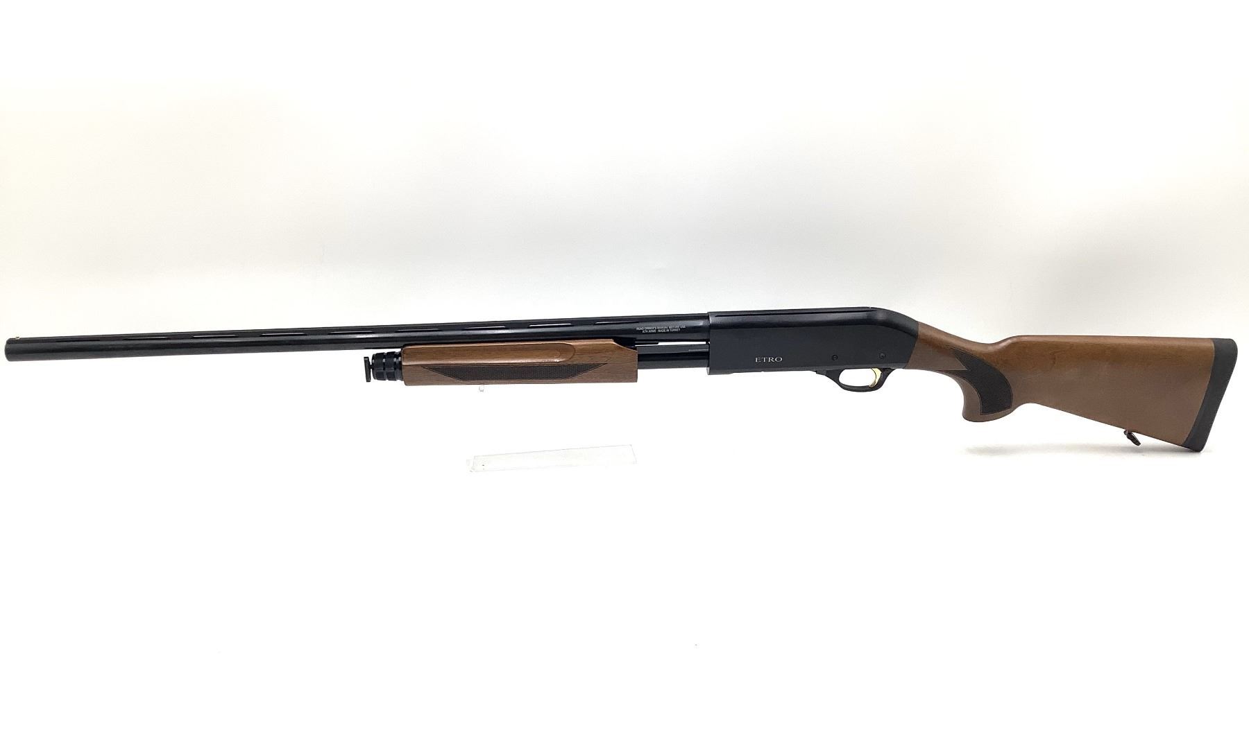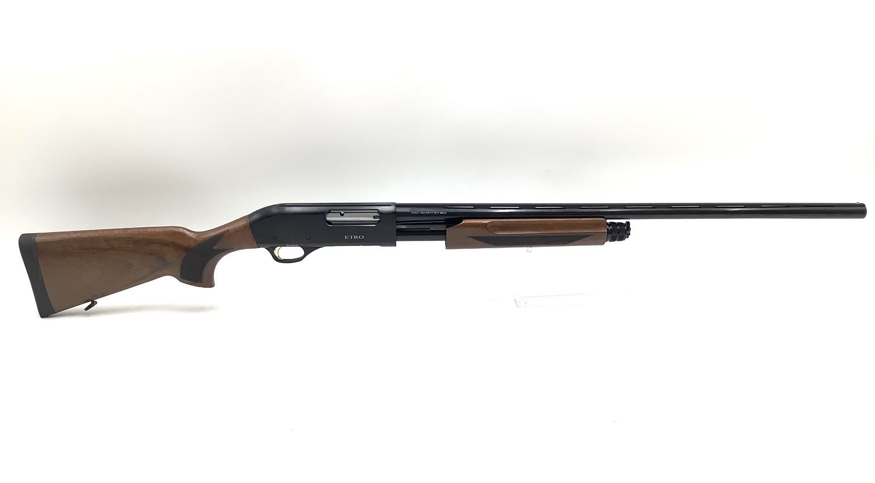 ATA Etro Pump Action 20Ga Shotgun 3" Chamber 28" VR Barrel Wood Stock, New. Bead sight, vent rib. Comes with a removable choke. This is a non-restricted firearm.