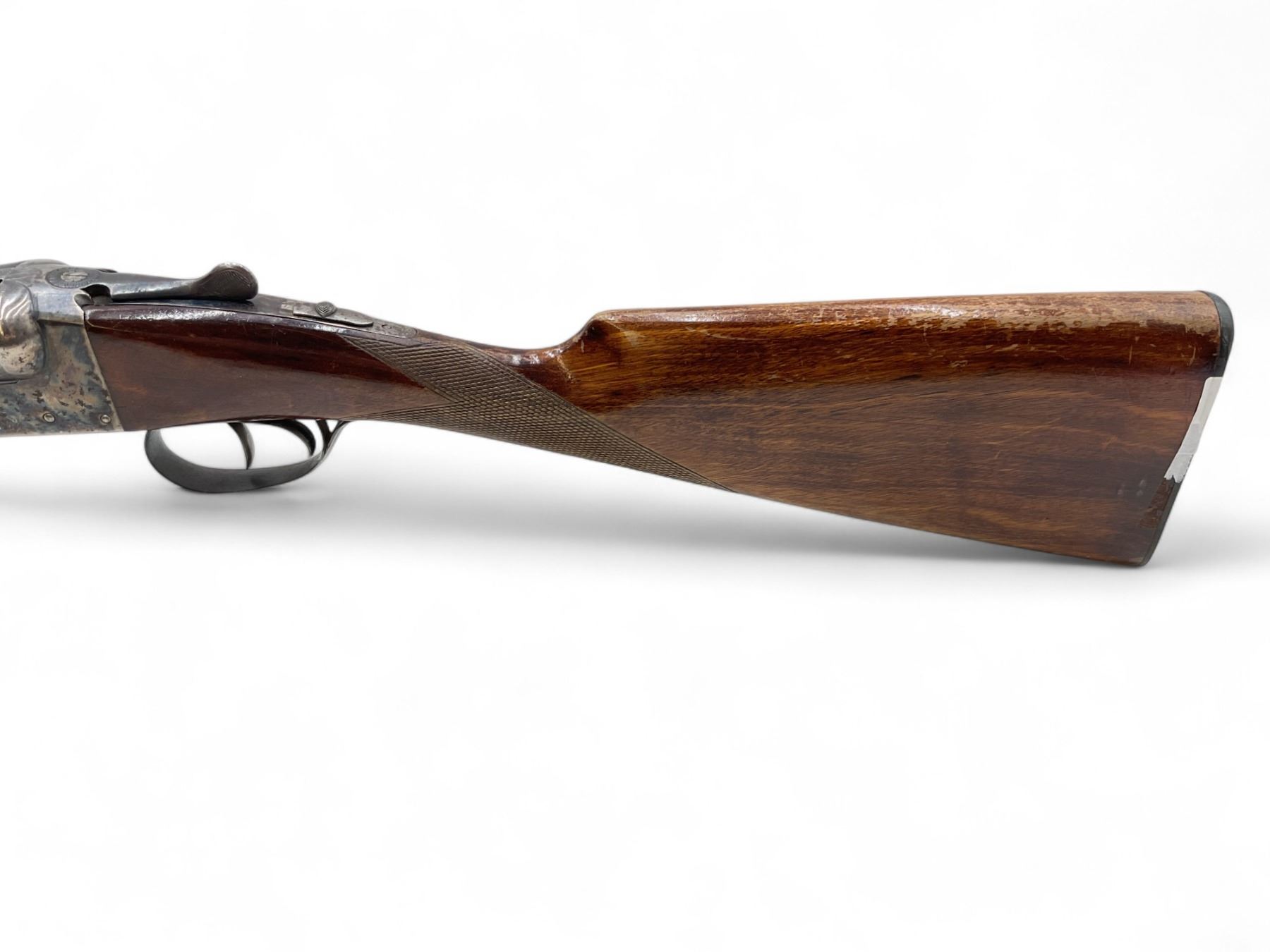AYA Side By Side Shotgun 12Ga 2.75" Chambers 28" Barrels Wood Stock. Bead sight; fixed chokes. Double triggers; right side barrel firing pin stuck forward and trigger does not function. This is a non-restricted firearm.