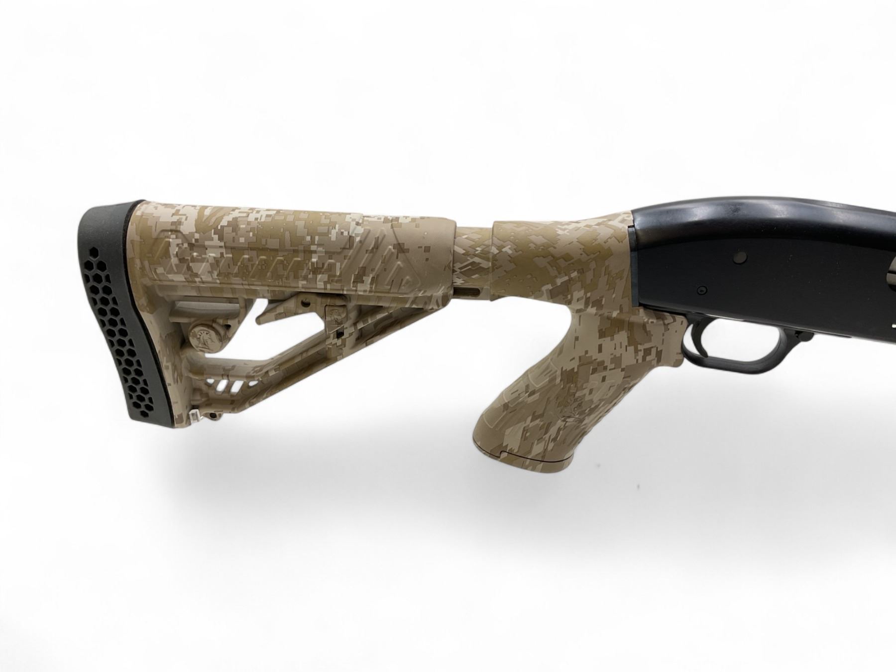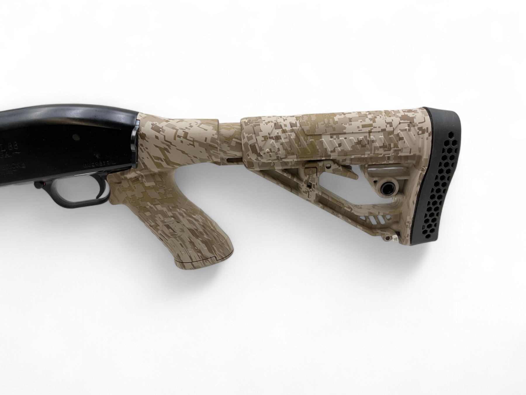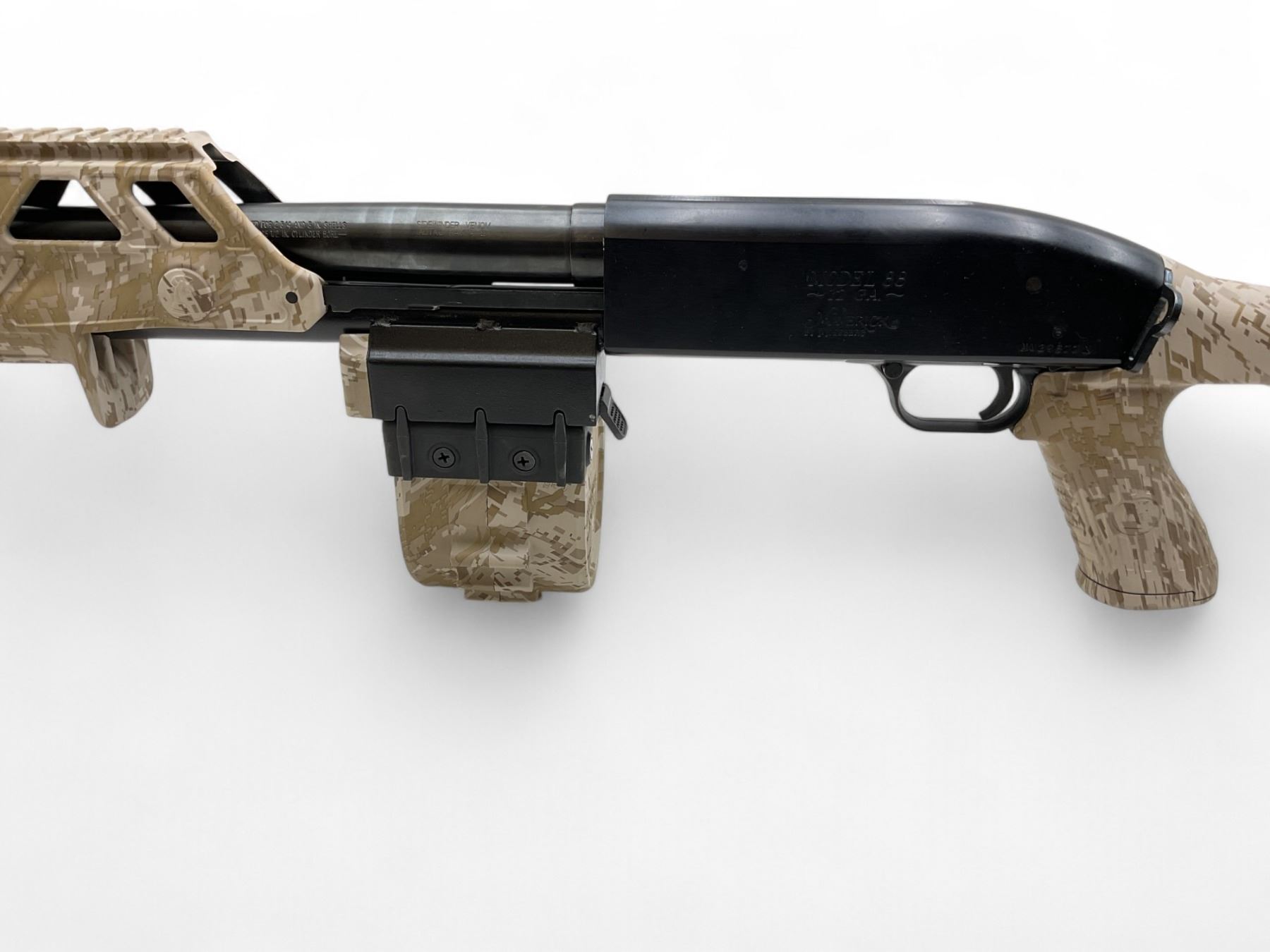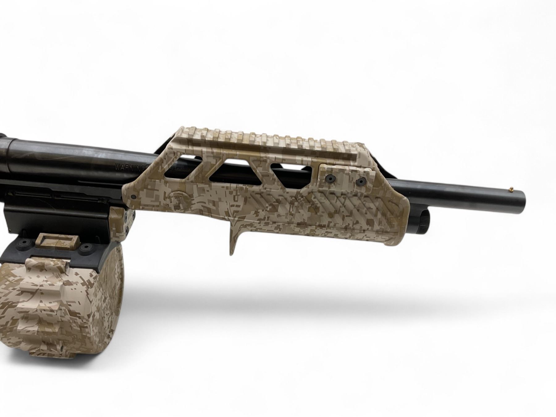 Adaptive Tactical Maverick Model 88 Pump Action Shotgun 12Ga 3" Chamber 18.5" Barrel Camo Adj Stock. Bead sight, fixed choke. Comes with a detachable drum magazine. This is a non-restricted firearm.