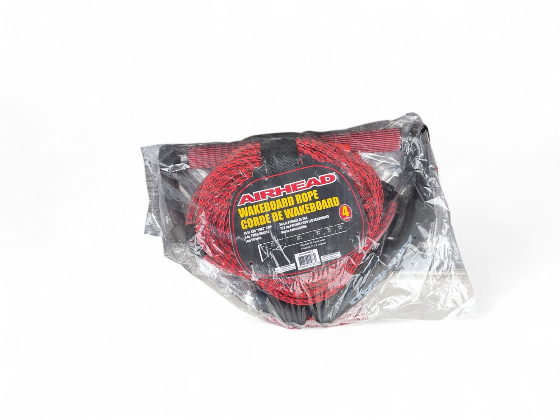 Airhead Wakeboard Rope with 15" Eva Phat Grip, 6" Trick Handle, 4 Section 70', New