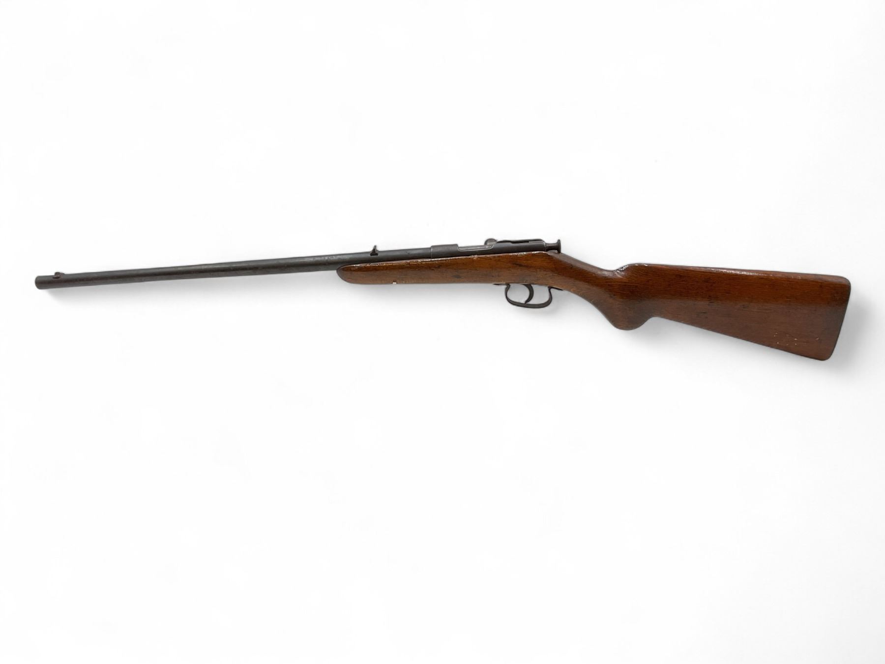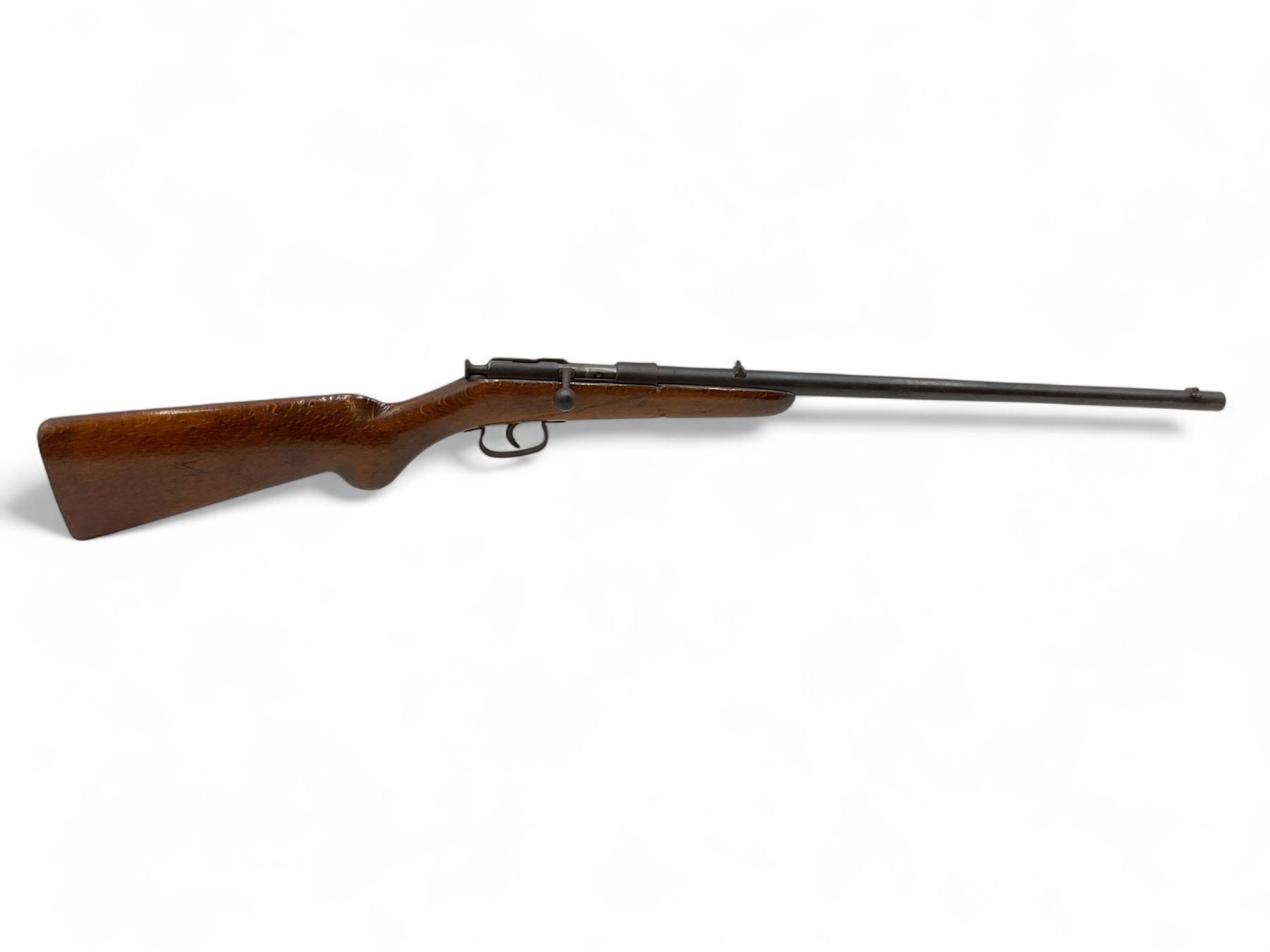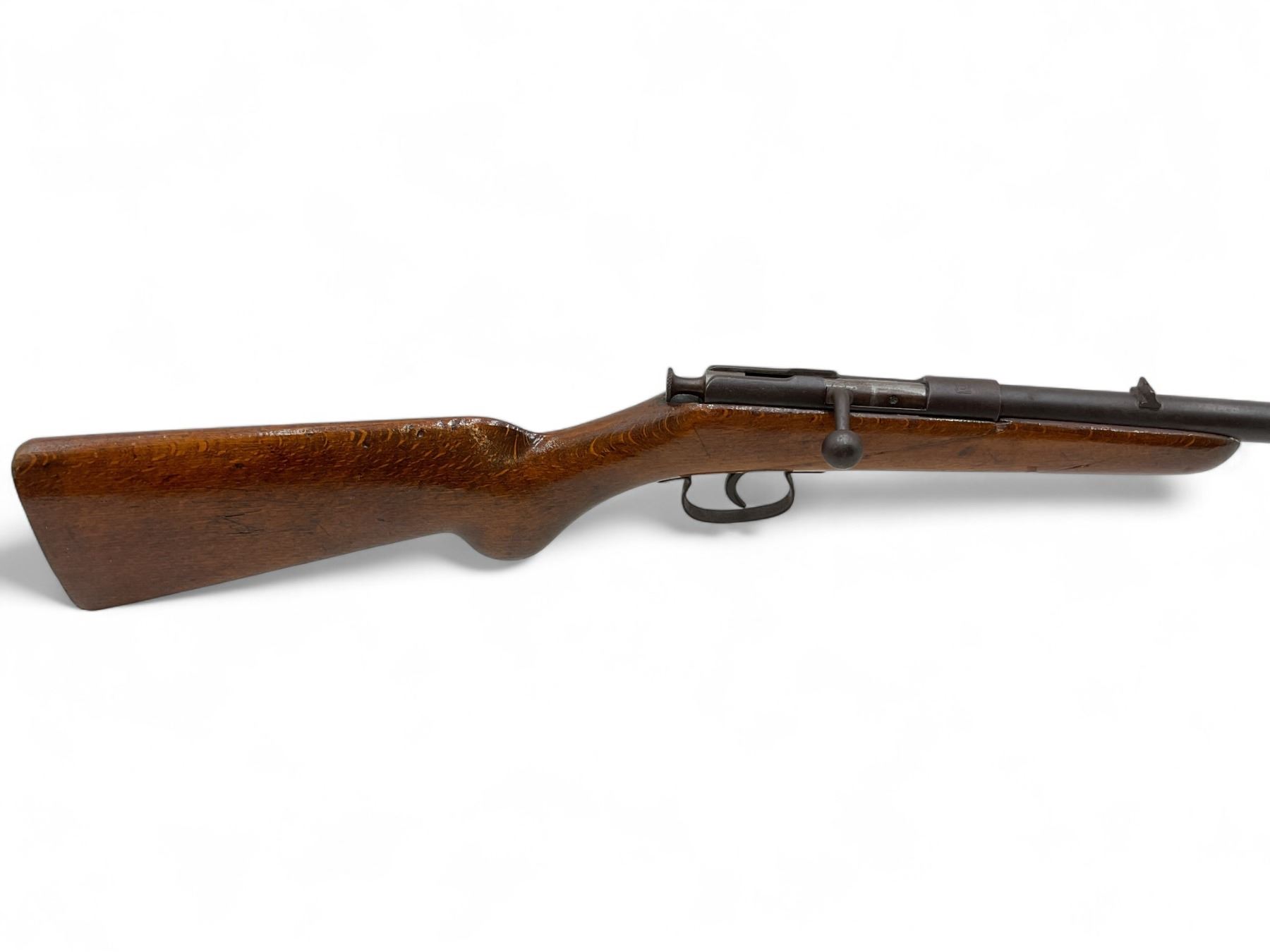 Akah Single Shot Shotgun 9MM Flobert 18" Barrel Wood Stock. Fixed sights. Wood stock cracked on both sides. This is a non-restricted firearm.