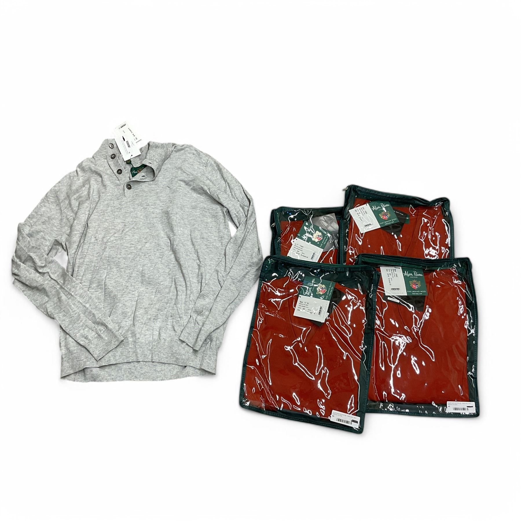 Alan Paine Millbrook Merino Wool Sweater, Size UK 44, 46 and Grey Long Sleeve Polo Size UK 44