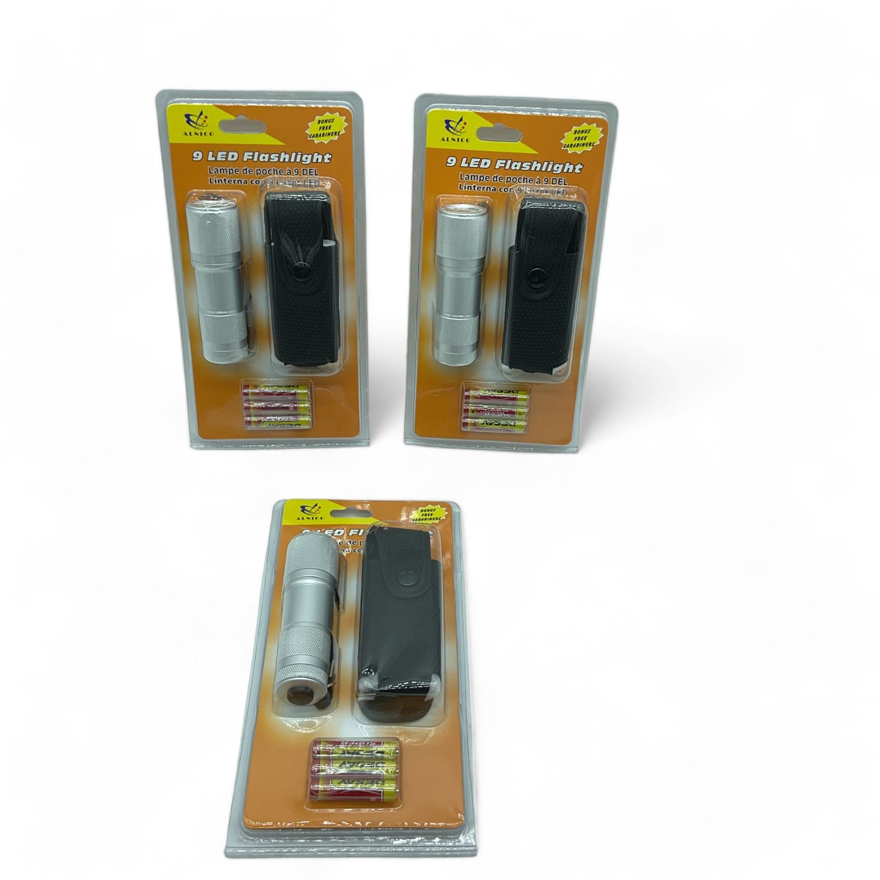 Alnico 9 LED Flashlight with Case X 3 Qty