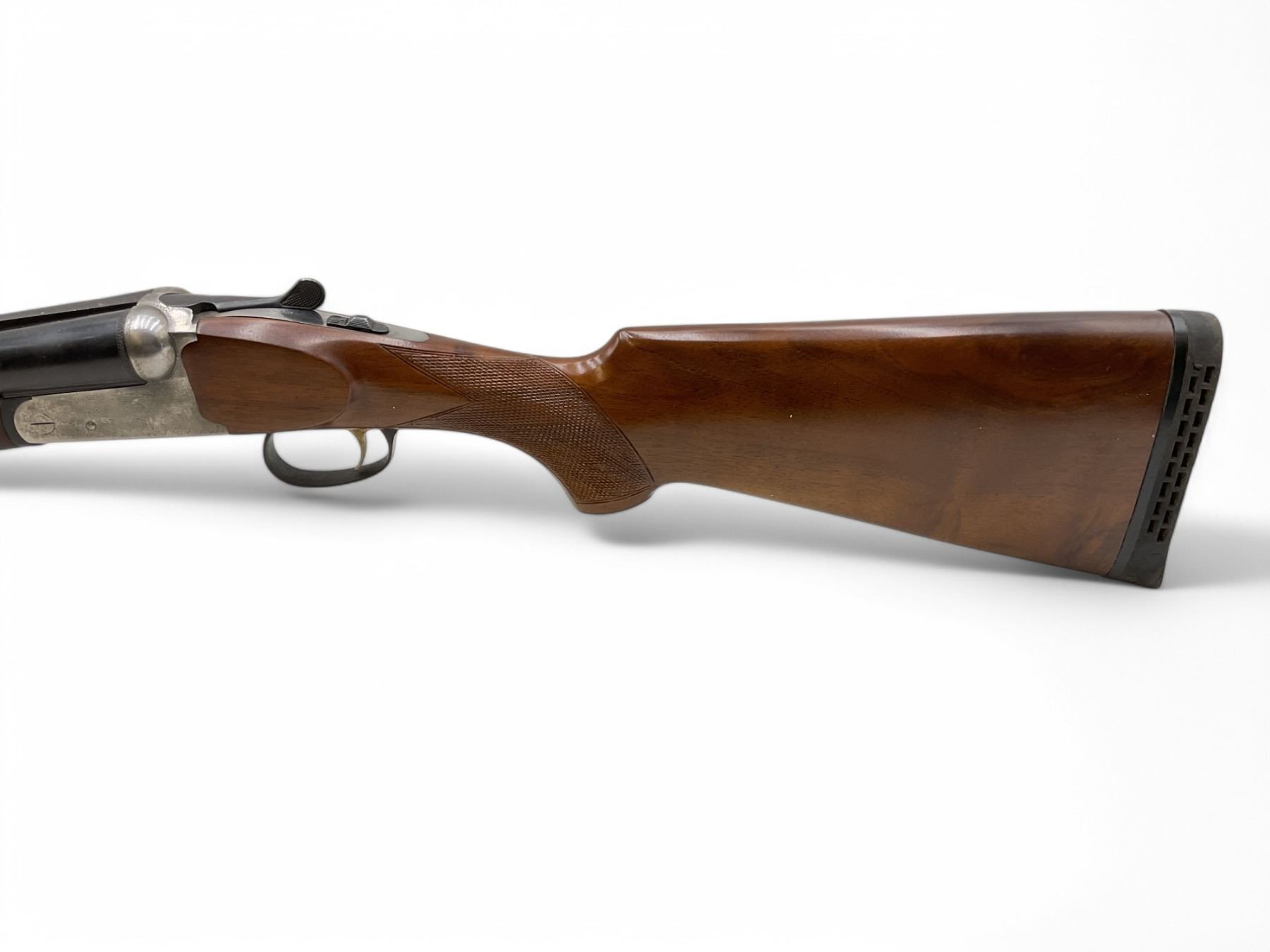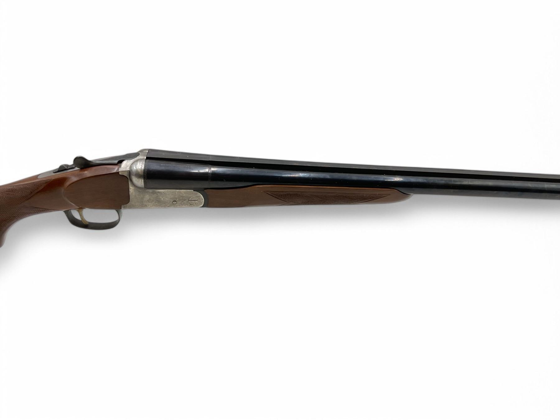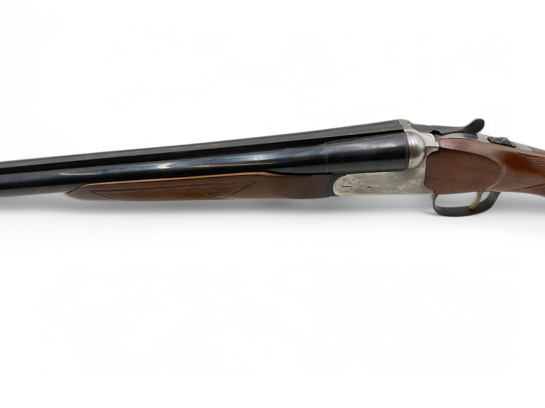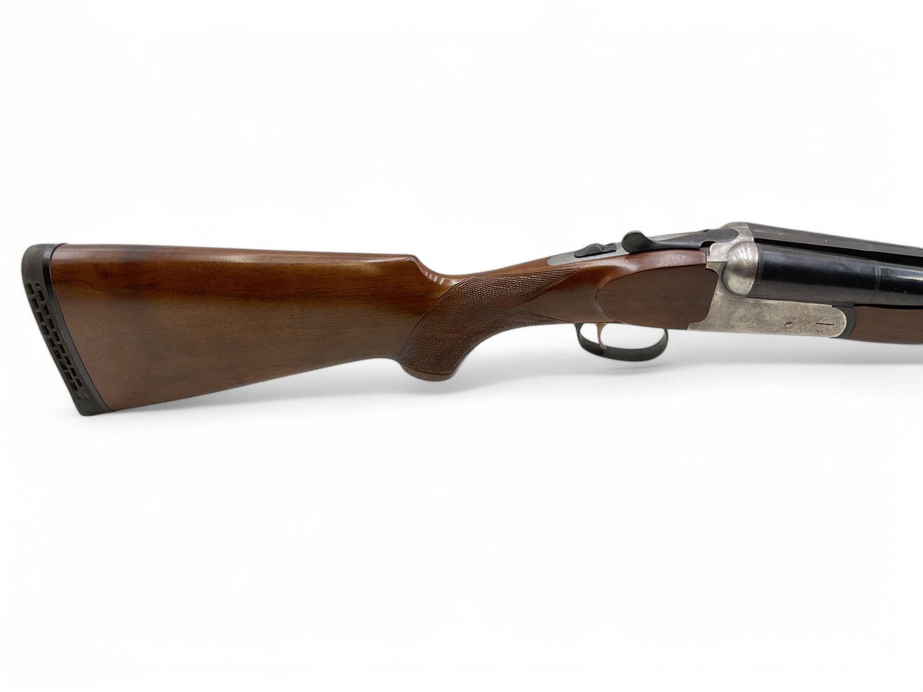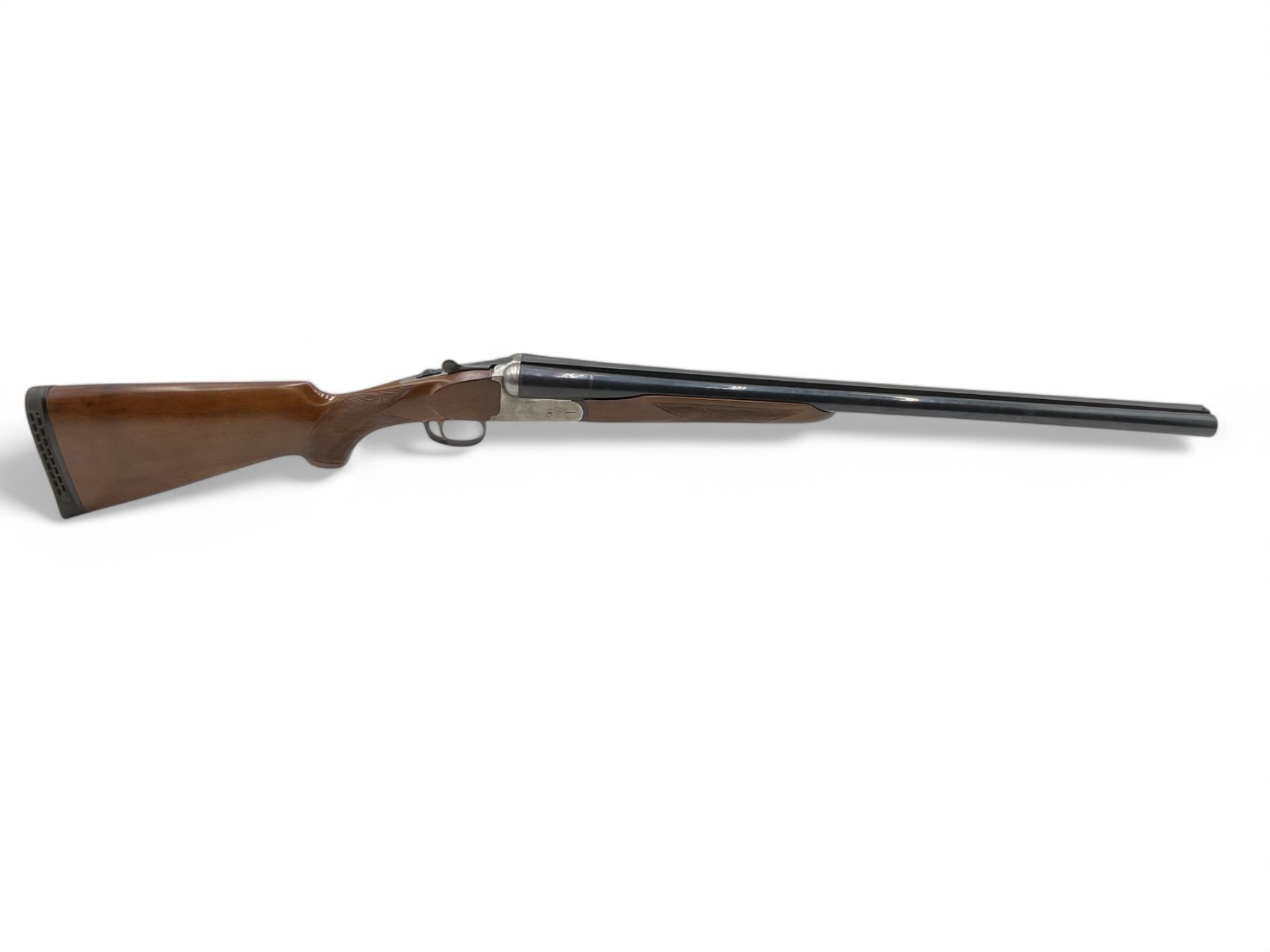 American Arms Side By Side 12Ga Shotgun 3" Chambers 26" Barrels Wood Stock. Bead sight; each barrel has a removable choke. Single trigger; rubber butt pad. This is a non-restricted firearm.