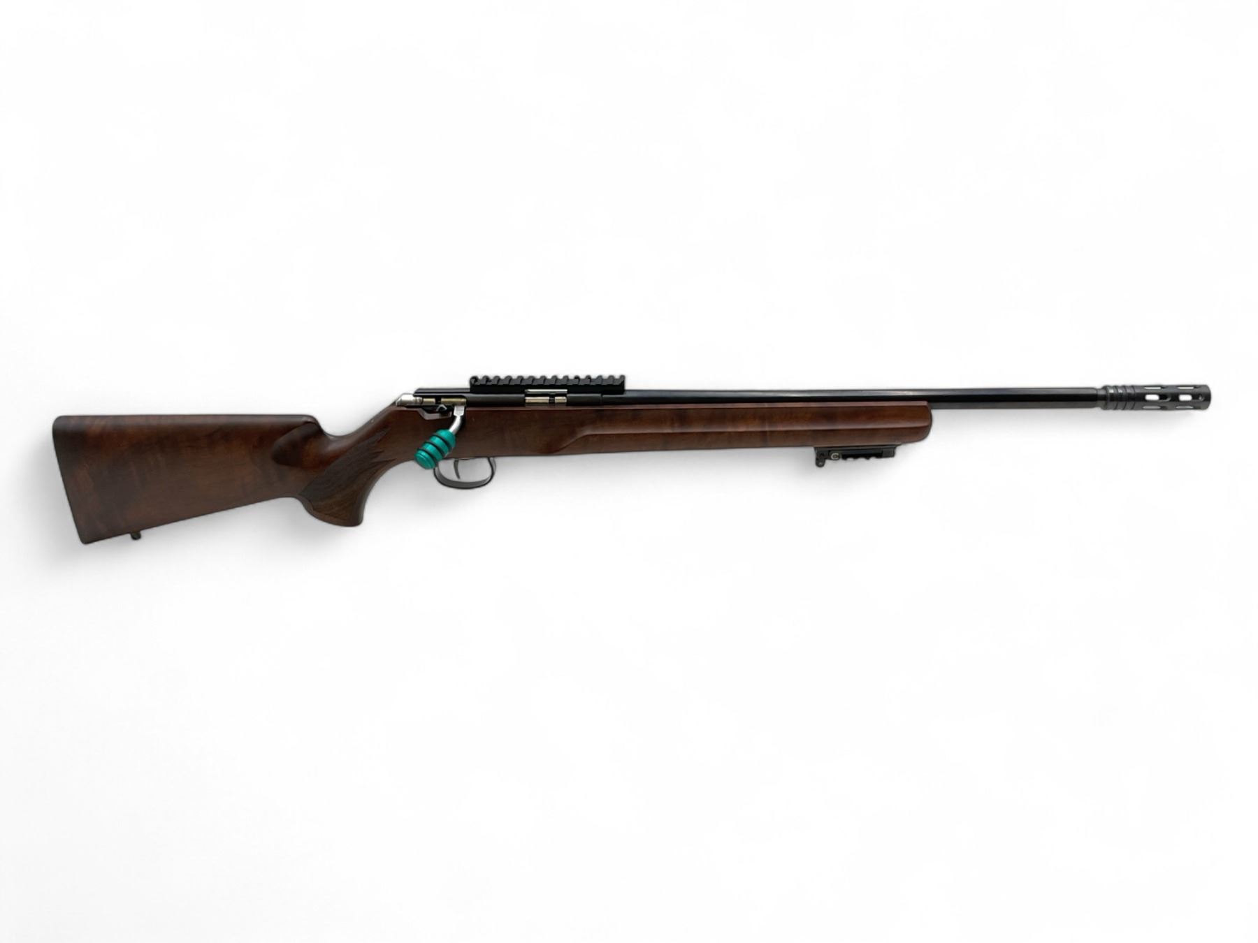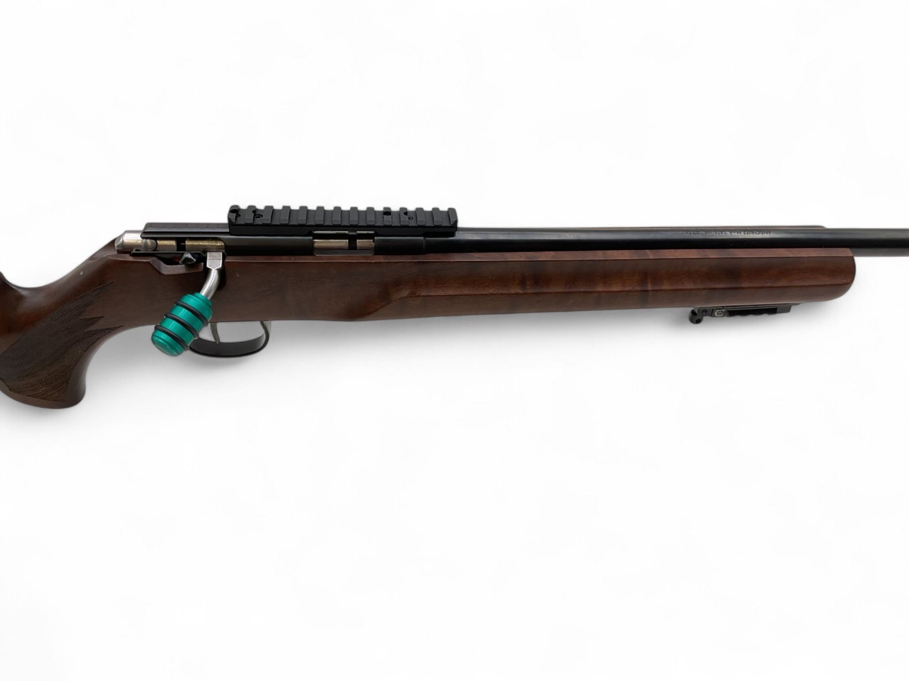 Anschutz Model 1416 Bolt Action Rifle .22LR 18" Threaded Barrel Wood Stock. Comes with one detachable magazine. Over size bolt knob; receiver drilled and tapped with one piece rail installed. This is a non-restricted firearm.
