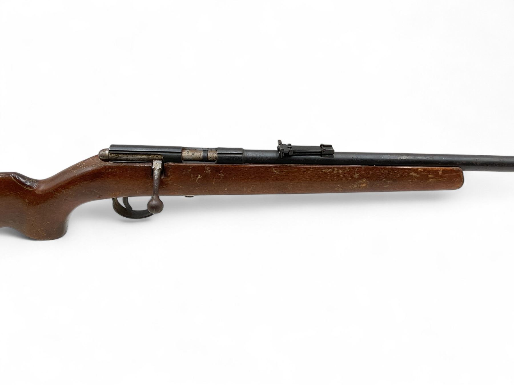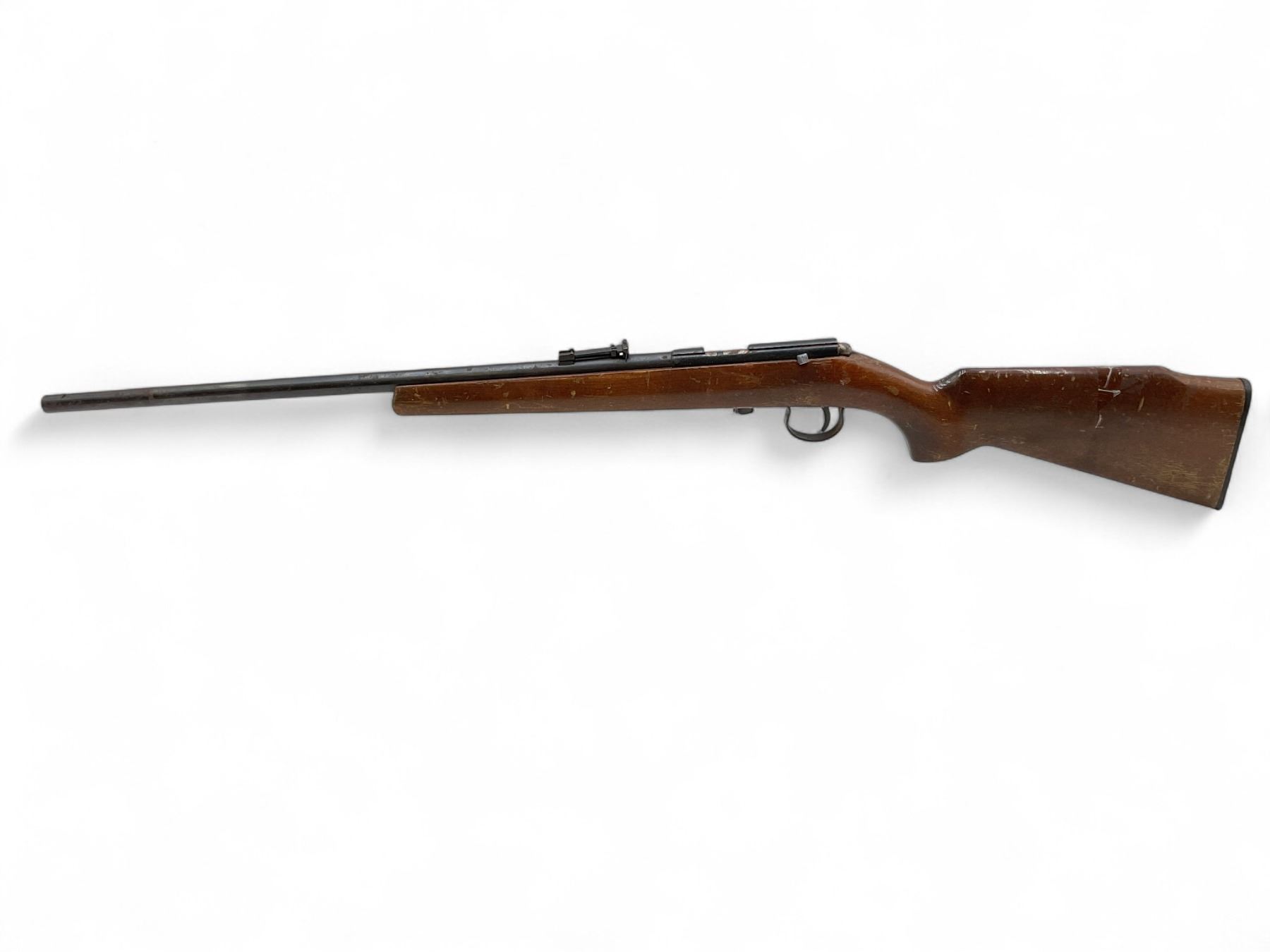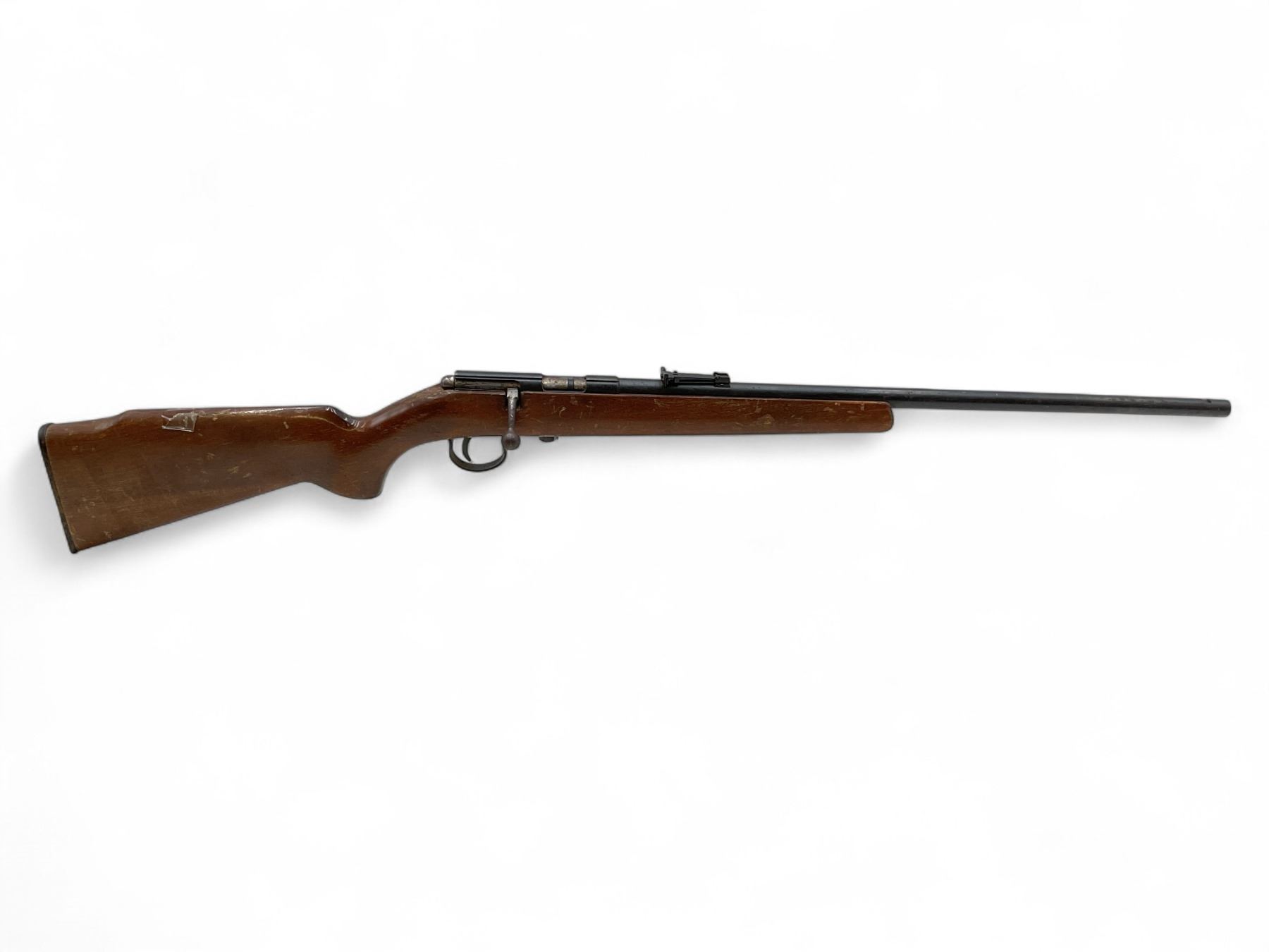 Anshutz Model 1400 Bolt Action Rifle .22LR 22" Barrel Wood Stock. No magazine included. Stock is loose. Missing front sight; adjustable rear sight. This is a non-restricted firearm.