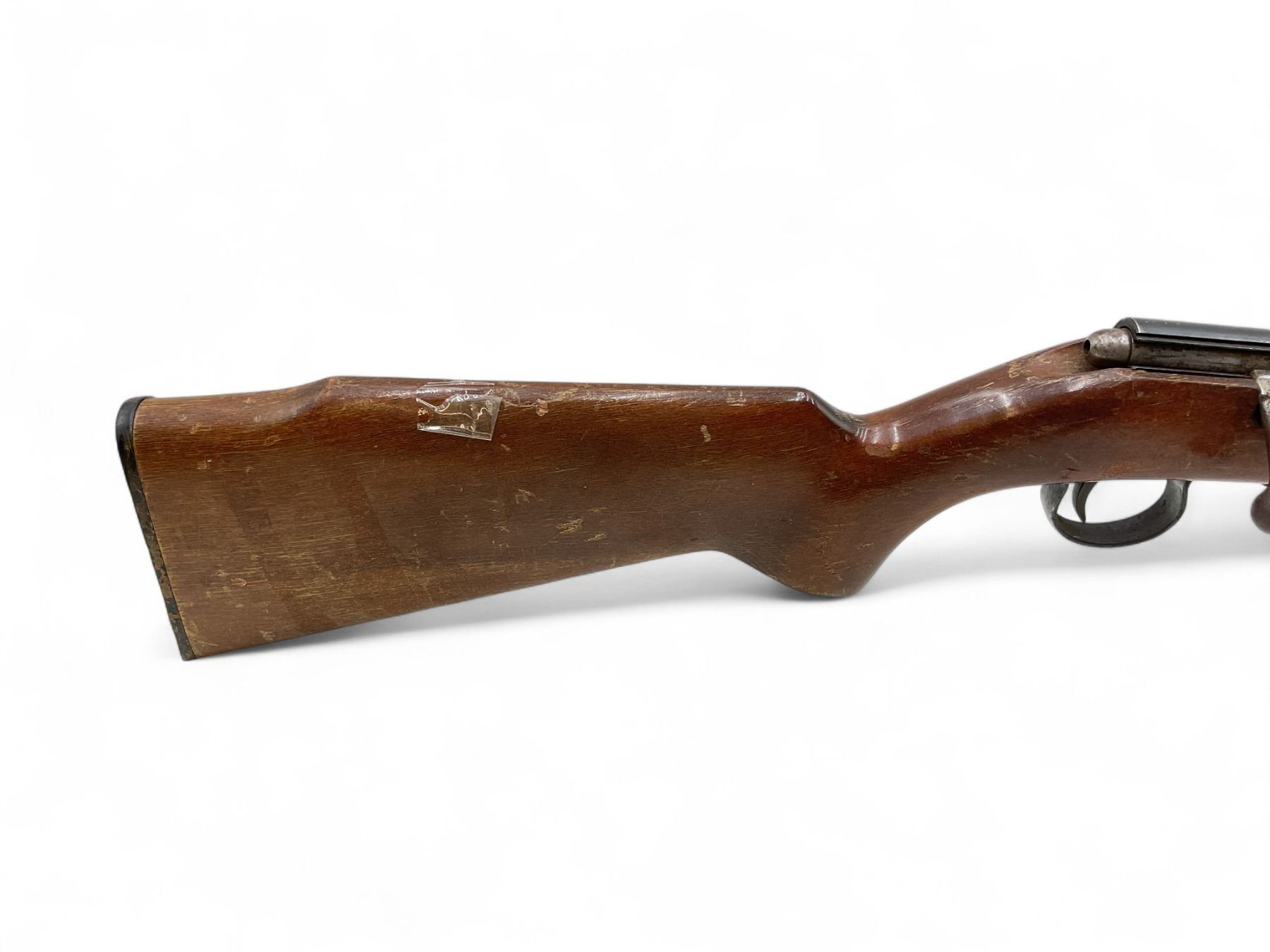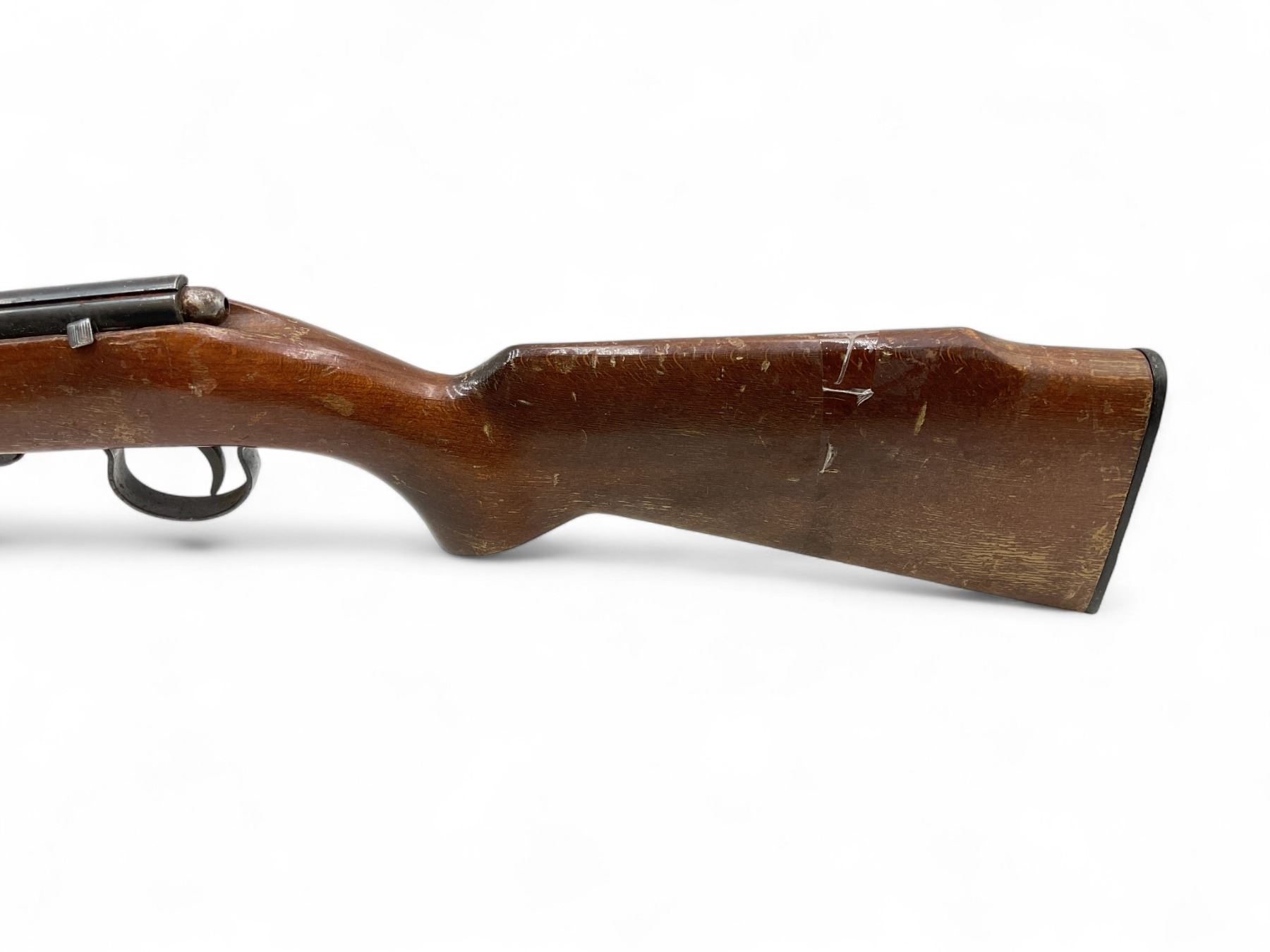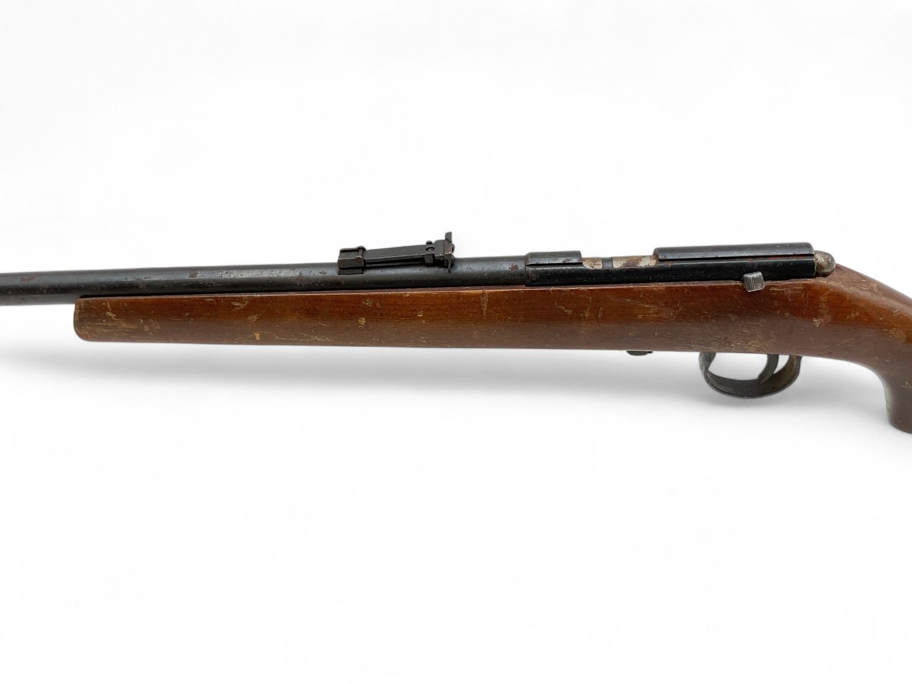 Anshutz Model 1400 Bolt Action Rifle .22LR 22" Barrel Wood Stock. No magazine included. Stock is loose. Missing front sight; adjustable rear sight. This is a non-restricted firearm.
