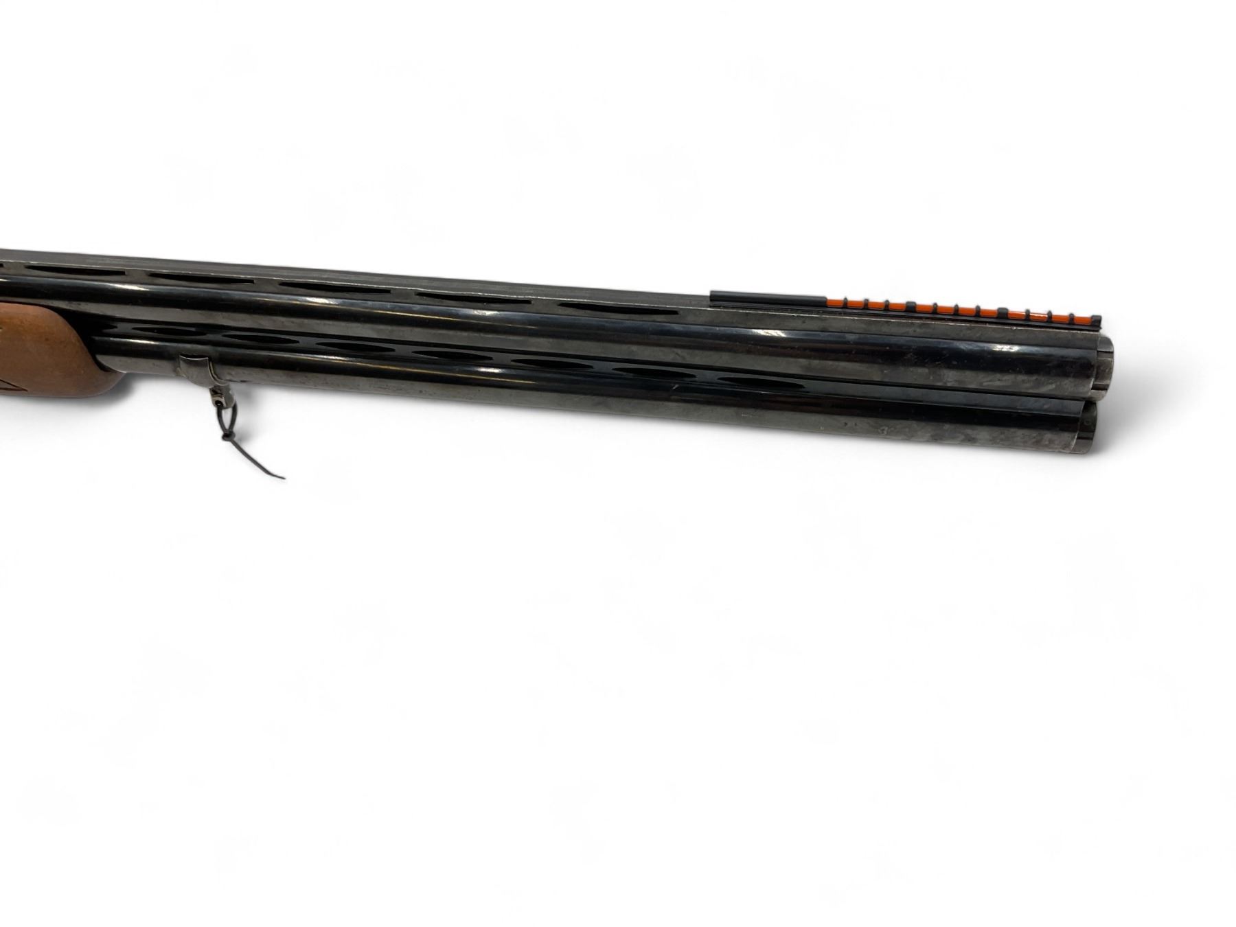 Armi Bellinsoli Over Under Shotgun 12Ga 2.75" Chambers 28" Barrels Wood Stock. Vent rib with fiber optic sight. Each barrel appears to have a removable choke but chokes appear to be seized. Rear stock appears to have been replaced. This is a non-restricted firearm.