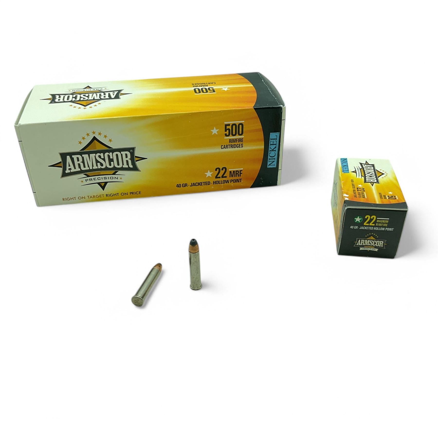 Armscor .22 Magnum Rimfire, 40 Grain Jacketed Hollow Point Ammunition, 500 Rounds