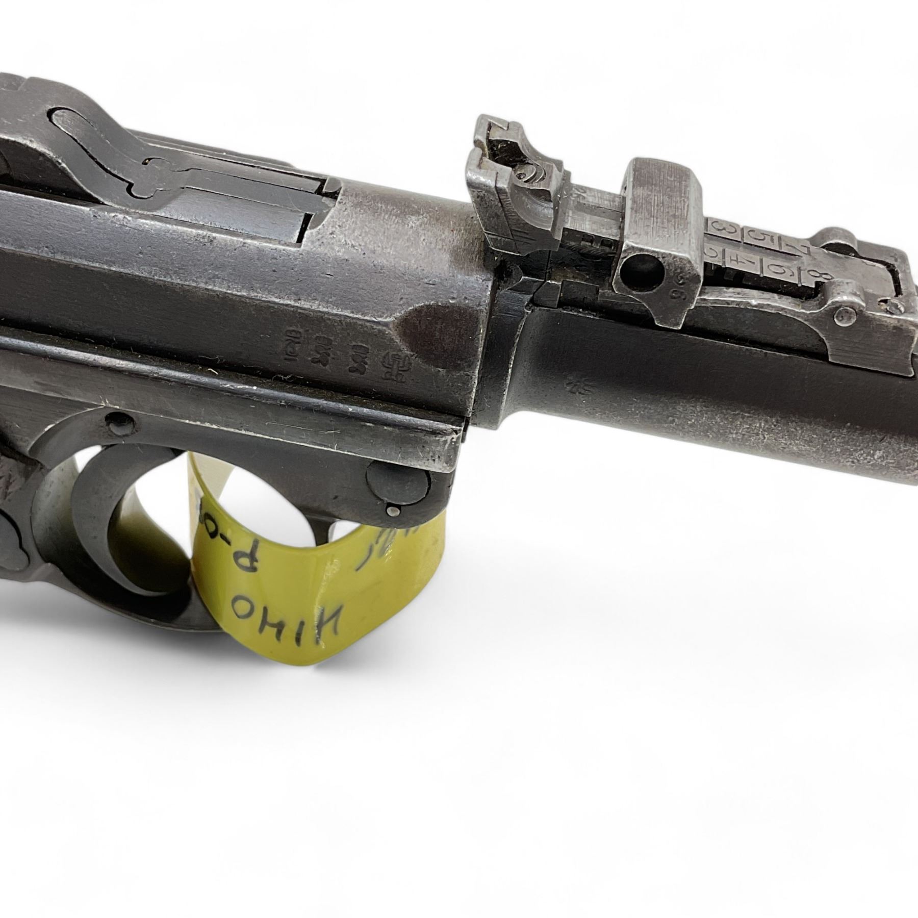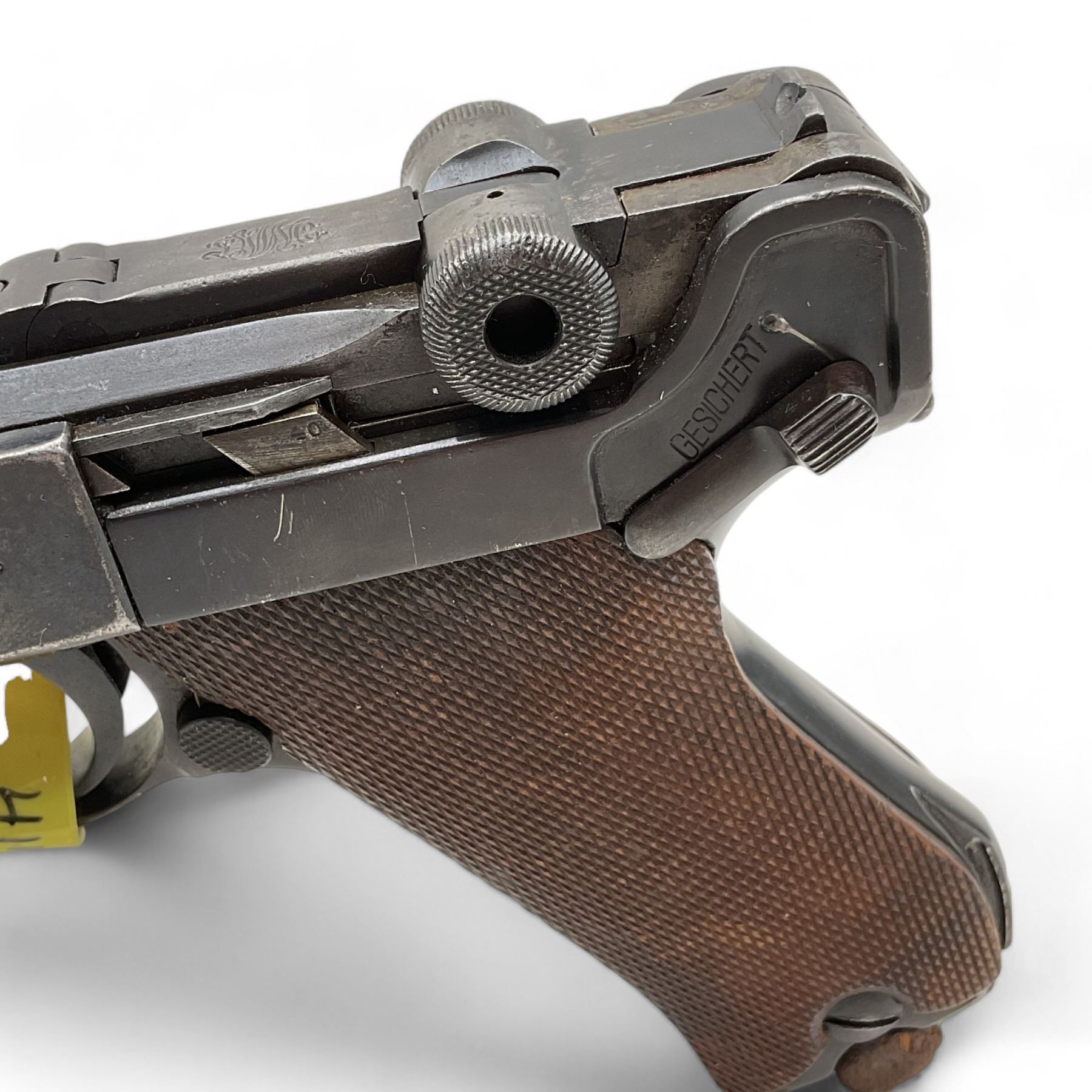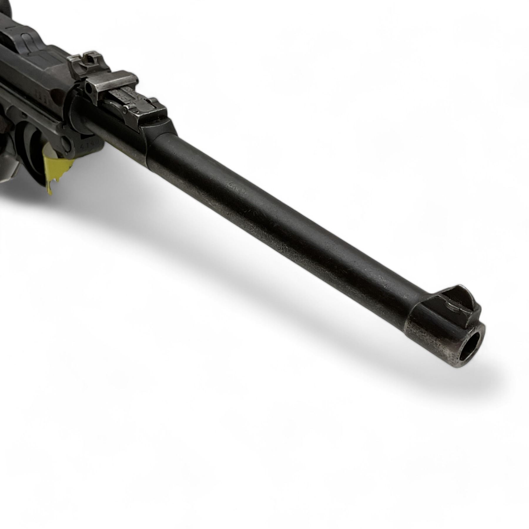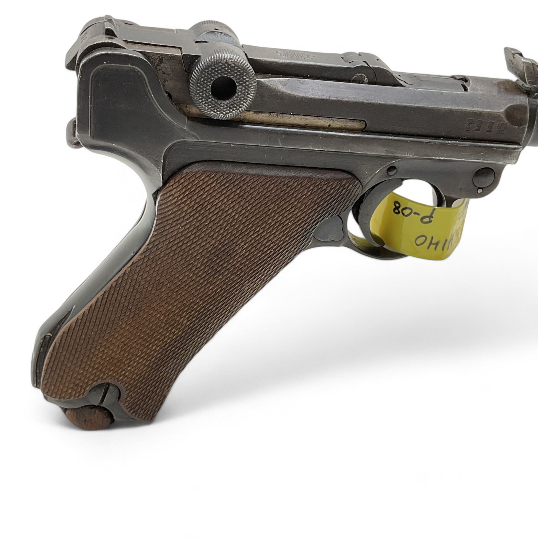 Artillery Luger Semi Auto Pistol 7.5" Barrel, Restricted. Comes with one magazine. Fixed front sight, adjustable rear sight.