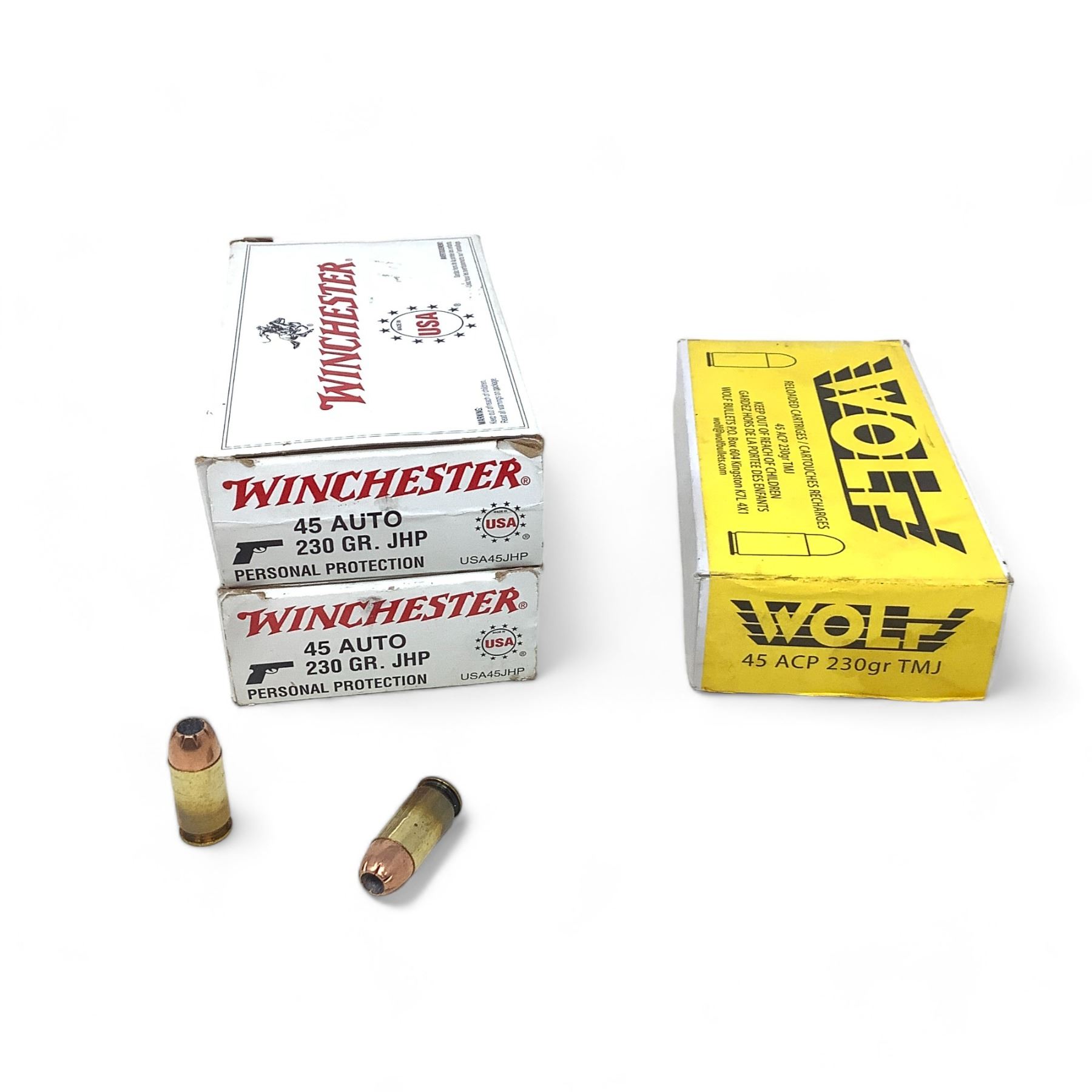 Assorted 45 ACP 230 Grain Ammunition, Approx 100 Rounds and 14 Cases