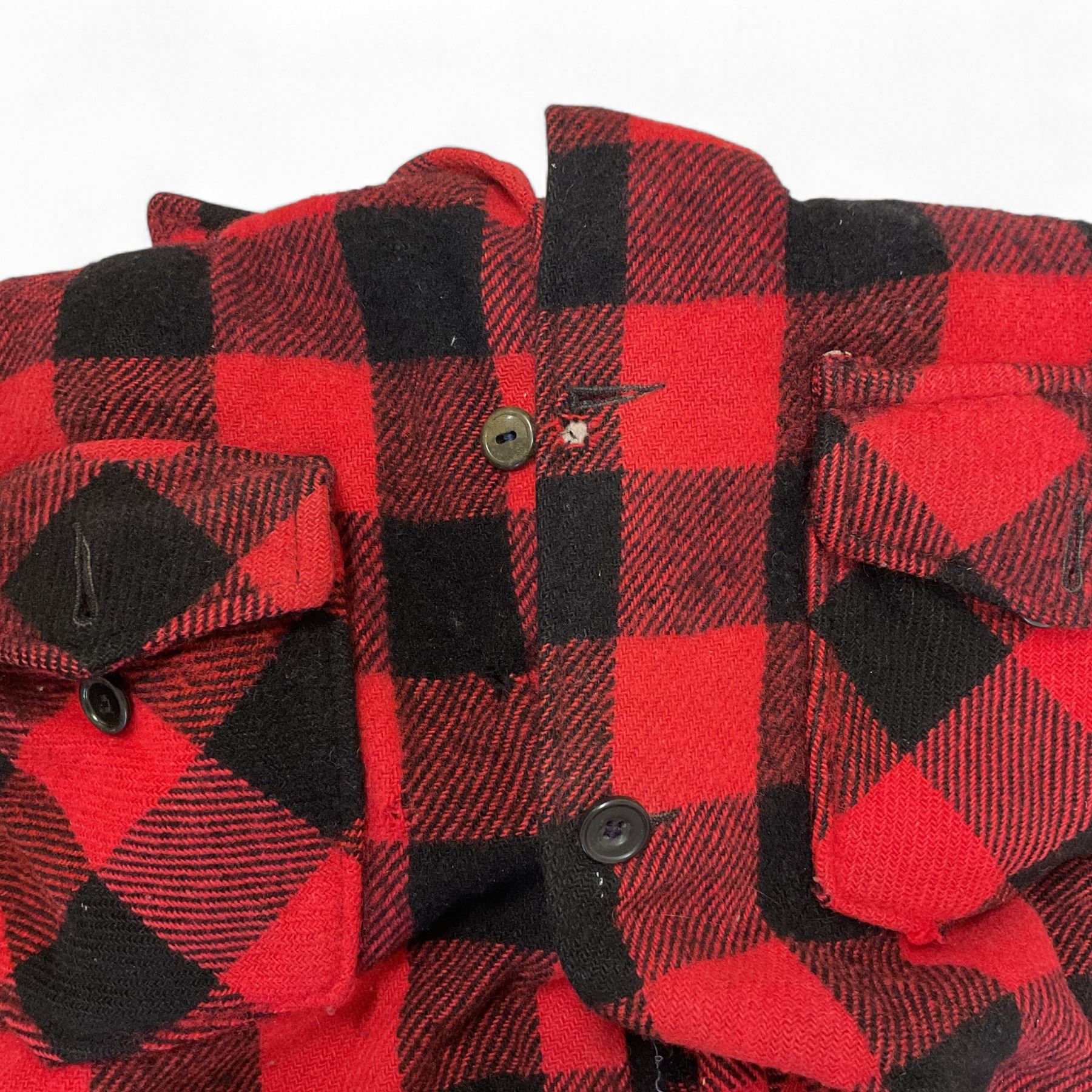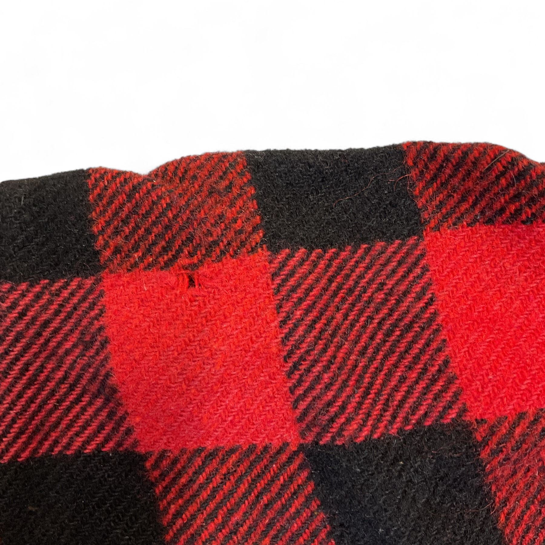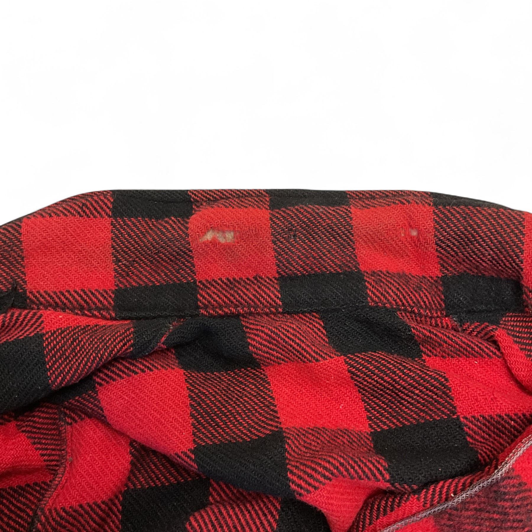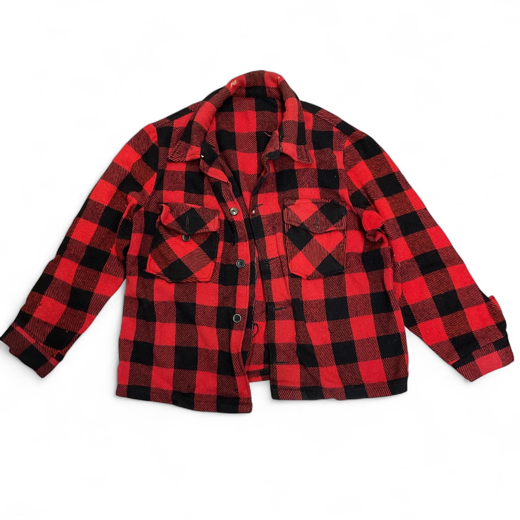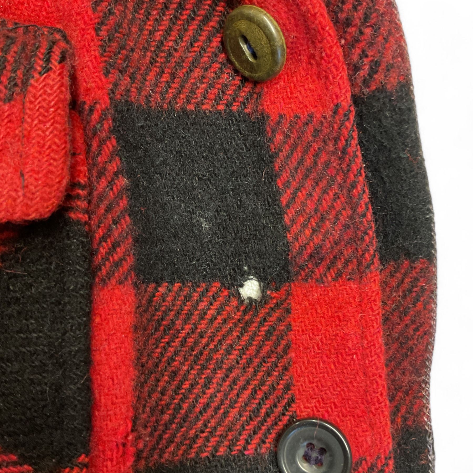 - red plaid jacket, has holes and rips