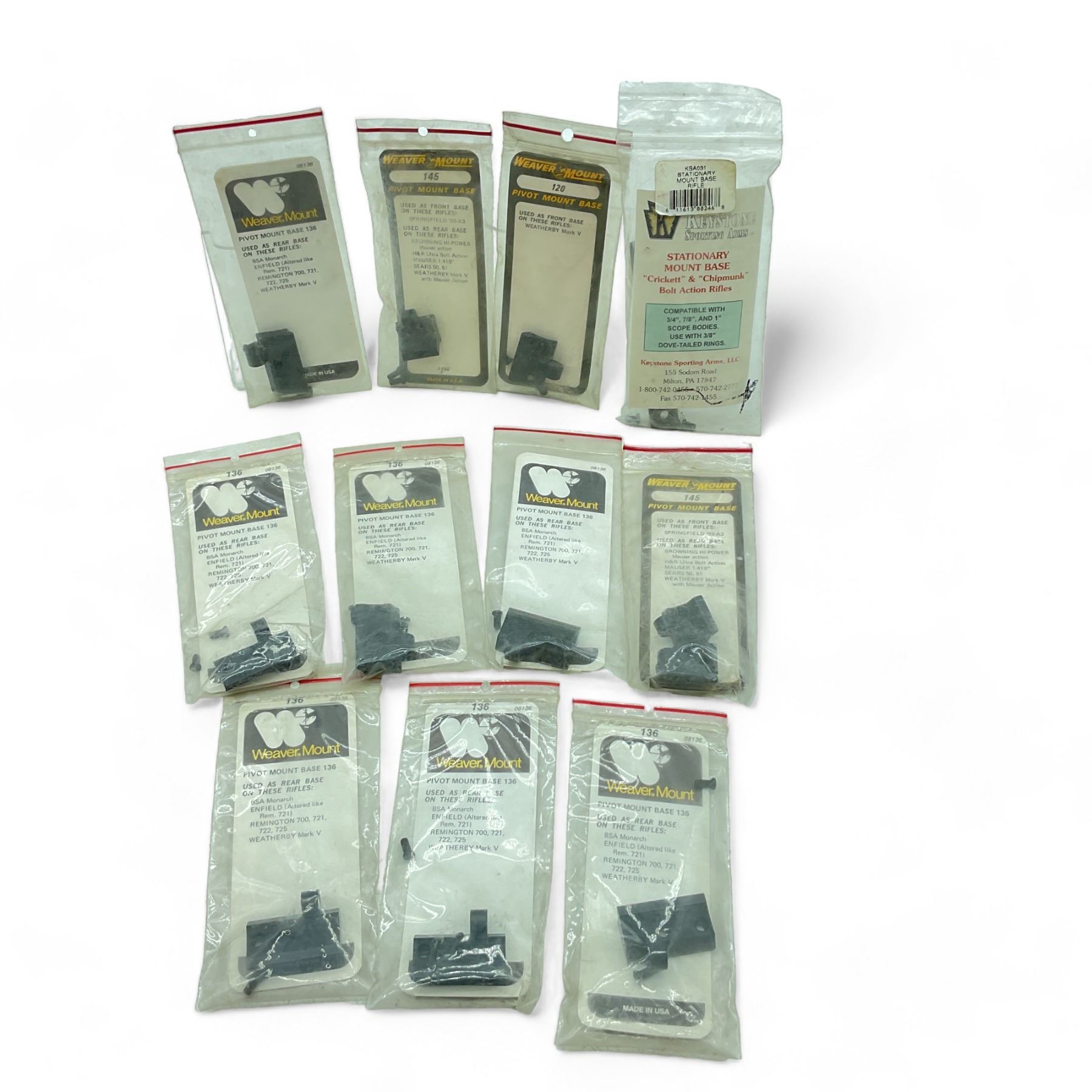 Assorted Mounts/ Bases, Includes Crickett and Chipmunk Bolt Action Rifles, Weaver Pivot Mount Base for Enfield, Remington 700 and Weatherby Mark V