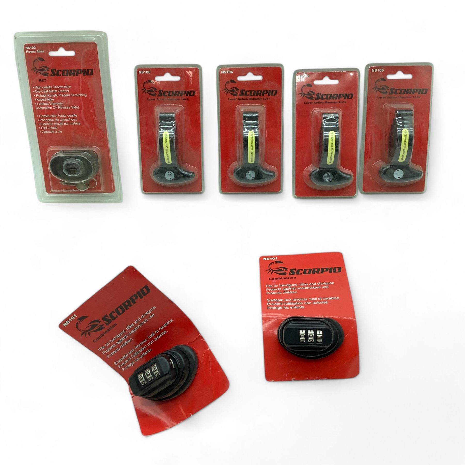 Assorted Scorpio Lever Action Locks, Combination and Keyed Trigger Locks X 7 Qty