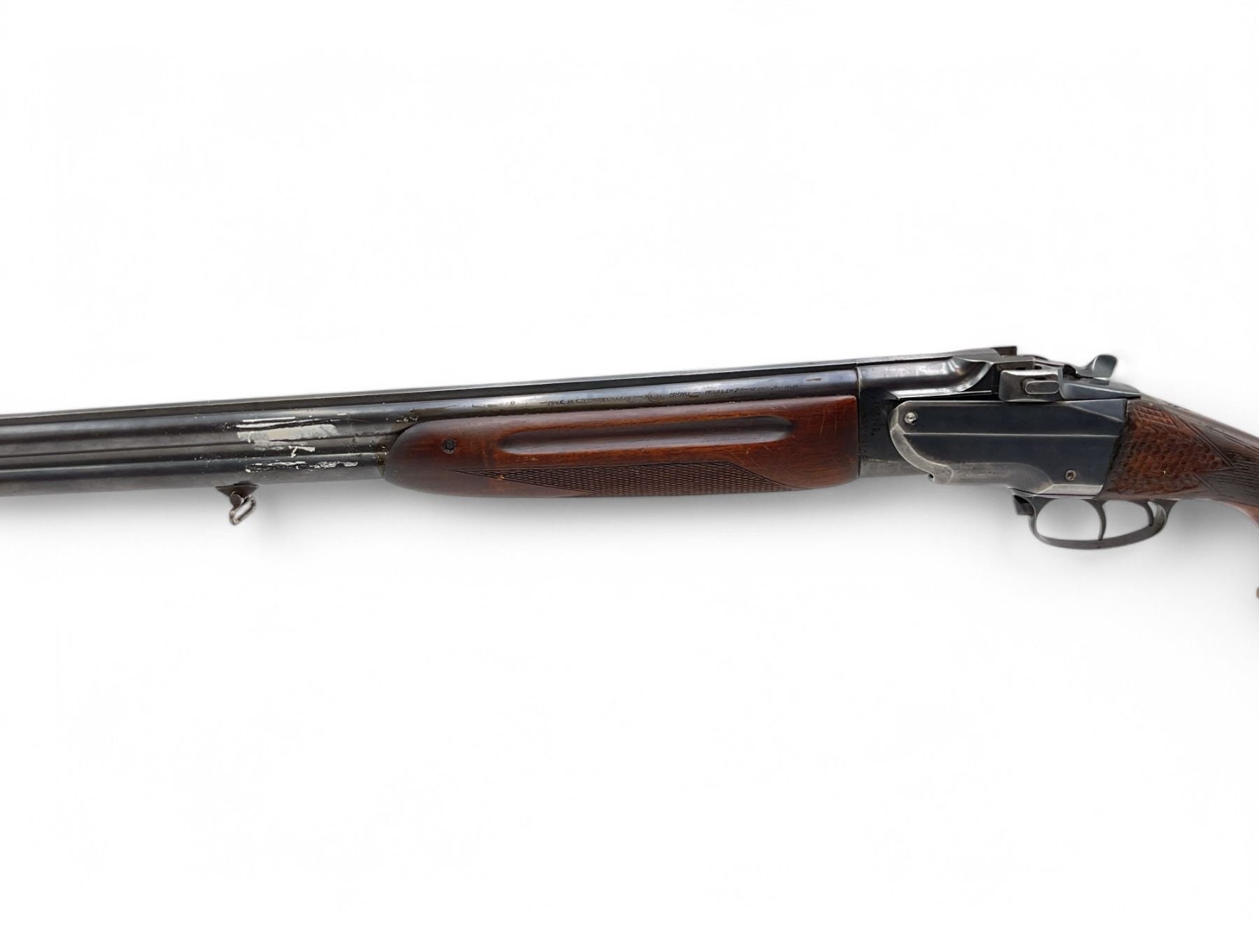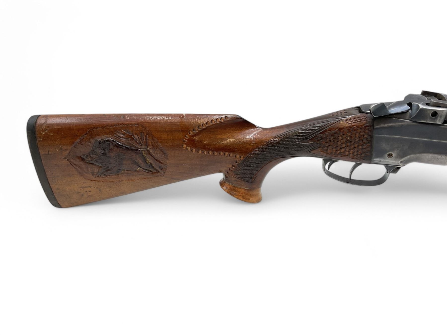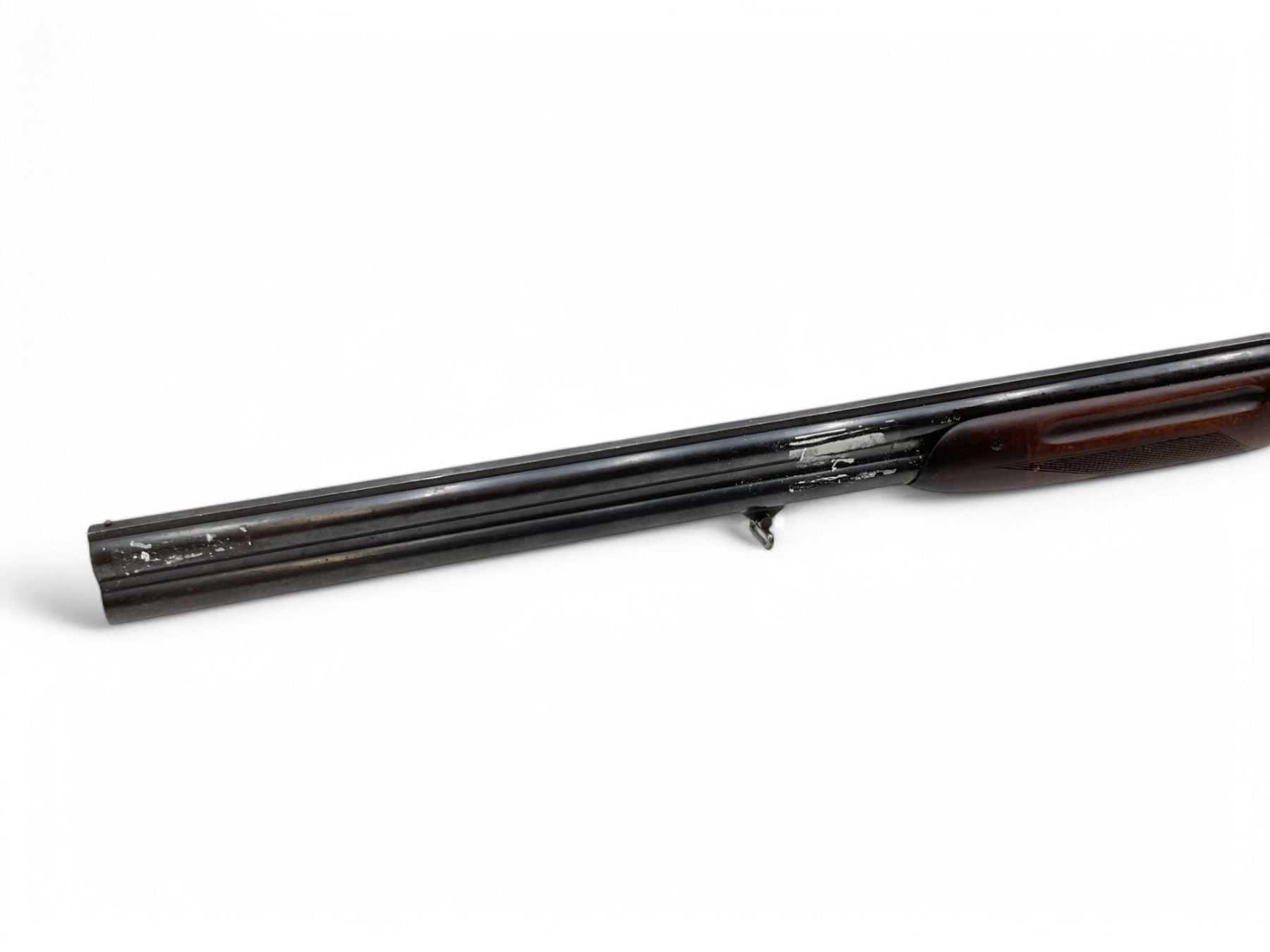 BRNO ZH201 Over Under Shotgun 12Ga 2.75" Chambers 28" Barrels Wood Stock. Bead sight, fixed chokes. Custom wood stock has small crack at bottom by trigger guard. Double triggers; action will only open 1/4 of the way and safety will not move. May be missing parts. This is a non-restricted firearm.