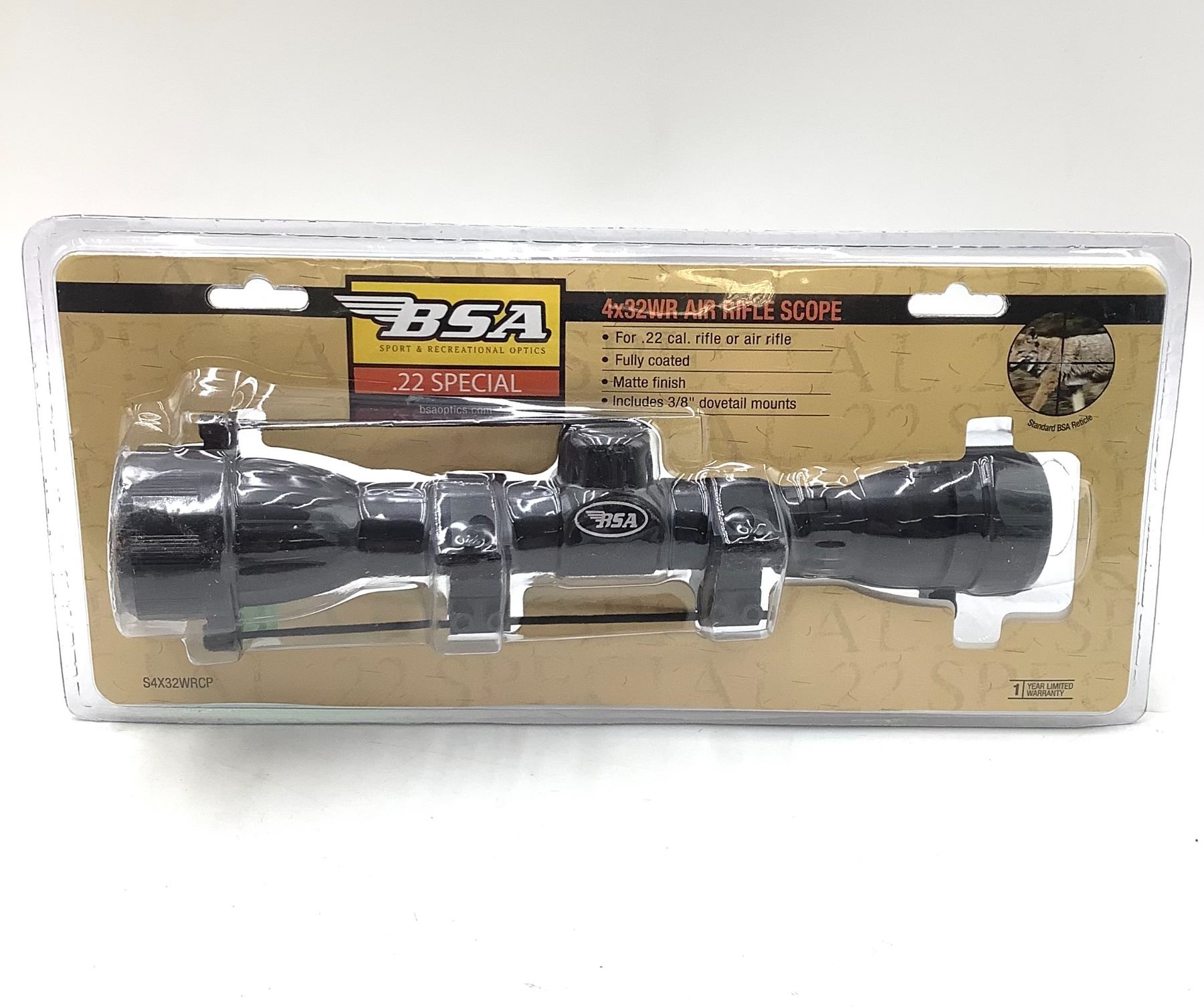 BSA 22 Special 4 X 32 mm WMR Air Rifle/ 22 Cal Scope with Standard BSA Reticle and 3/8" Dovetail Mounts, New