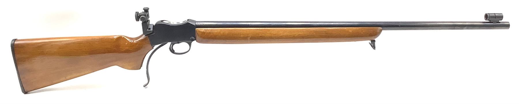 A used, BSA Martini falling-block target rifle chambered in .22 Long Rifle. Parker-Hale micrometer rear sight. This rifle has been refinished. Mirror-bright bore, good condition.