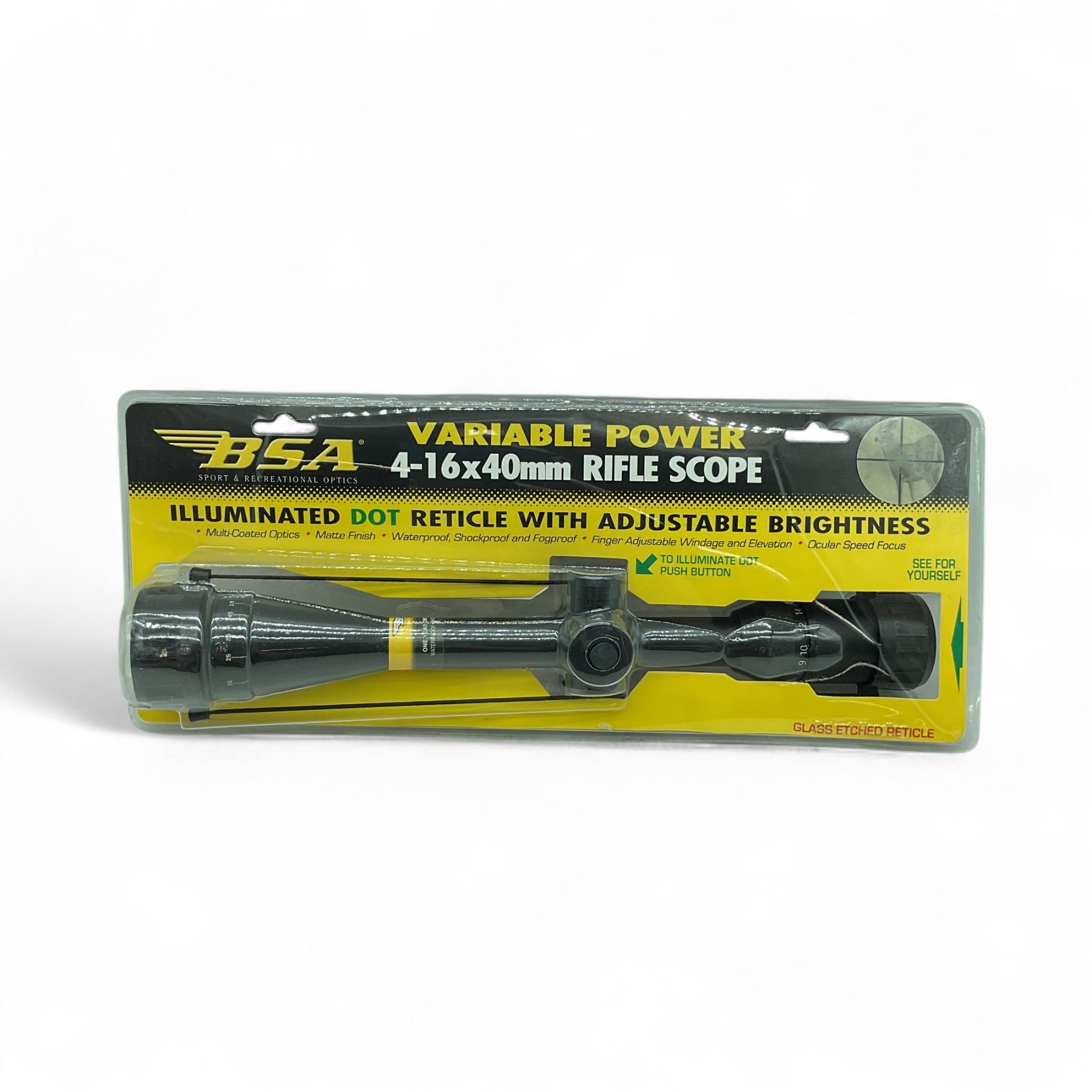BSA Variable Power 4-16x40mm Riflescope, Illuminated Dot Reticle with Adjustable Brightness, New