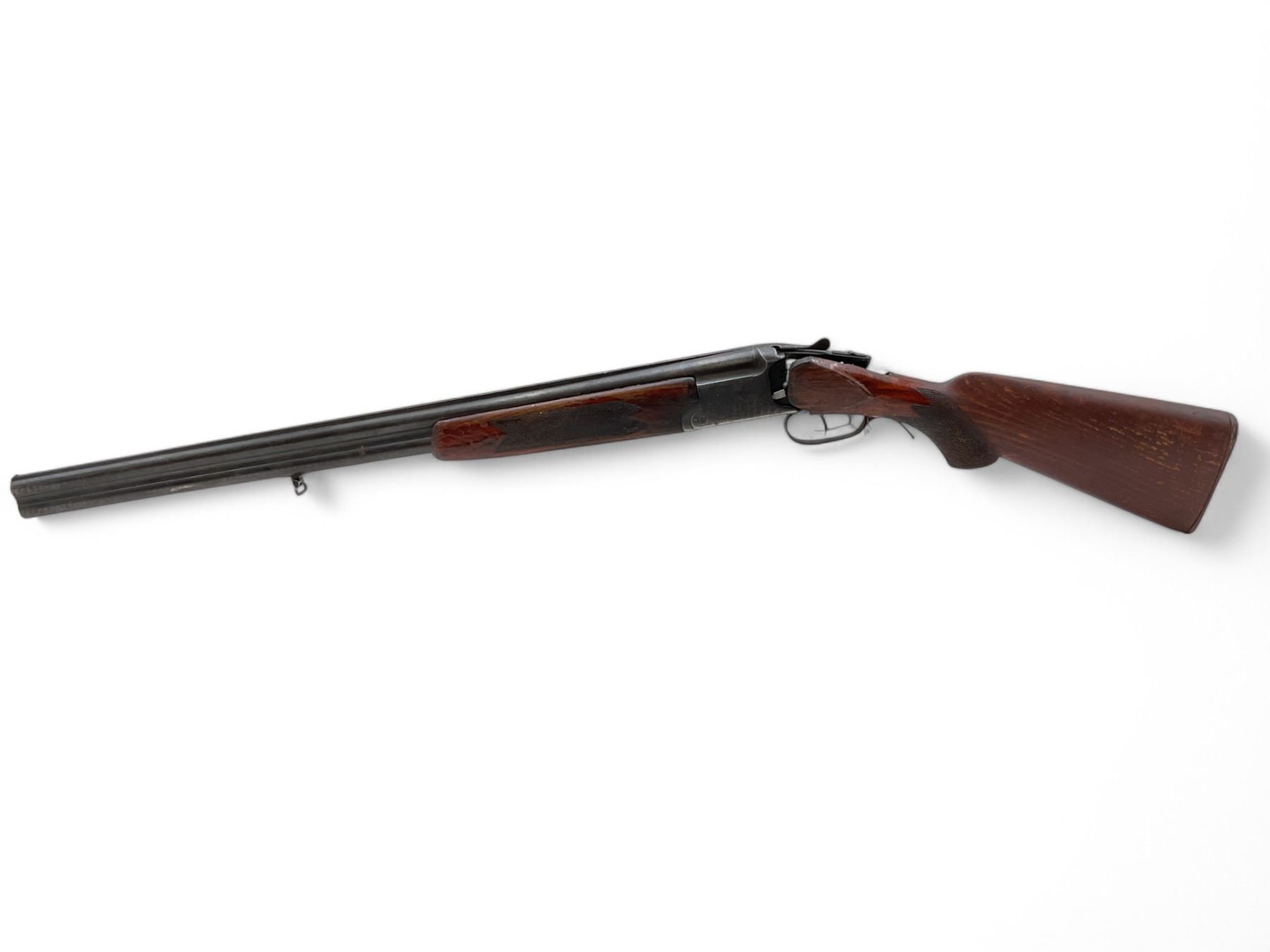Baikal IJ-12 Over Under Shotgun 12Ga 2.75" Chambers 29" Barrels Broken Wood Stock. Bead sight; fixed chokes. Rear stock is broken and missing 1/4 of right hand portion. Trigger guard bent; may be missing other parts. This is a non-restricted firearm.