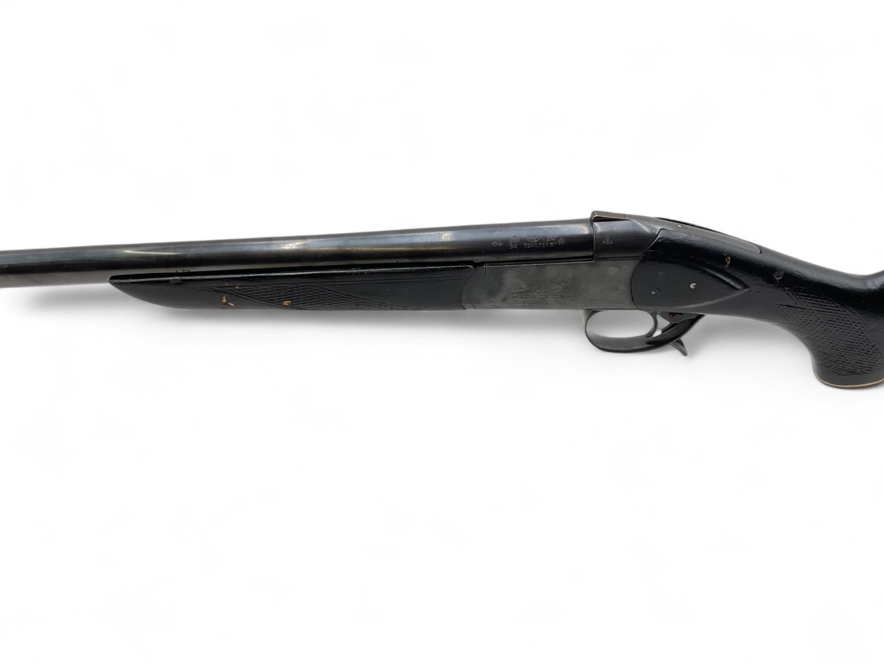Baikal IJ-18 Single Shot Shotgun 12Ga 2.75" Chamber 29" Barrel Painted Wood Stock. Bead sight; fixed choke. Rear stock and forend have been painted black. This is a non-restricted firearm.