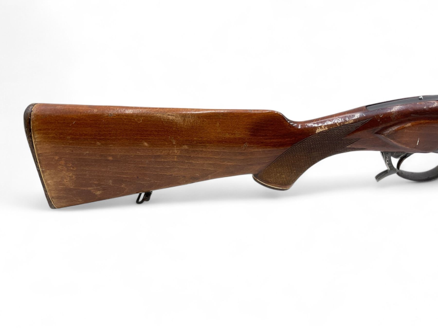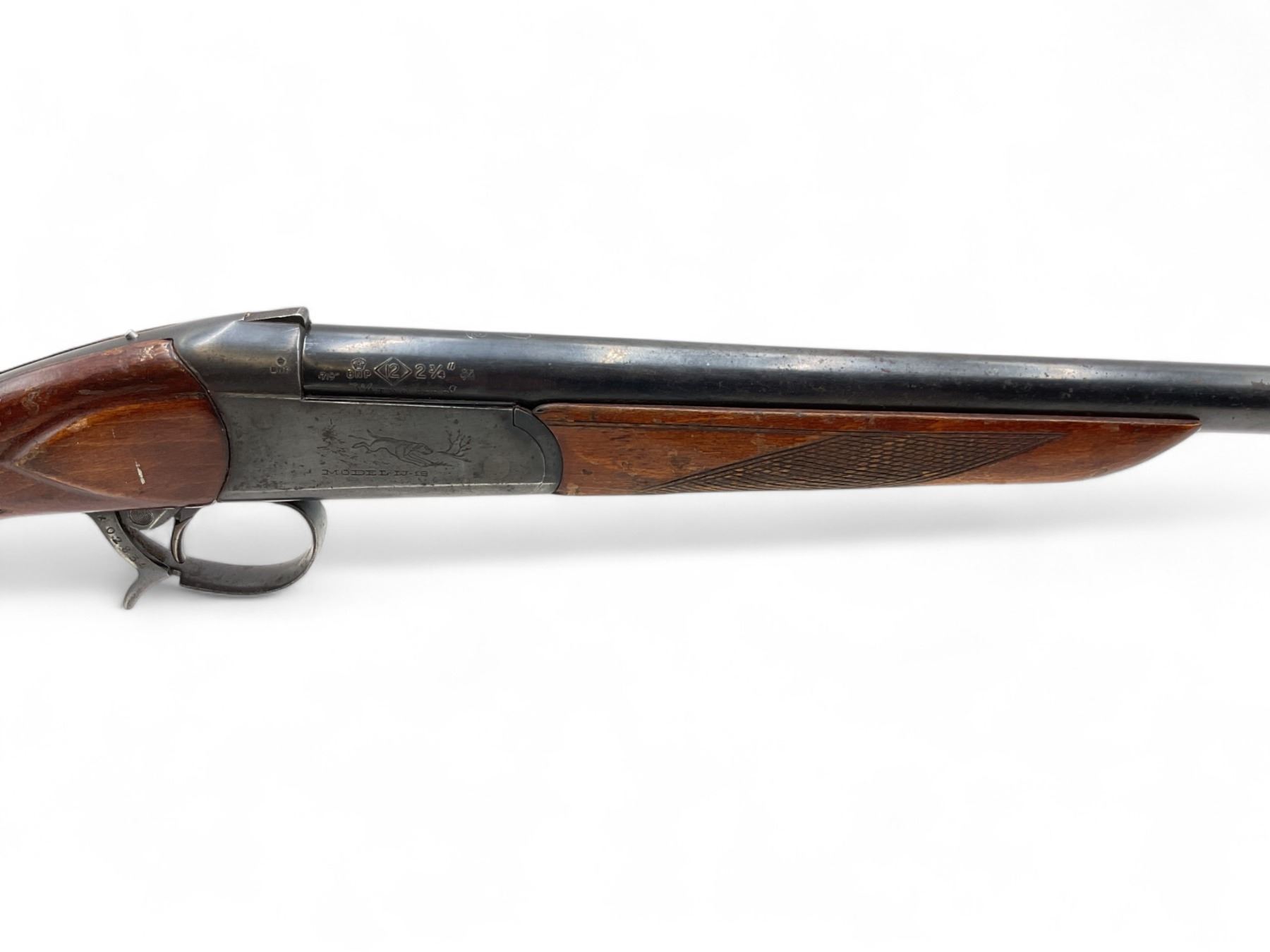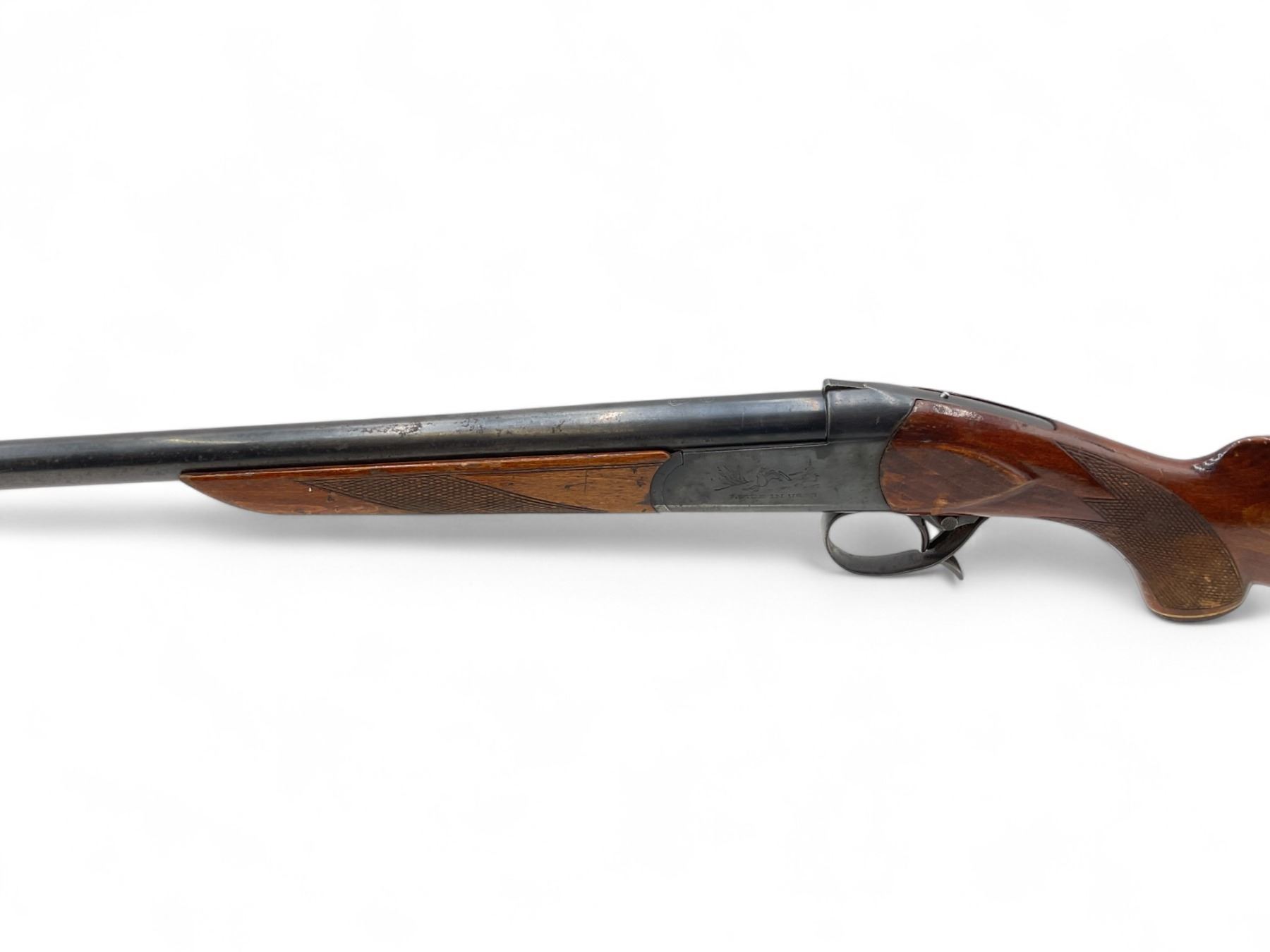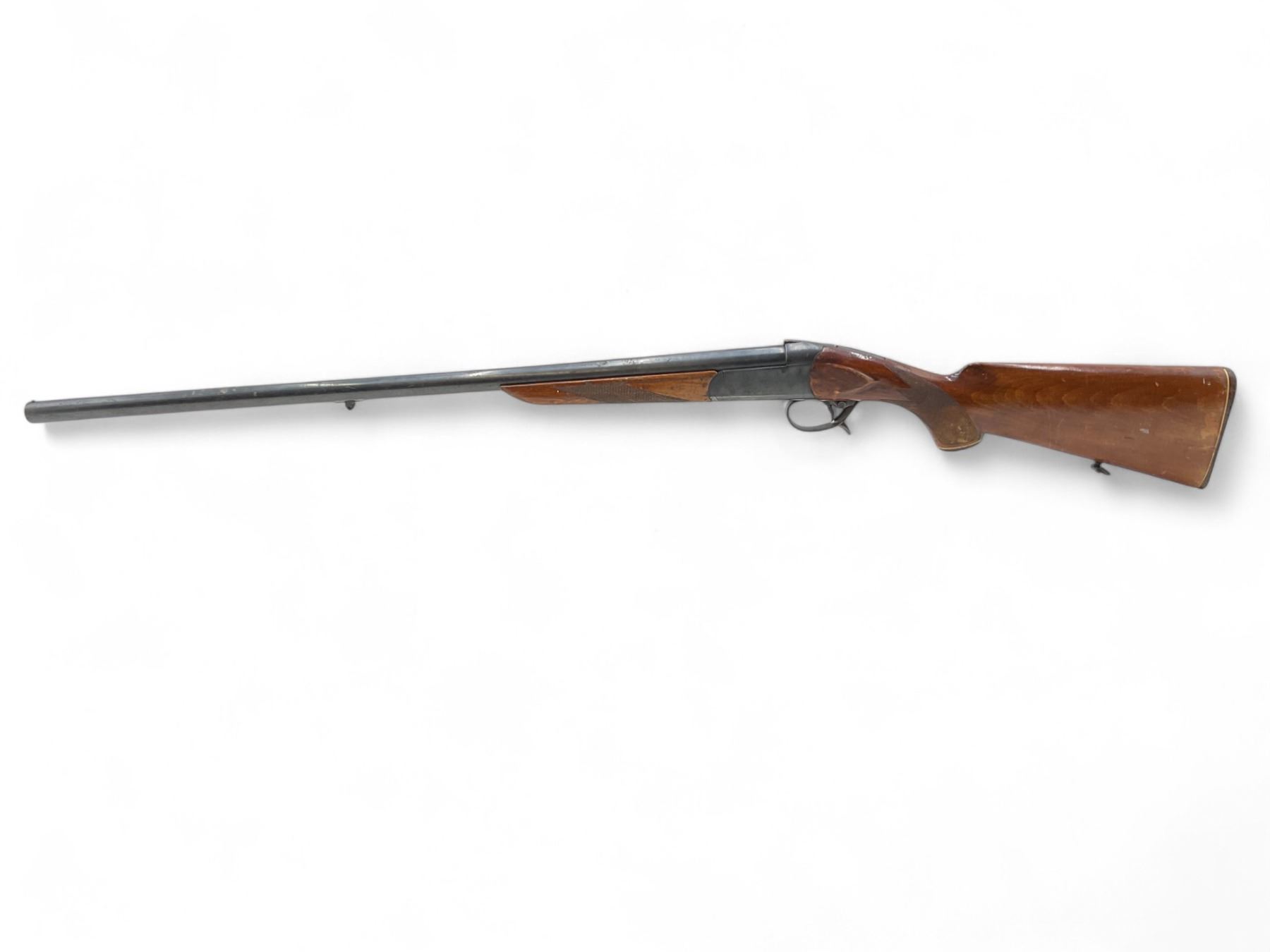 Baikal IJ-18 Single Shot Shotgun 12Ga 2.75" Chamber 29" Barrel Wood Stock. Bead sight; fixed choke. Rear stock cracked by trigger guard. This is a non-restricted firearm.