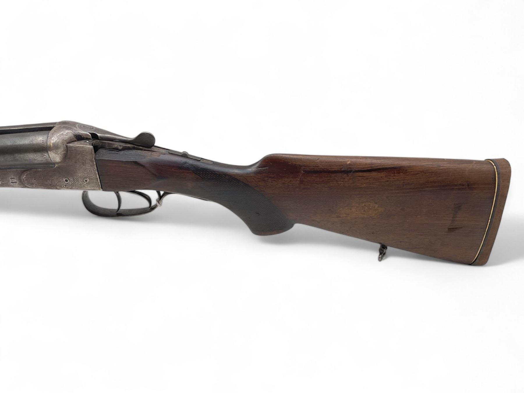 Baikal IJ-26 Side By Side 12Ga Shotgun 29" Barrels Wood Stock. Fixed chokes, bead sight. Double triggers. Rear stock cracked and missing piece. This is a non-restricted firearm.