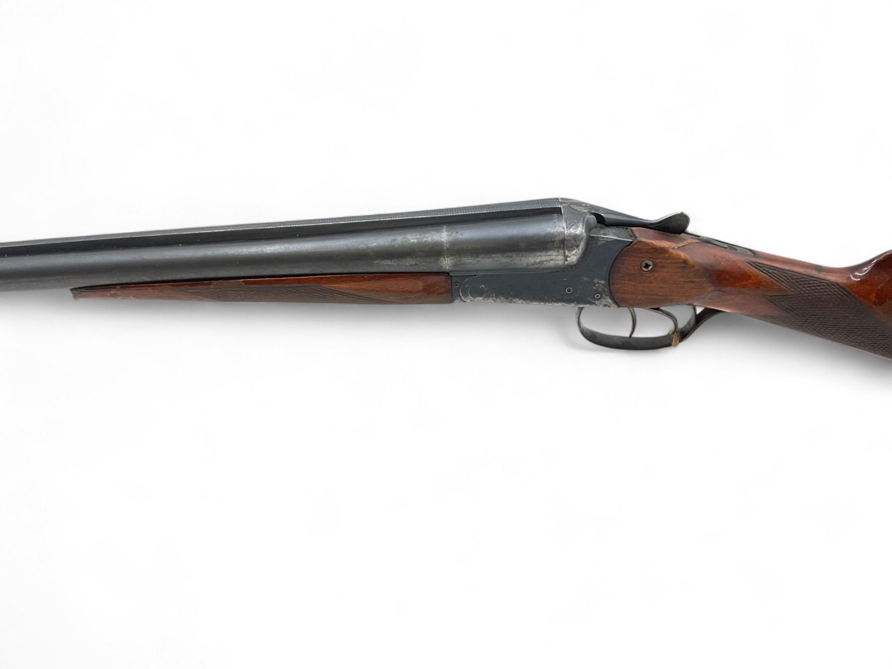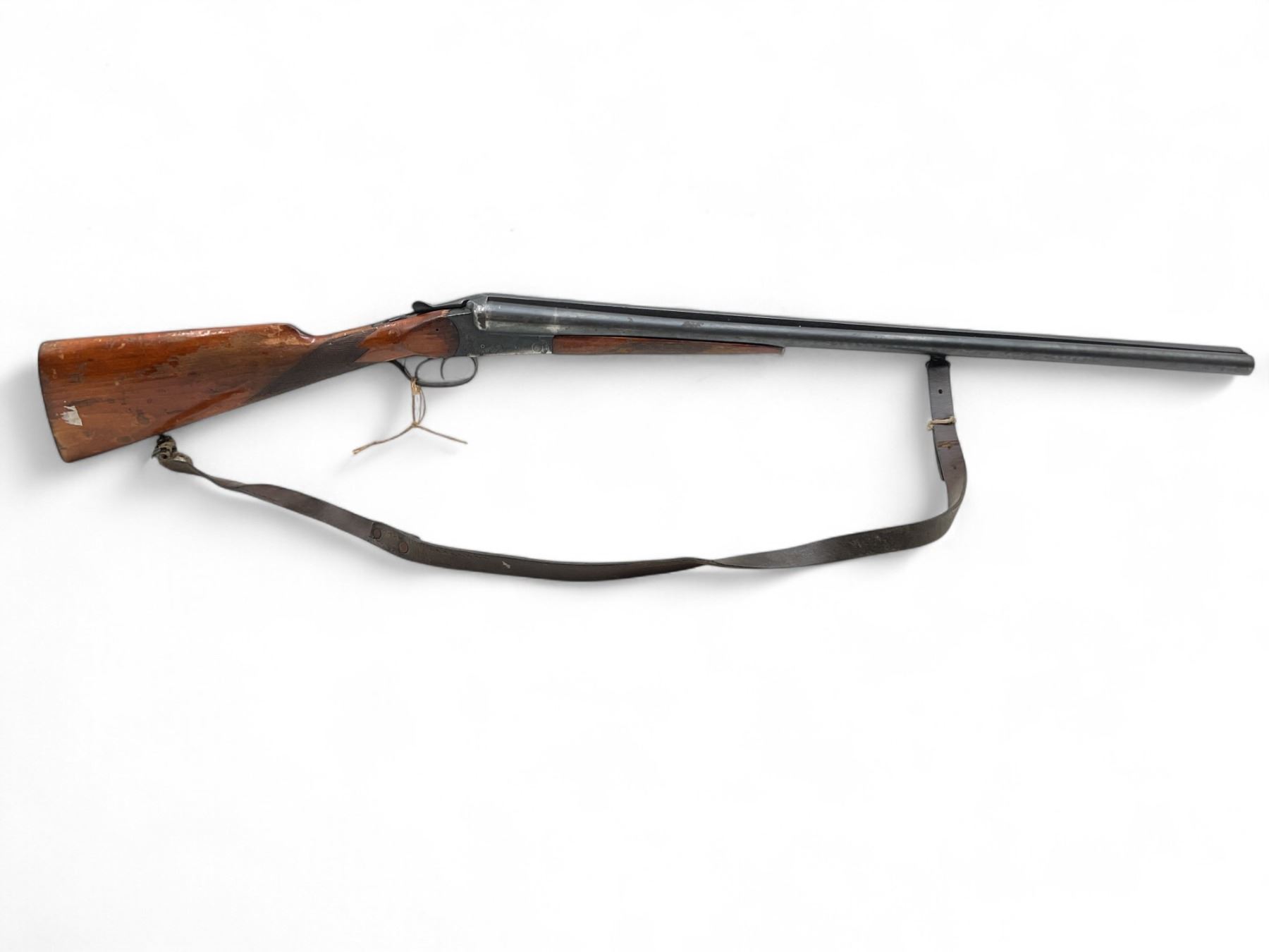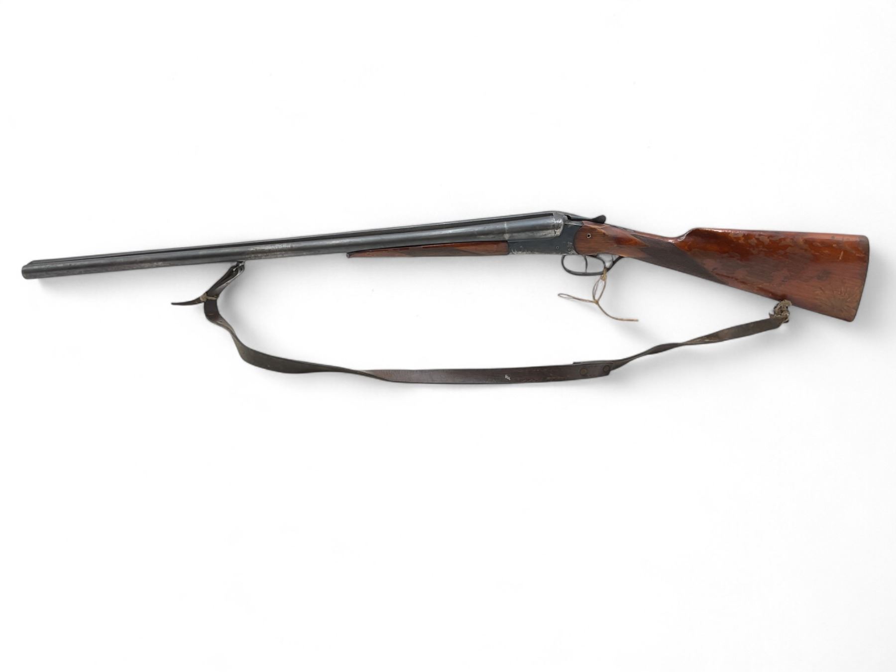 Baikal IJ-58M Side By Side Shotgun 12Ga 2.75" Chambers 29" Barrels Wood Stock. Bead sight broken; fixed chokes. Double triggers; comes with a sling. Rear stock cracked and repaired. No butt plate present. This is a non-restricted firearm.