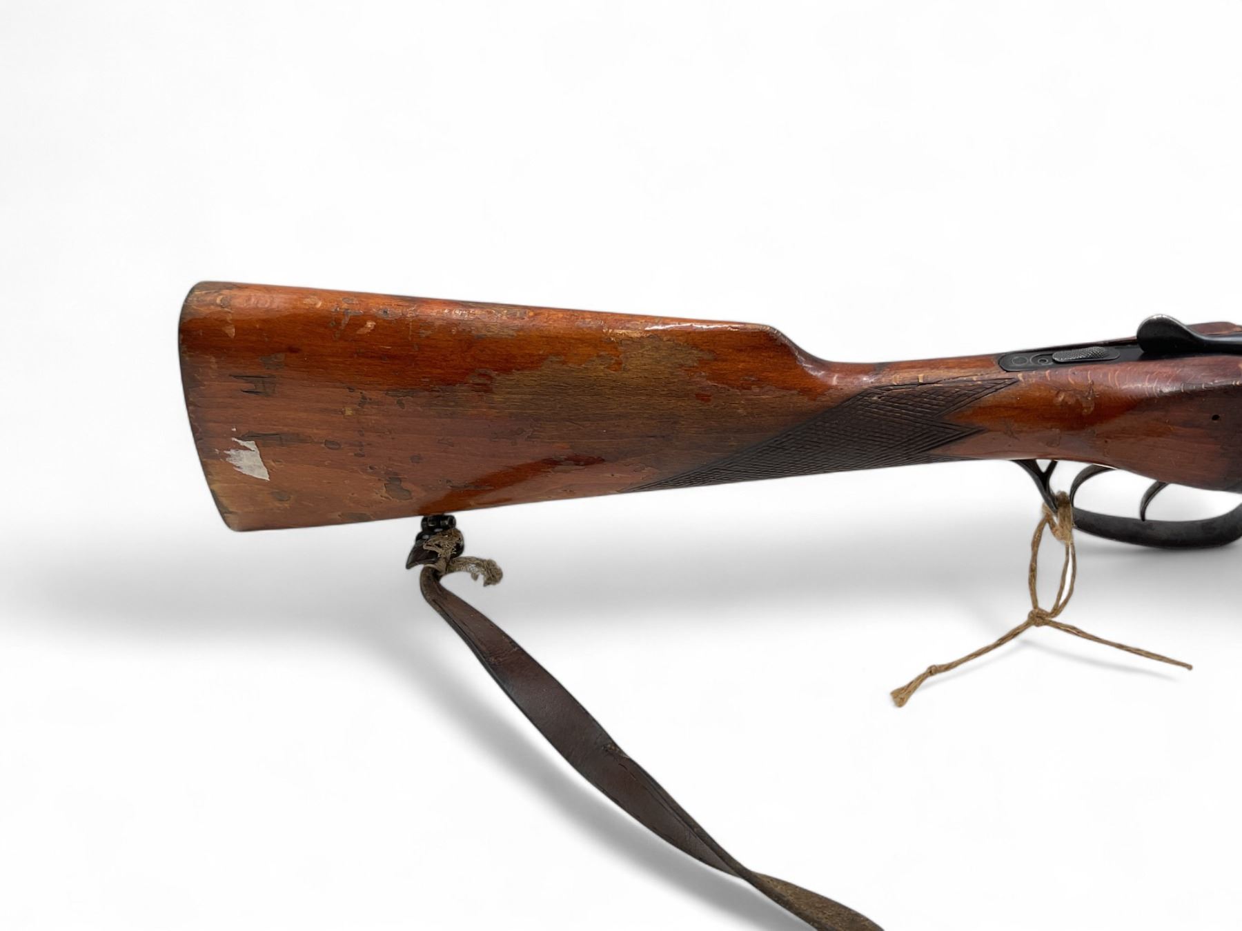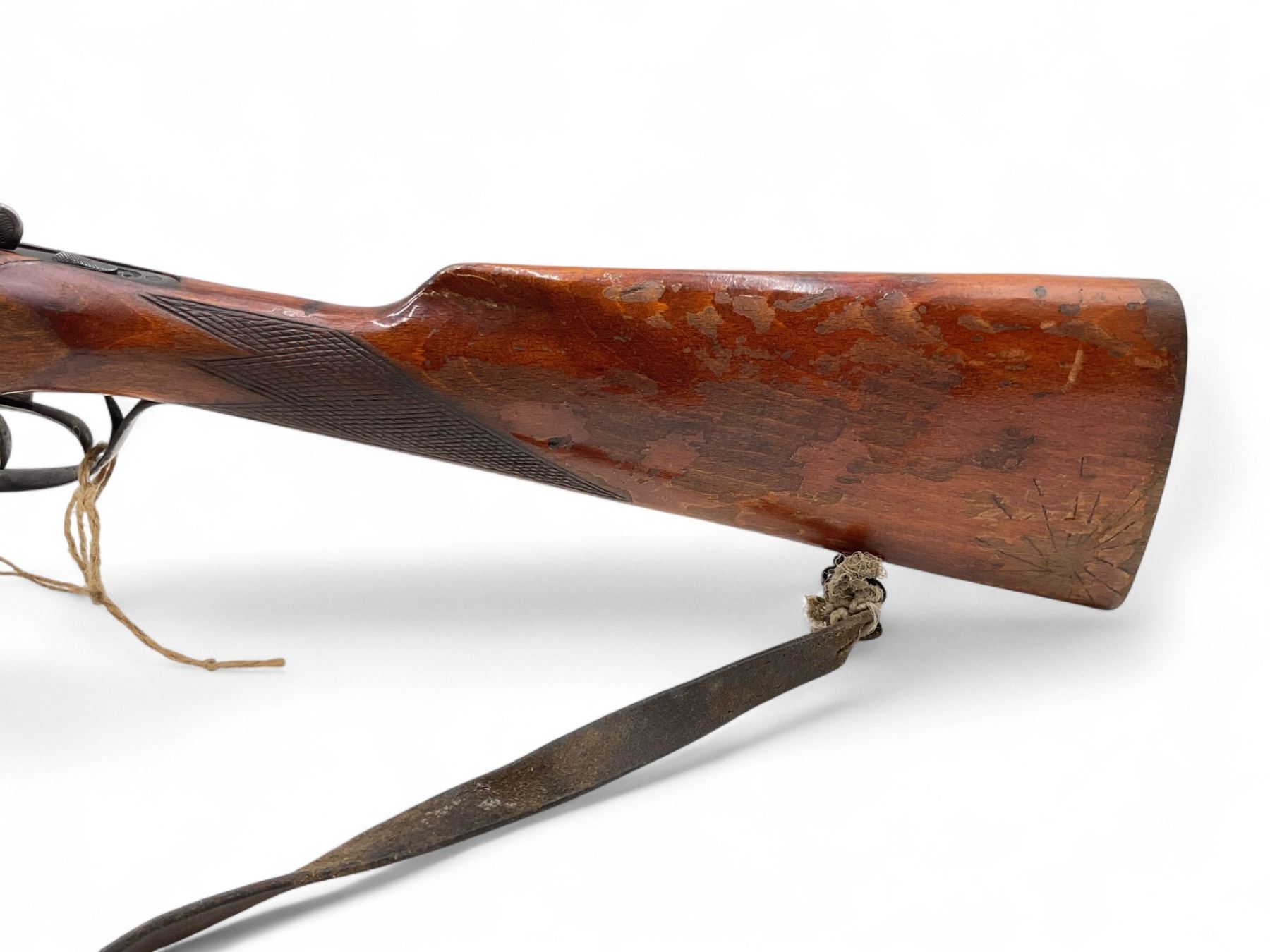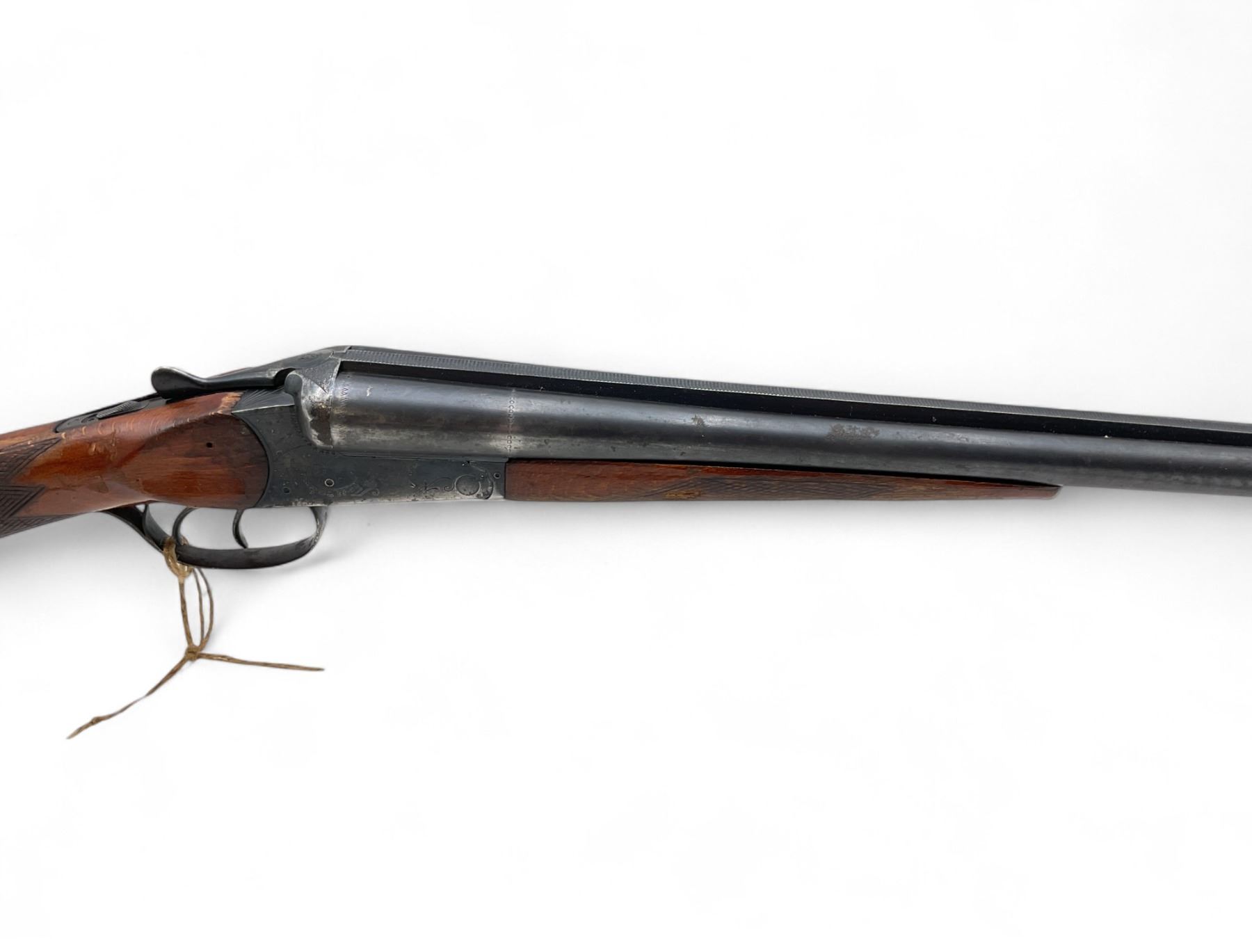 Baikal IJ-58M Side By Side Shotgun 12Ga 2.75" Chambers 29" Barrels Wood Stock. Bead sight broken; fixed chokes. Double triggers; comes with a sling. Rear stock cracked and repaired. No butt plate present. This is a non-restricted firearm.