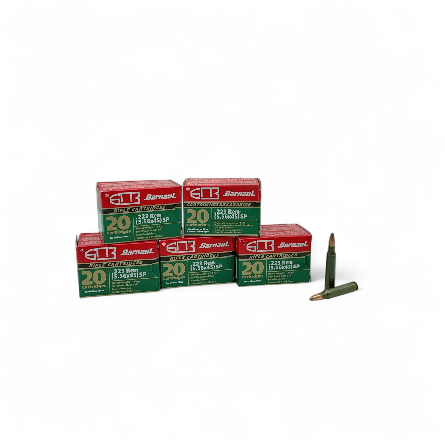 Barnaul 223 Rem 55 Grain SPBT Ammunition, 100 Rounds