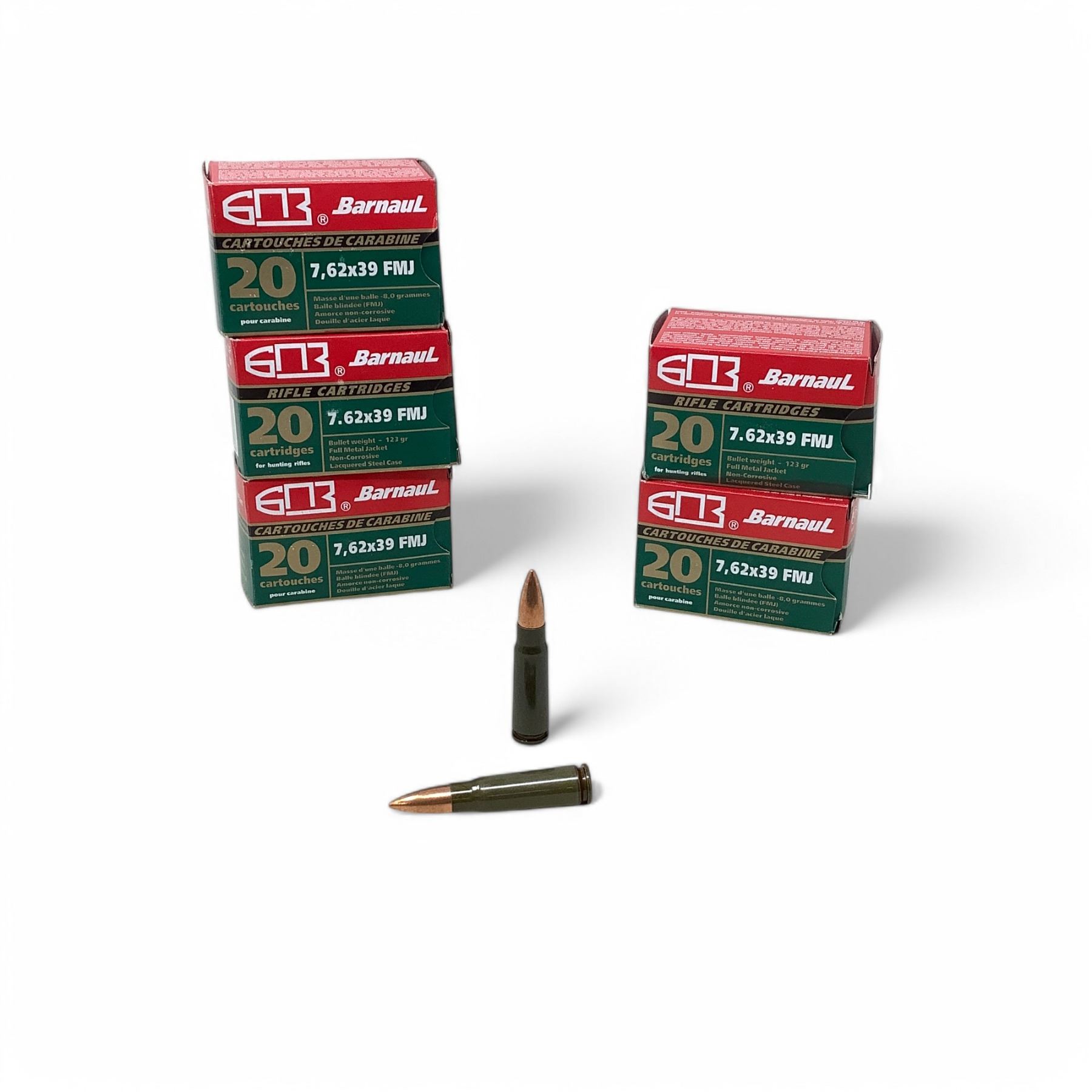 Barnaul 7.62 x 39, 123 Grain FMJ Ammunition, 100 Rounds