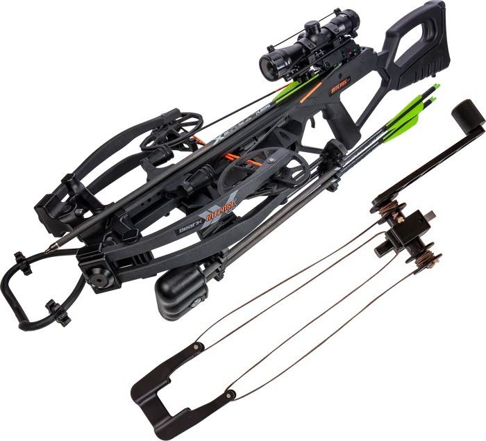 Bear Archery Intense CD Crossbow with Cocking Crank 400FPS, New. This ready-to-hunt package includes 3 Bear TrueX arrows, scope, 4-arrow quiver and rail lube / string wax. New in box.