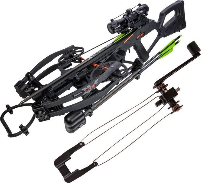 Bear Archery Intense CD Crossbow with Cocking Crank 400fps, New in box. This ready-to-hunt package includes 3 Bear TrueX arrows, scope, 4-arrow quiver and rail lube / string wax.